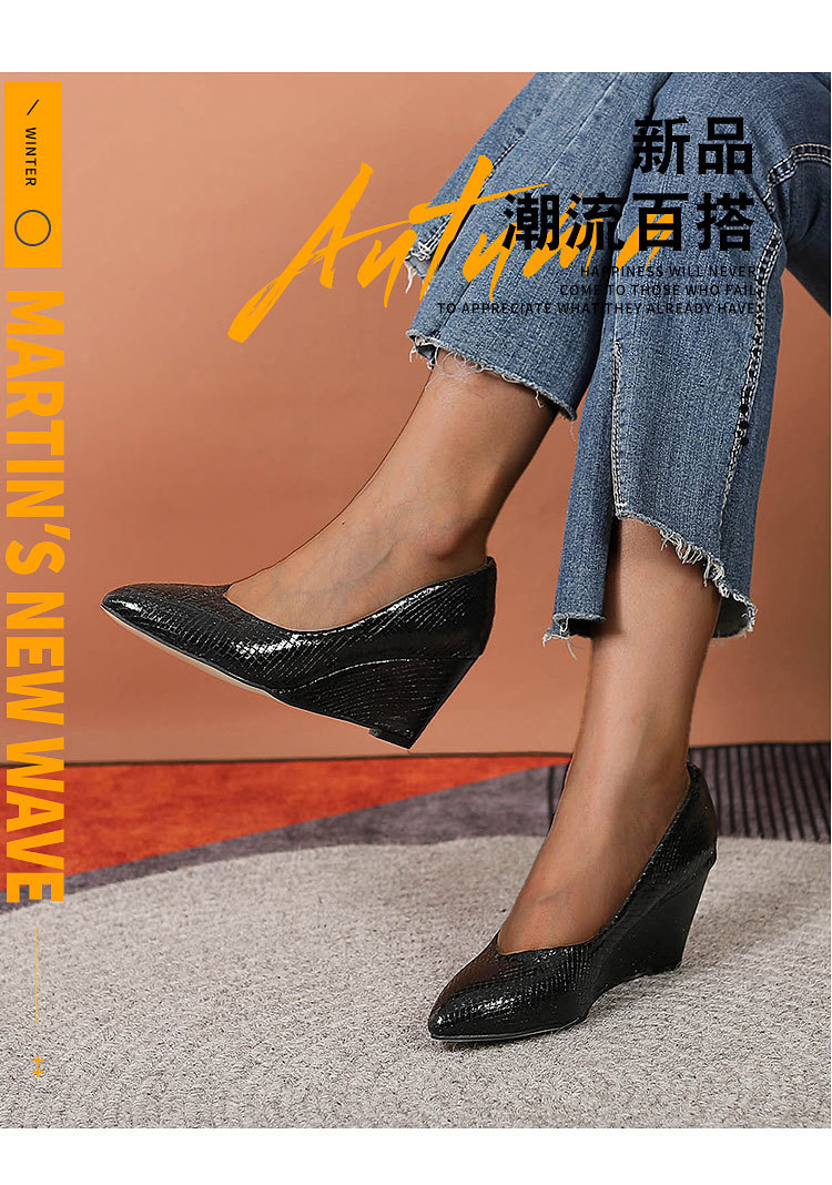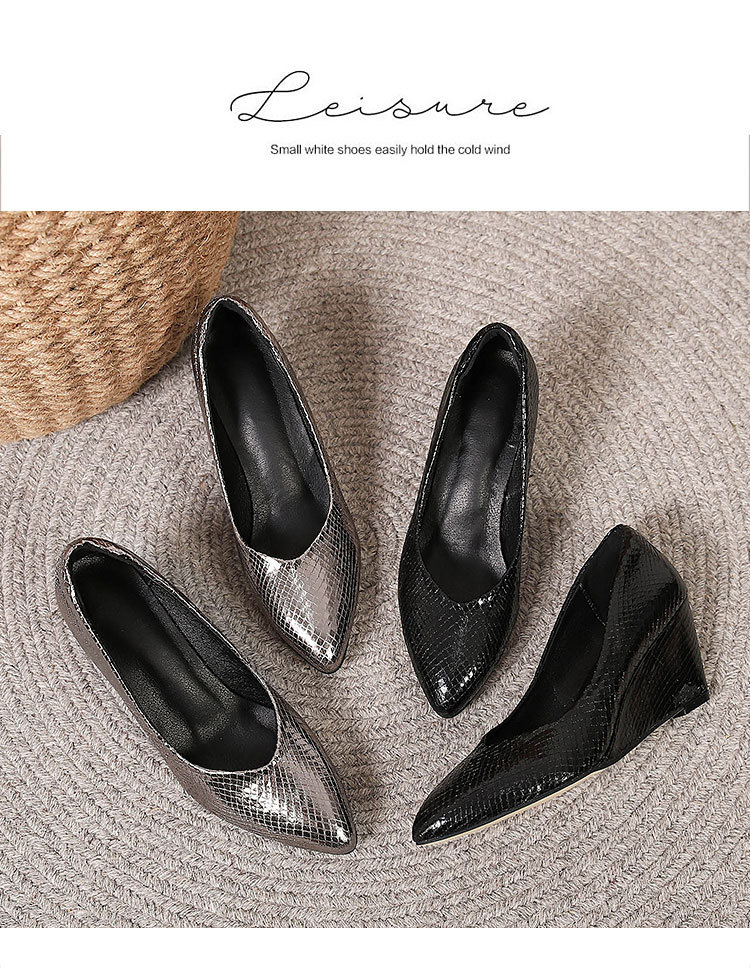 Весна и осень Новые однослойные туфли на танкетке с острым носком, женская модная удобная рабочая обувь, трансграничная Внешняя торговля AliExpress в наличии