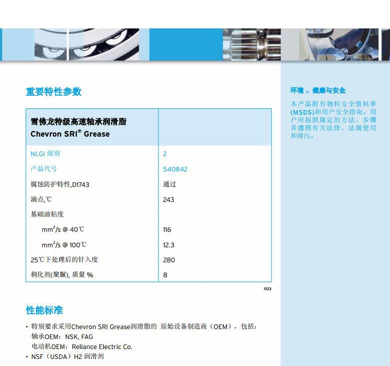雪佛龙高速轴承润滑脂 (Chevron SRI® Grease)