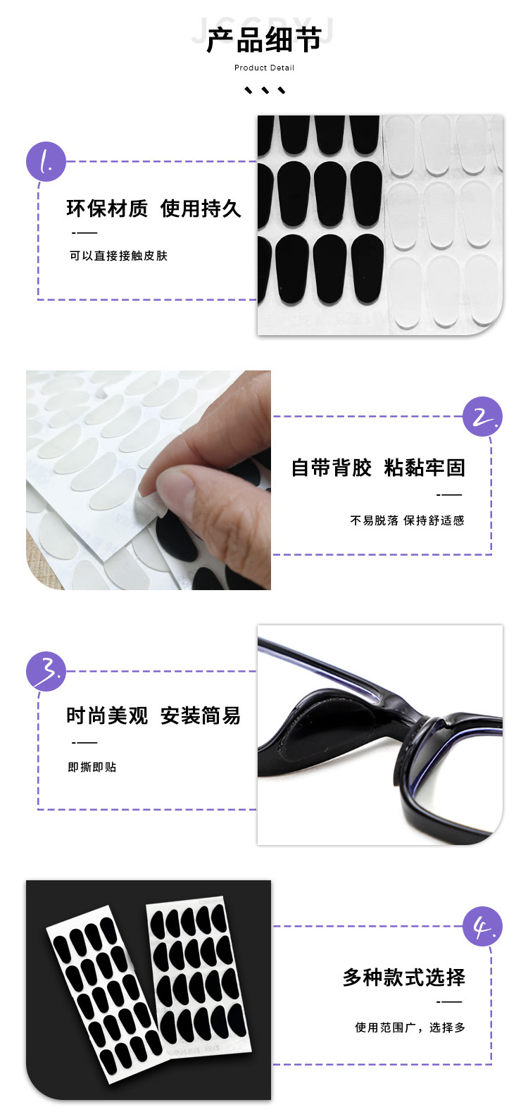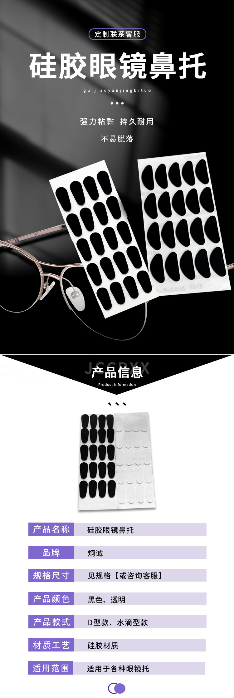 防滑防压痕眼镜鼻托D字型硅胶鼻托增高椭圆形自粘鼻垫眼镜配件