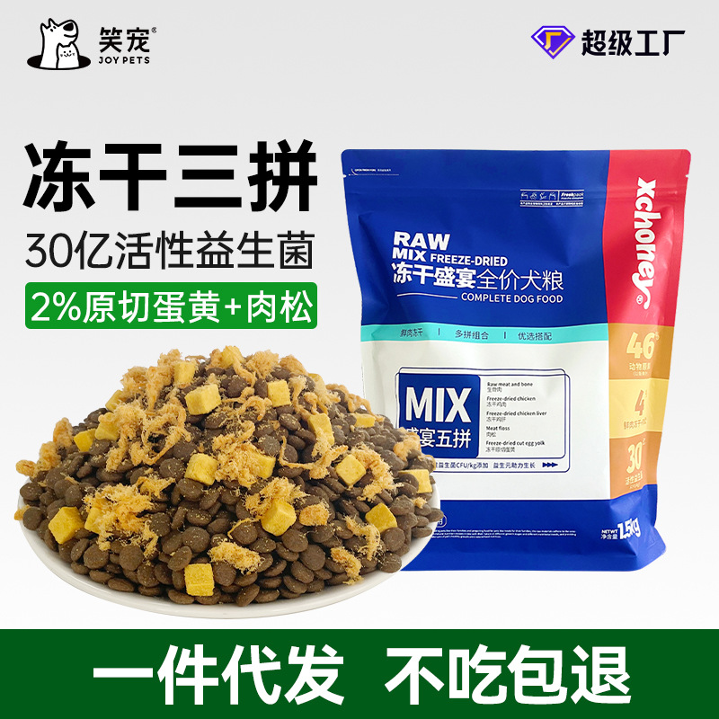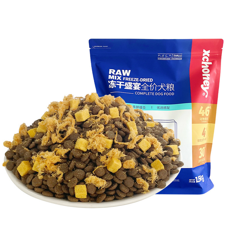 Представленная трехкомпонентная (вереная нить + яичный желток + ферментный карниз); Juewei три куска (мясо необработанной кости + курица + карниз фермента); Пир Wupin (мясная нитка, яичный желток, сырые кости, куриная печень, корм); Пробиотический питательный полноценный корм для собак