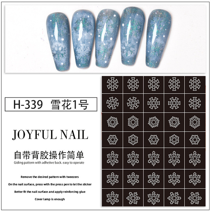 Снежинка ногтей шаблон картины наклейки оптом Рождественские полые наклейки для ногтей белый градиент цветущие наклейки для ногтей