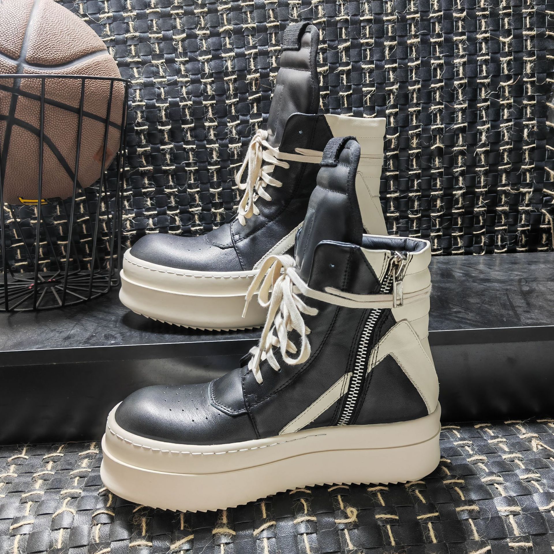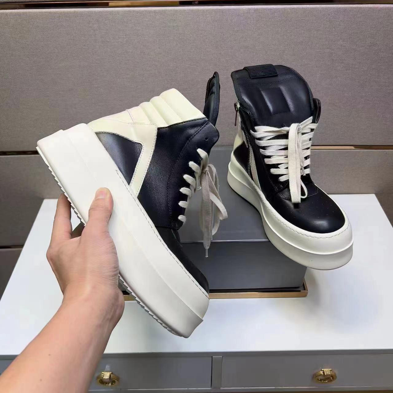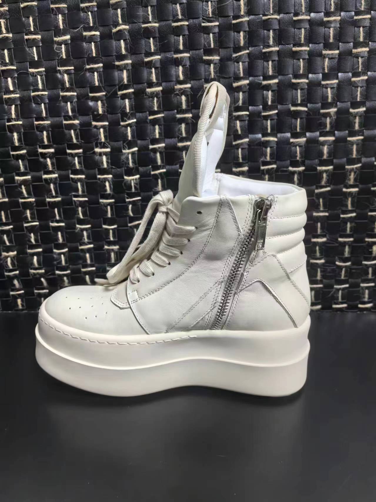 2023 Осенняя европейская американская мода R O перевернутая треугольная толстая подошва увеличивается, ненавистный день оргазм мужские сапоги 7CM кожаные пары сапоги