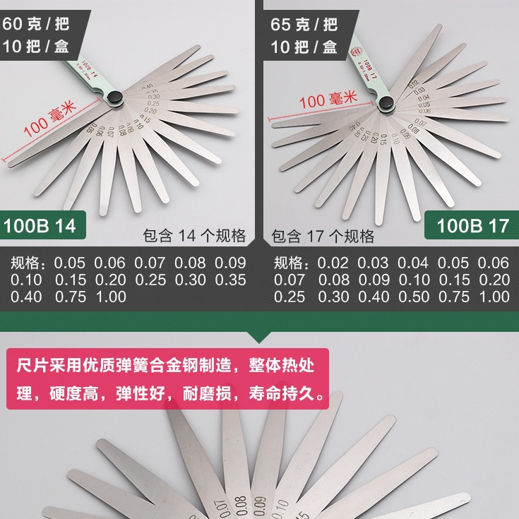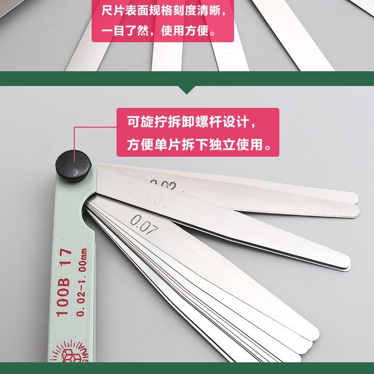 Манометр клапана Jinghua, 17 шт., высокоточный измеритель зазора из нержавеющей стали 0,01-1,0 мм, цельный измеритель зазора 100B, трансграничный экспорт
