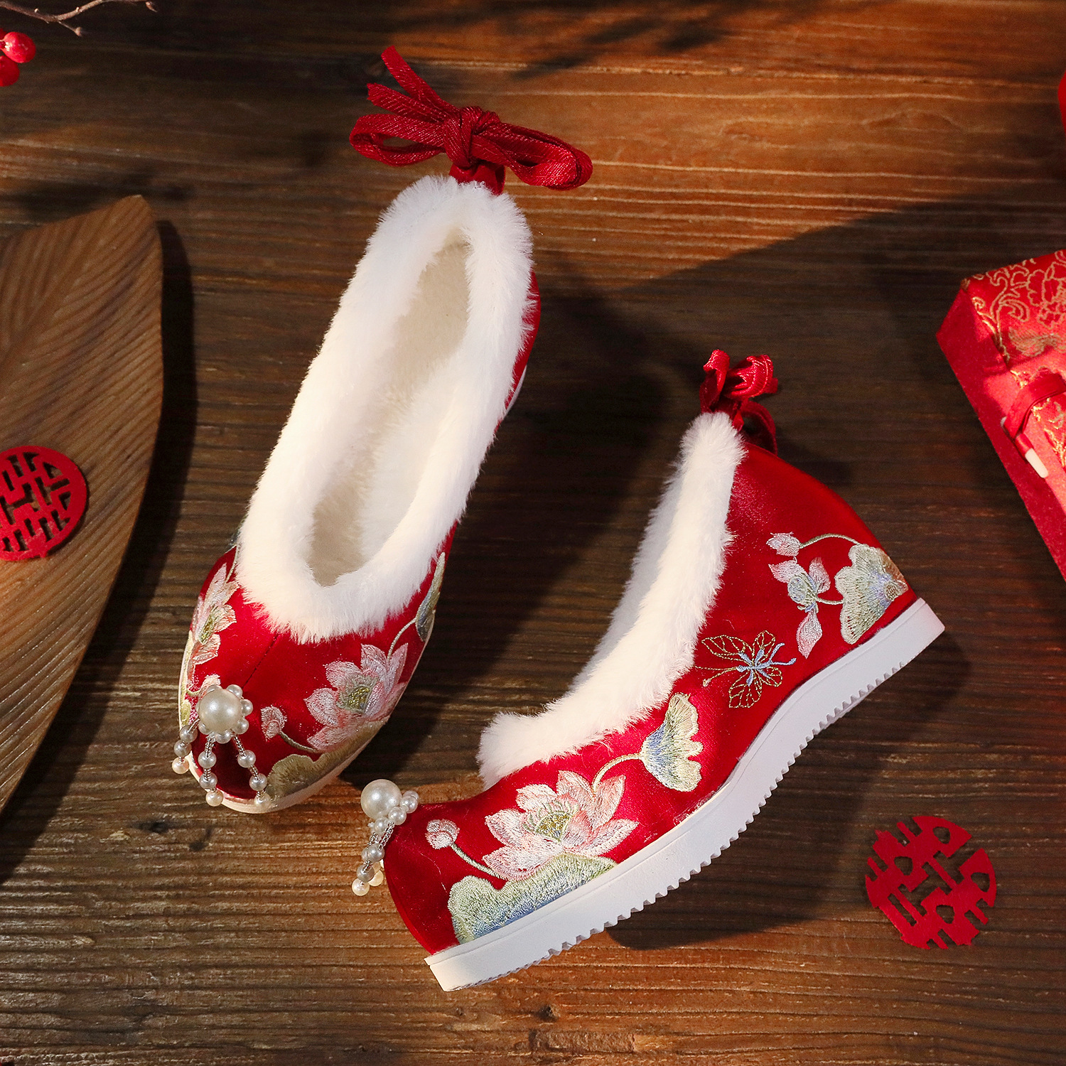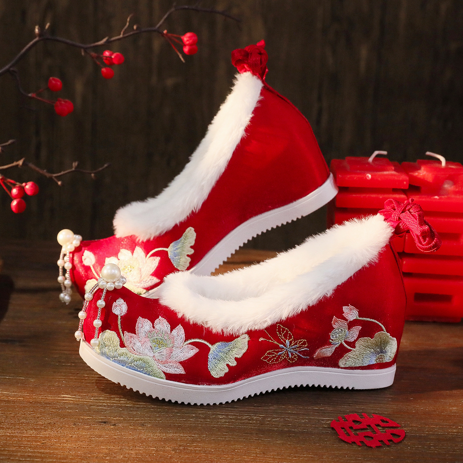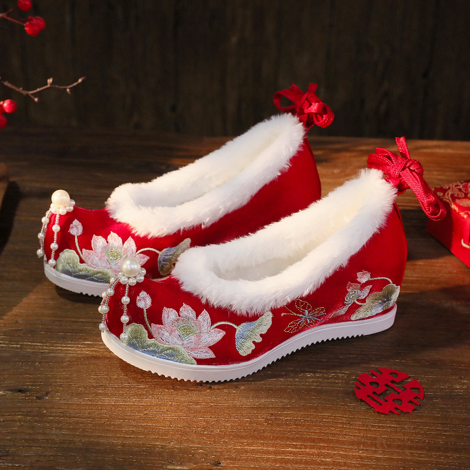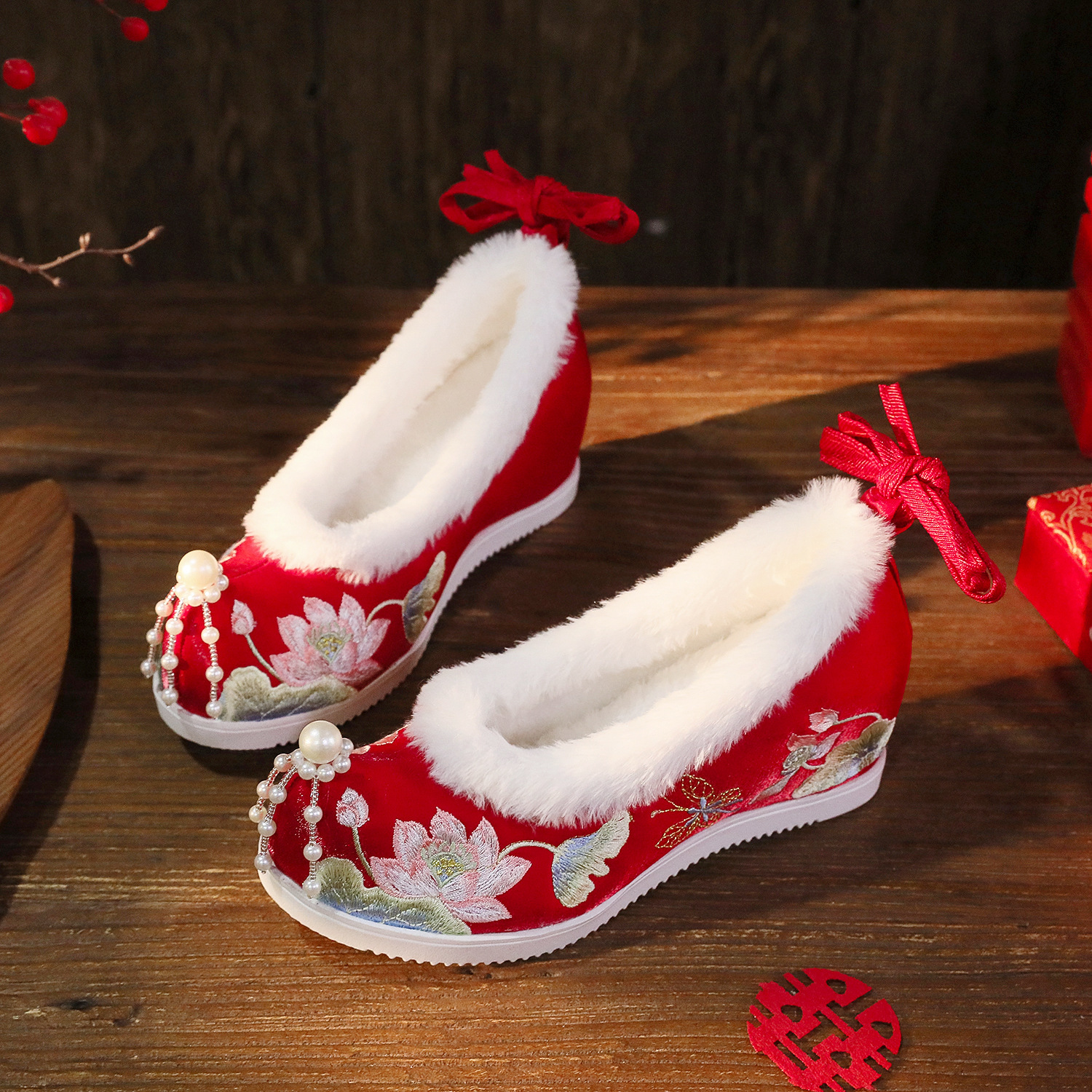 BIHE 6,5 см высокий каблук красный (на флисовой подкладке)