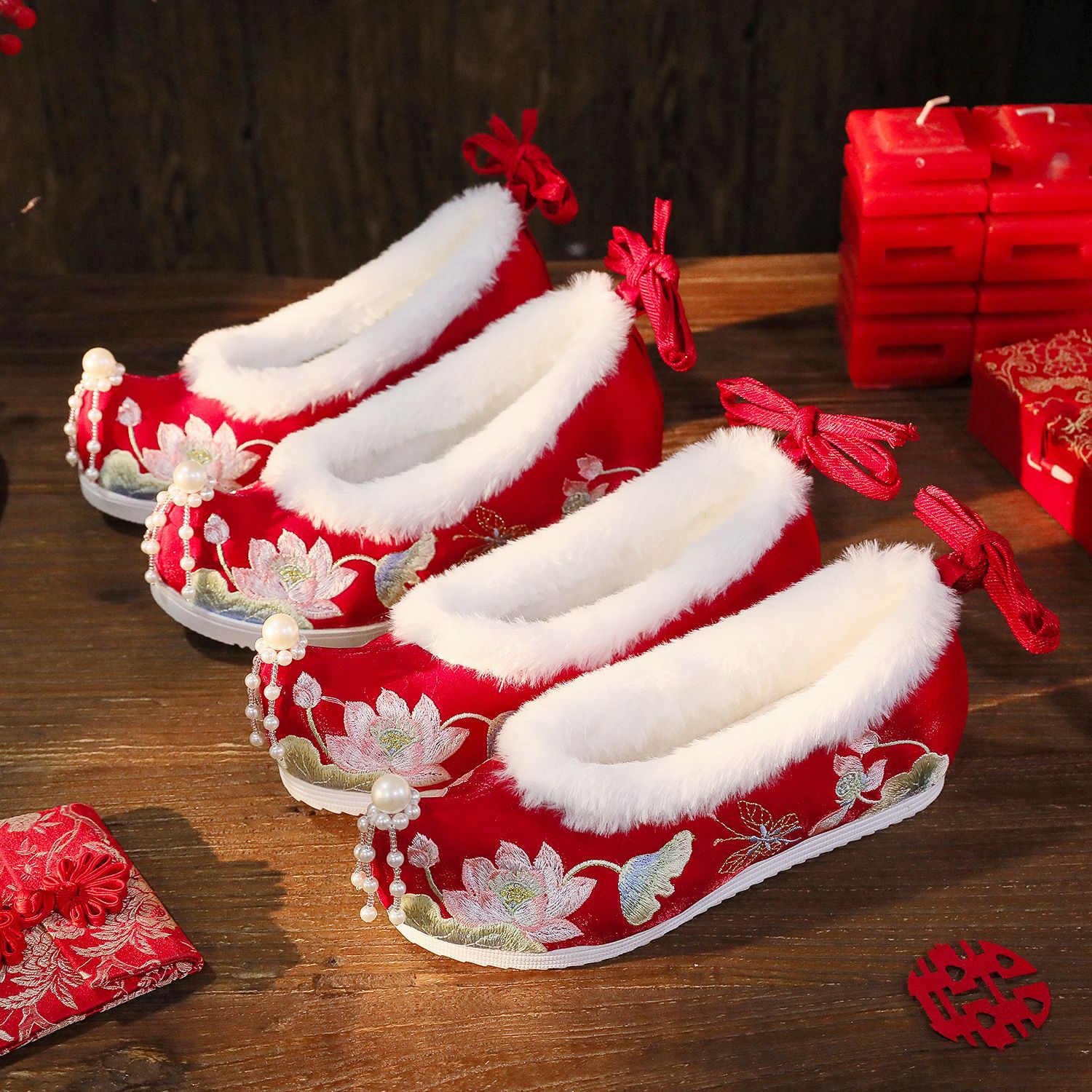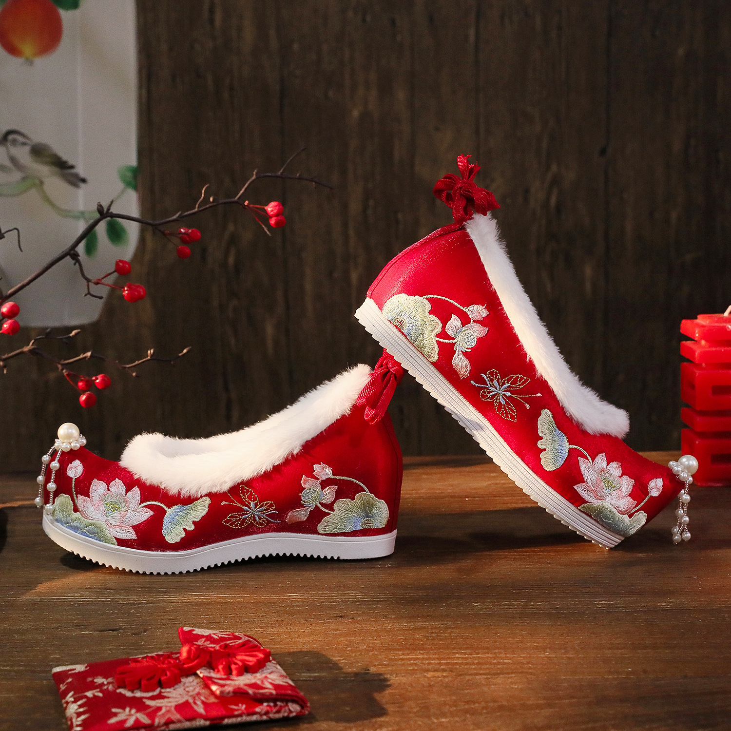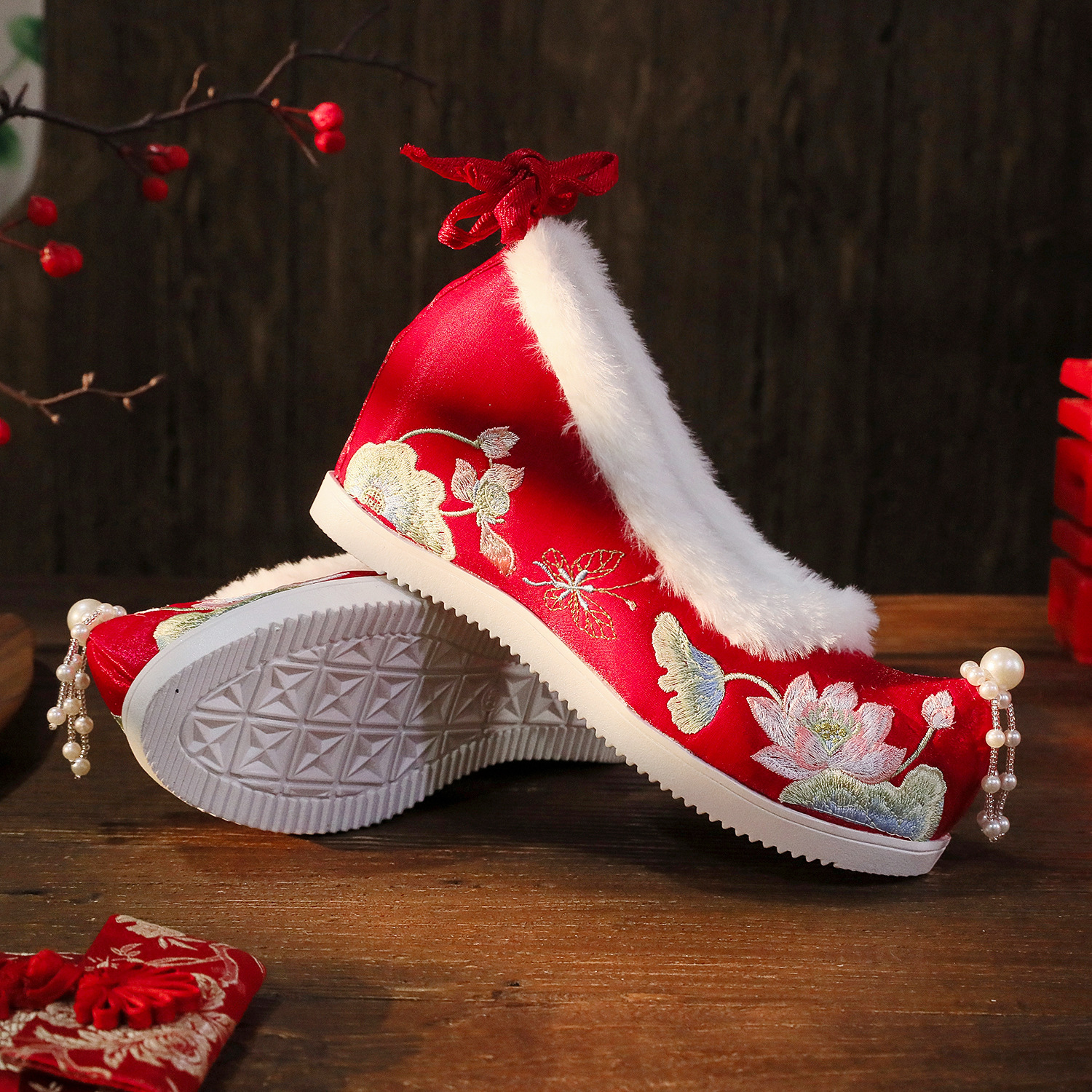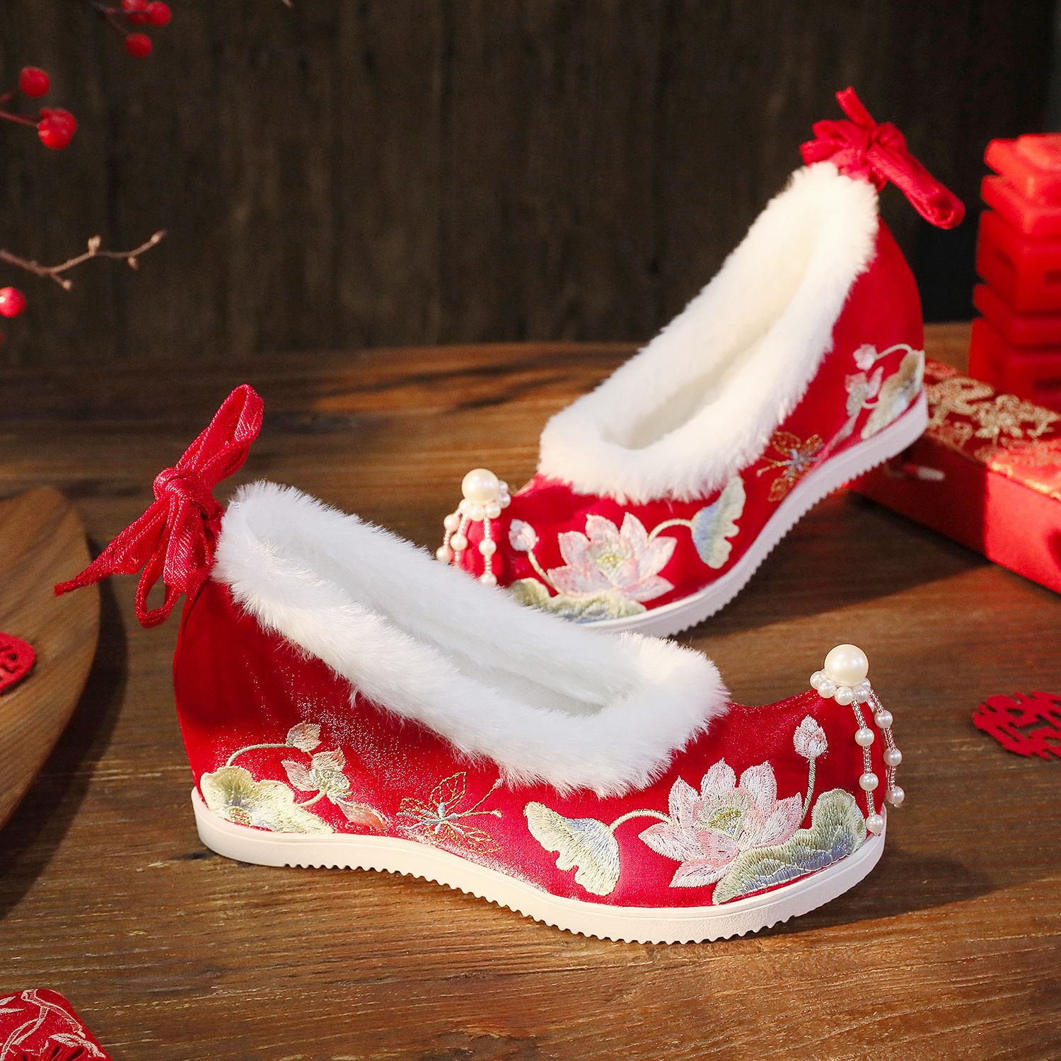 BIHE 6,5 см высокий каблук красный (на флисовой подкладке)