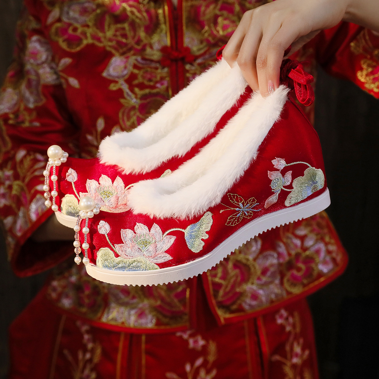 Fenglaiyi весна и осень новые туфли ханьфу с кисточками старинный стиль вышитые туфли невесты Xiuhe свадебные туфли в китайском стиле внутренние увеличивающие рост тканевые туфли