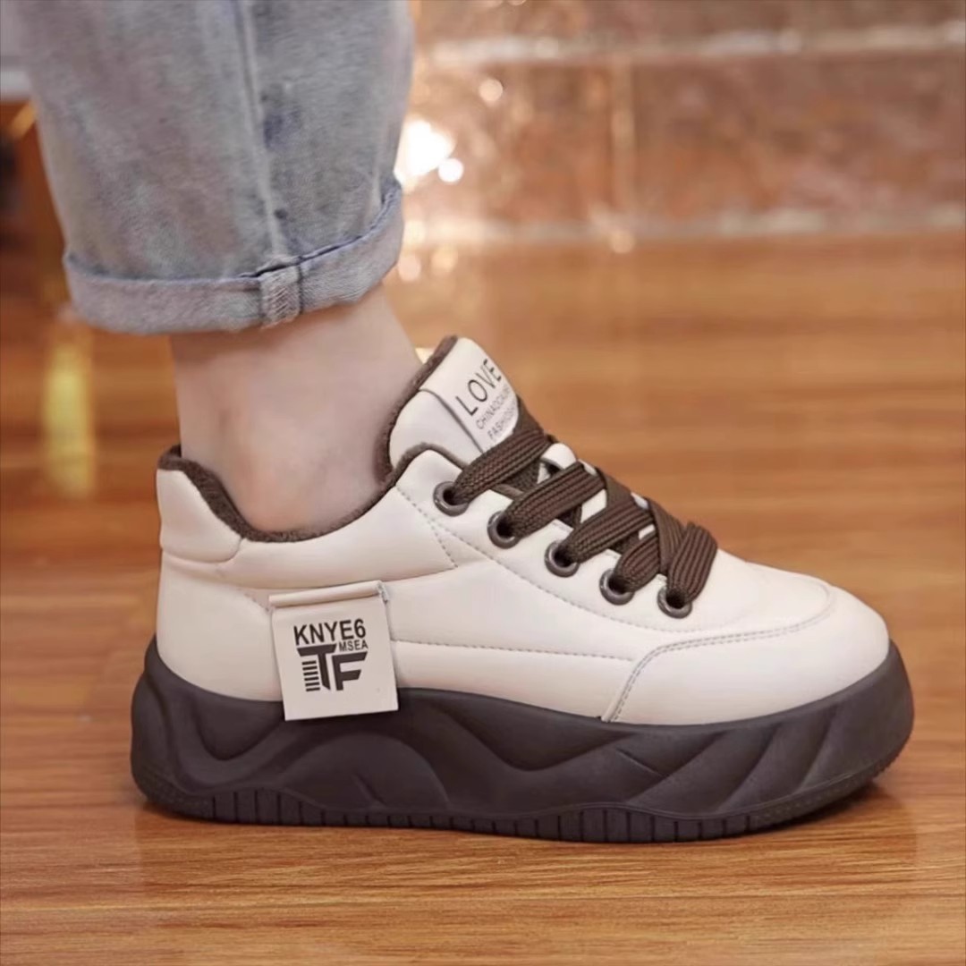 2023 Зимние Новые повседневные спортивные теплые туфли на флисовой подкладке в Корейском стиле с хлопковой подкладкой, хлебные туфли, женская обувь, кроссовки на платформе, женская обувь