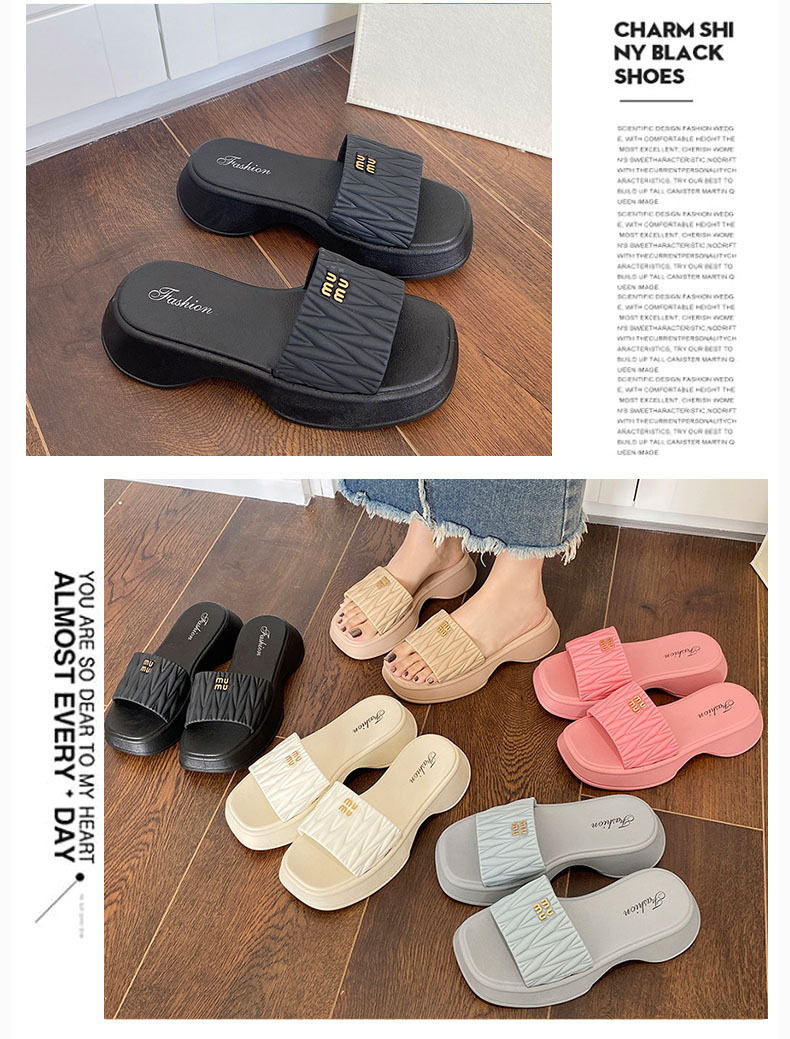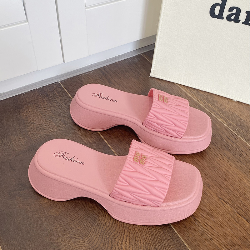 Новинка 2024 года, модные тапочки для верхней одежды, Нескользящие тапочки с одним словом на толстой подошве, красные пляжные женские тапочки, популярные во внешней торговле