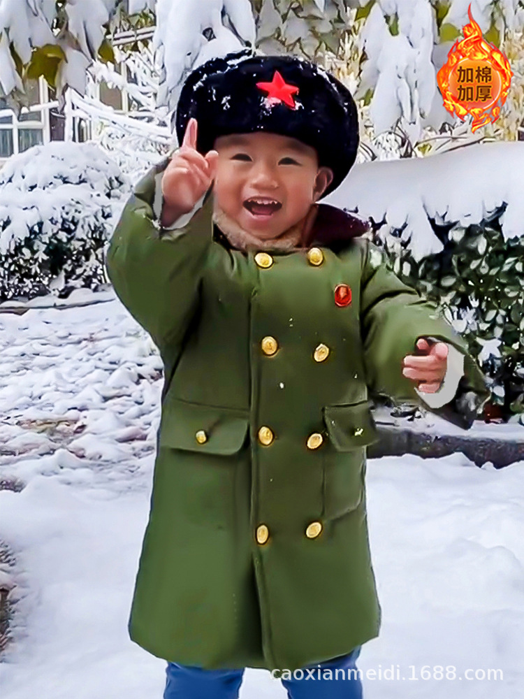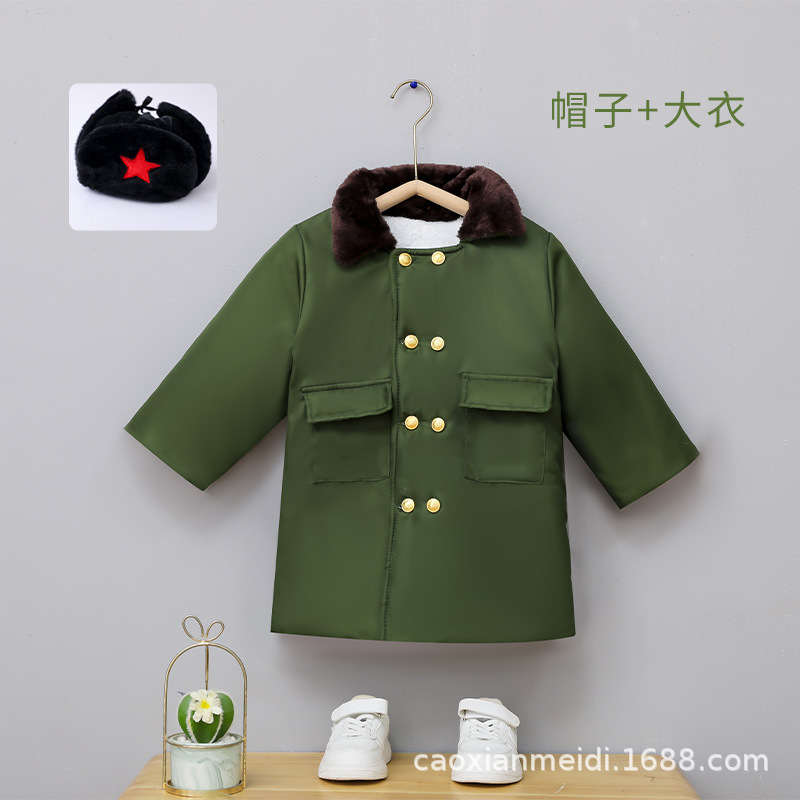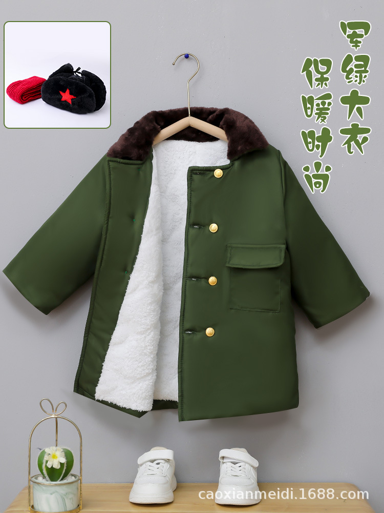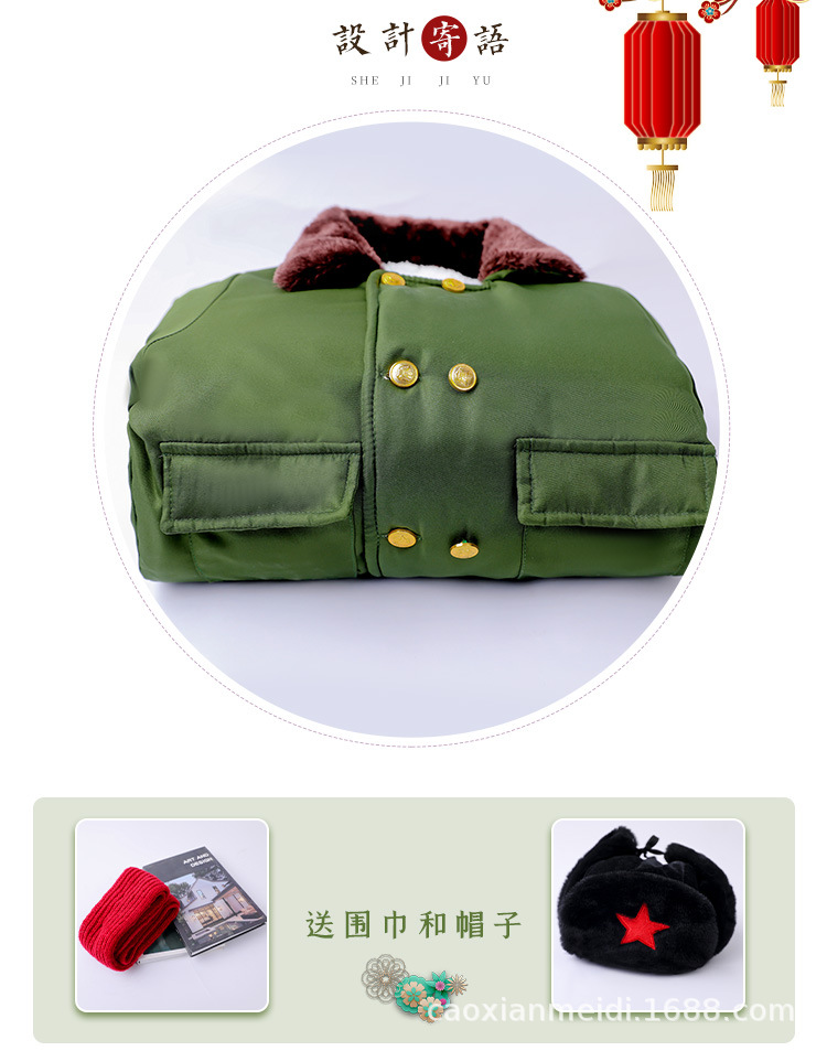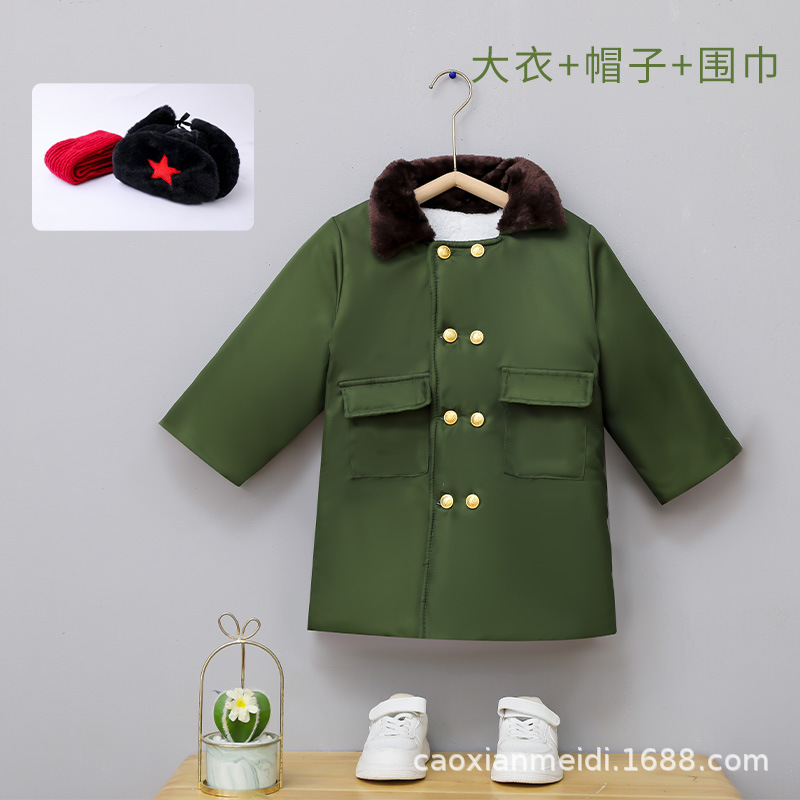 Детское армейское зеленое пальто с хлопковой подкладкой на флисовой подкладке утолщенное пальто с хлопковой подкладкой детская зимняя теплая куртка с хлопковой подкладкой отправить Лэй Фэн шапка Красный шарф