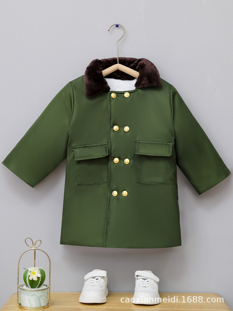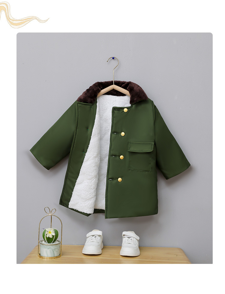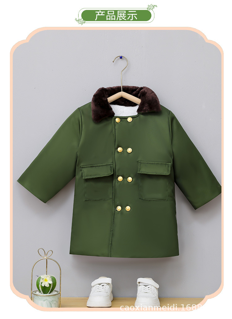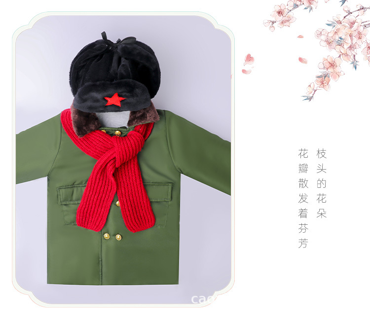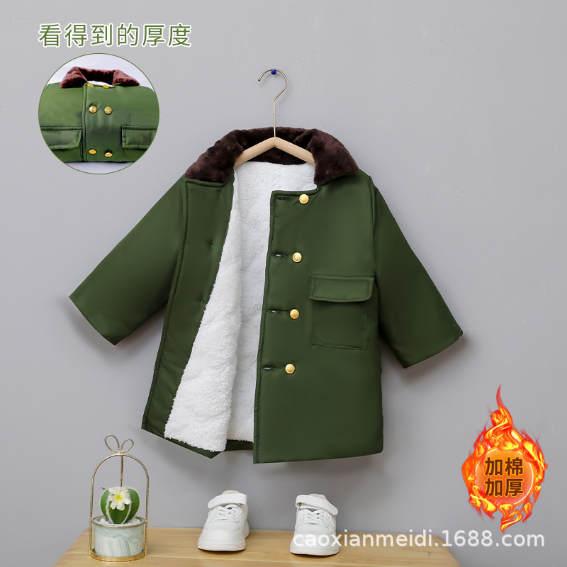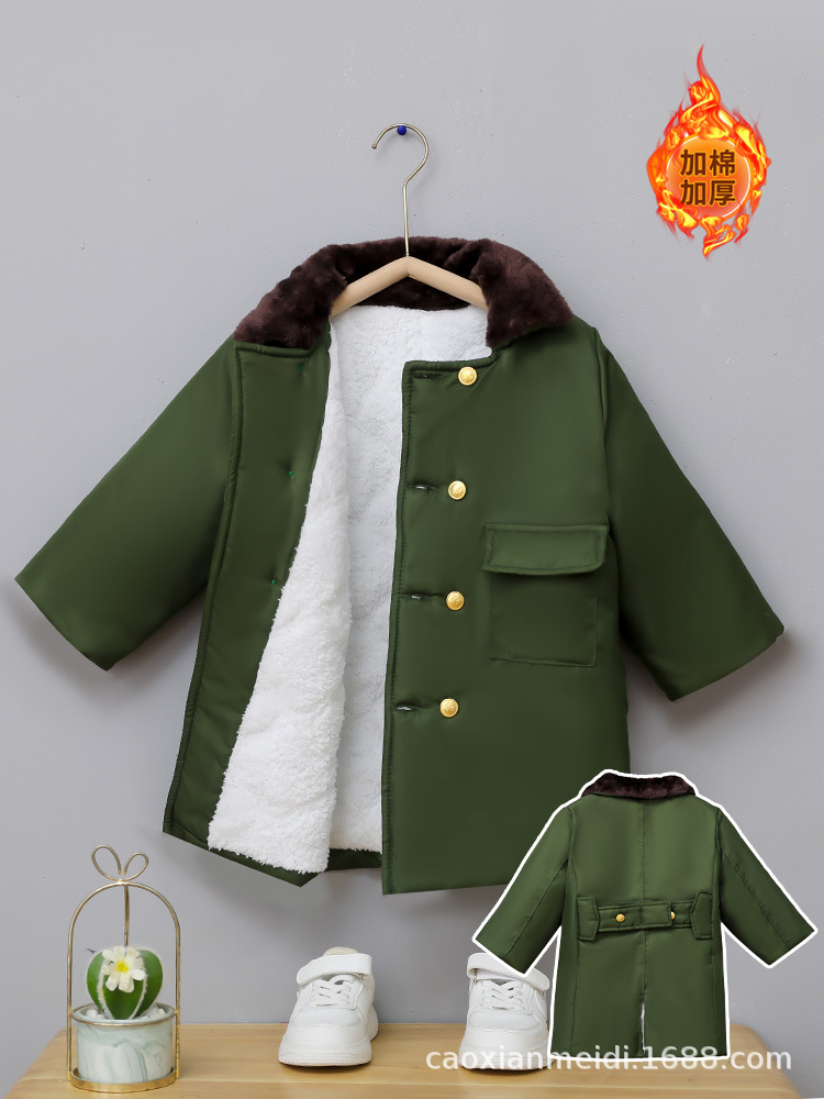 Детское армейское зеленое пальто с хлопковой подкладкой на флисовой подкладке утолщенное пальто с хлопковой подкладкой детская зимняя теплая куртка с хлопковой подкладкой отправить Лэй Фэн шапка Красный шарф