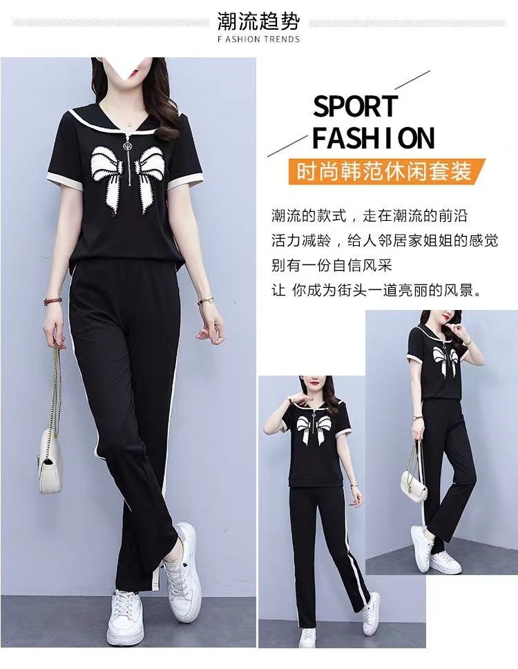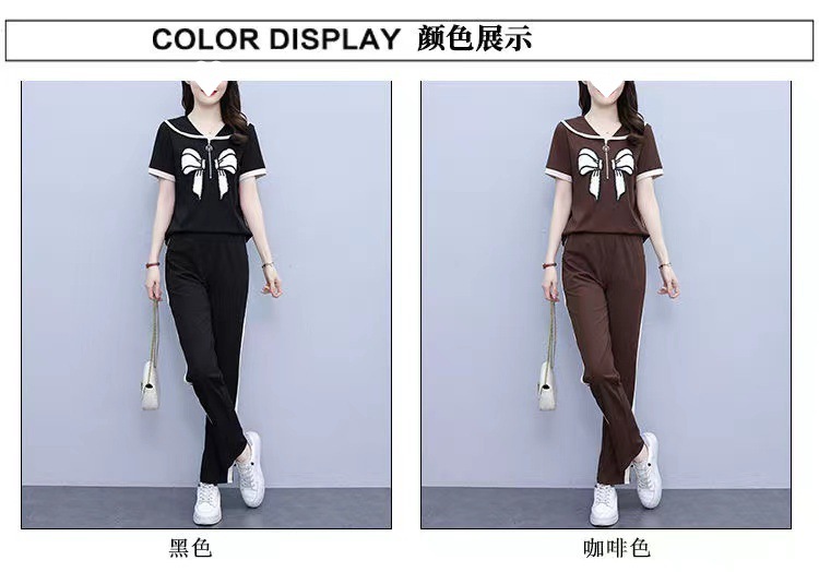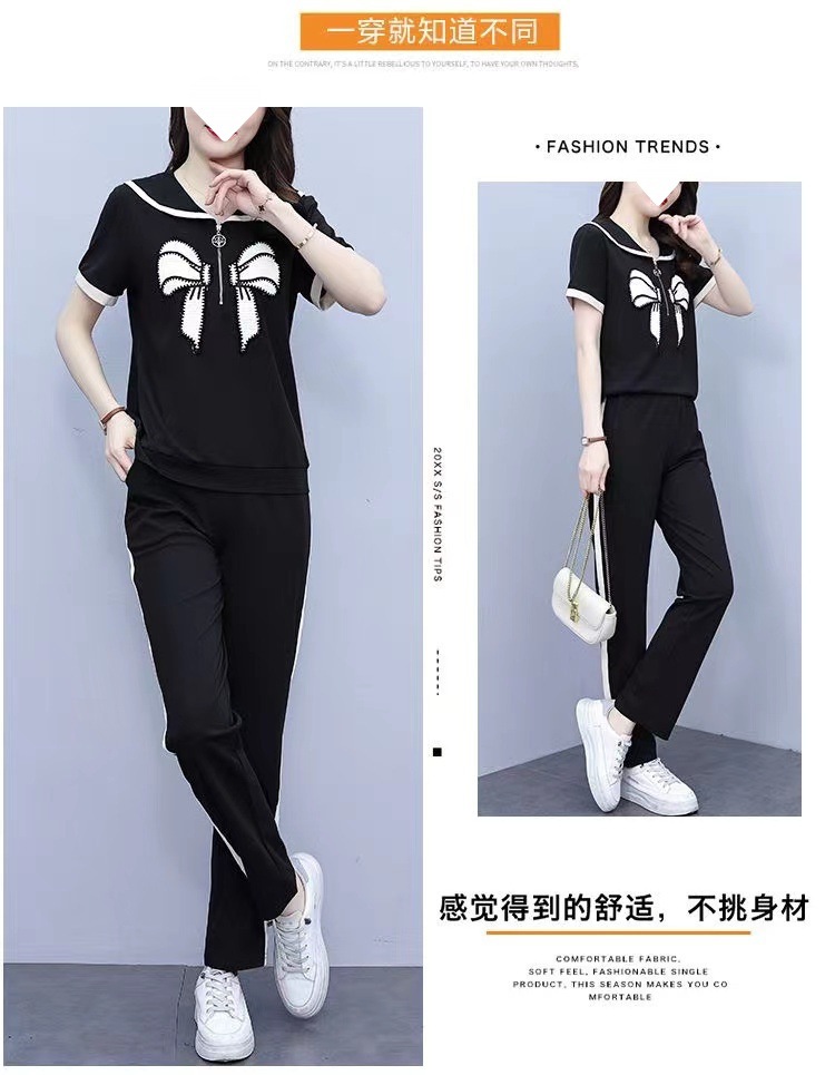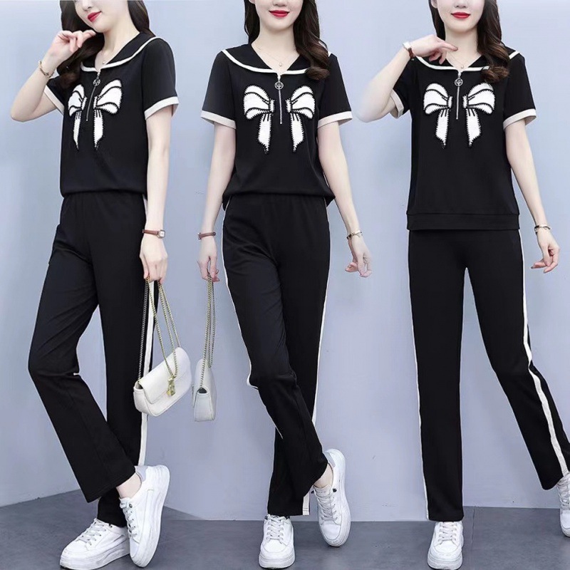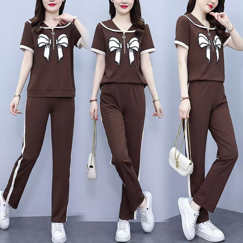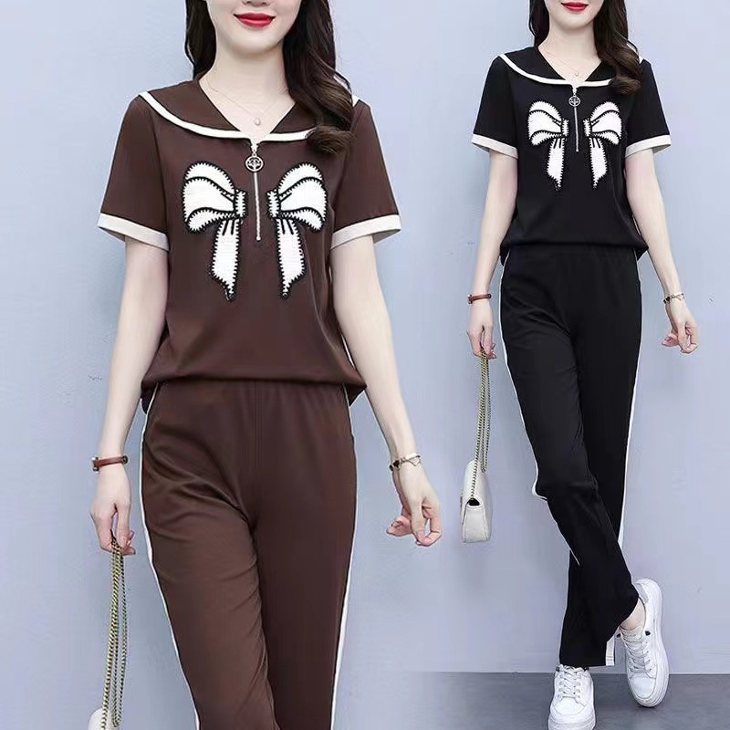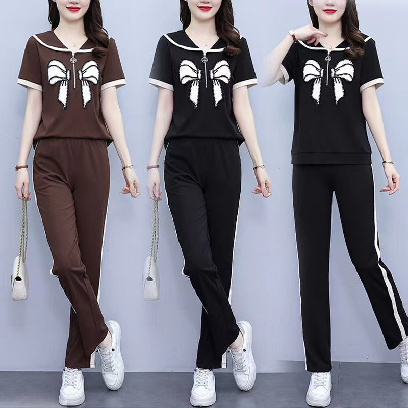 Летний повседневный костюм с бантом интернет-знаменитостей, новый свободный пояс для живота, уменьшающий возраст, комплект из двух предметов