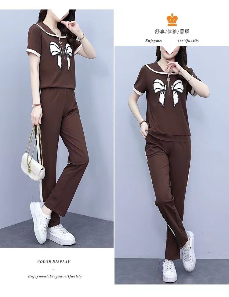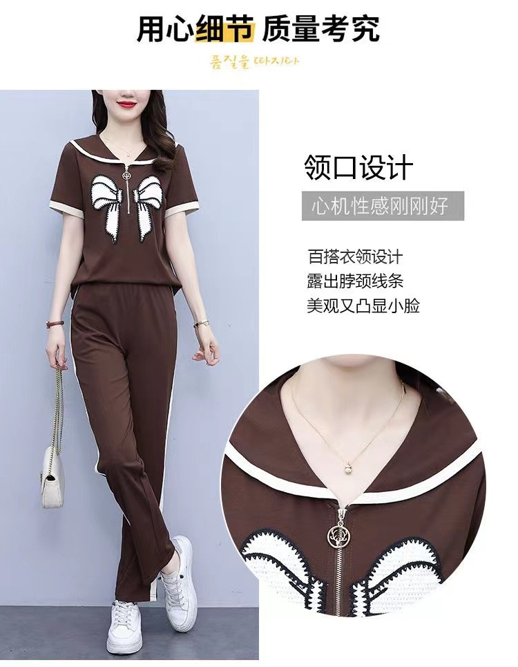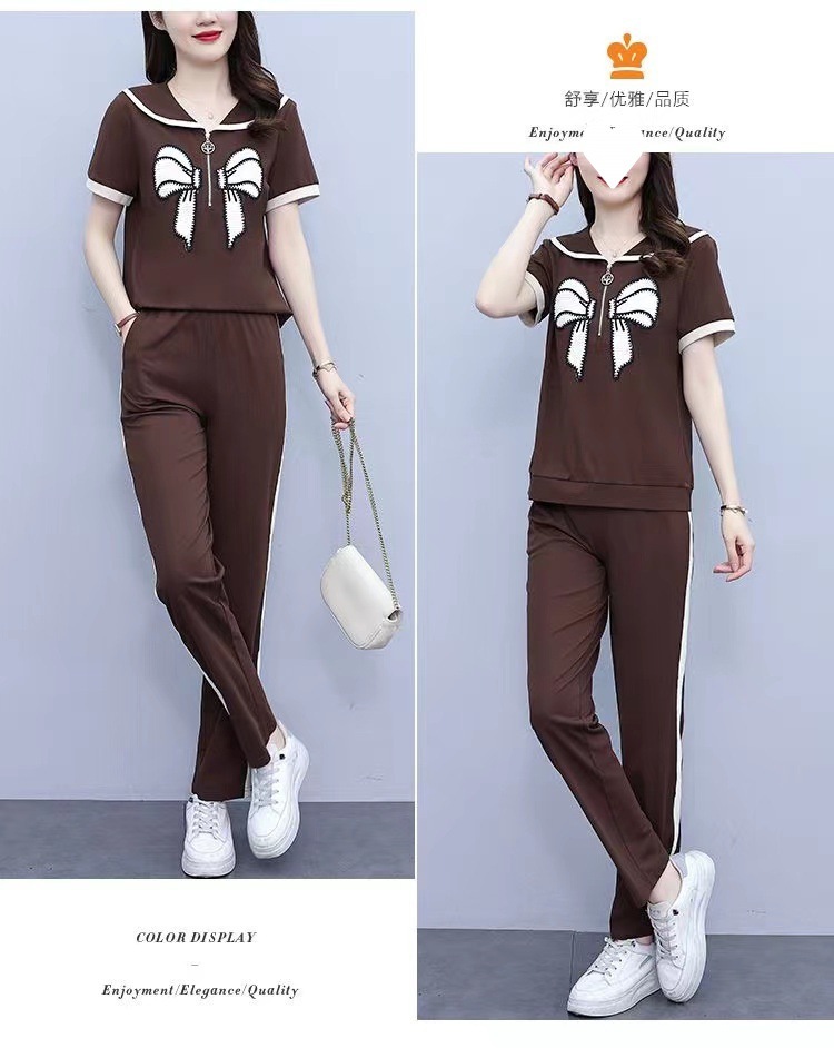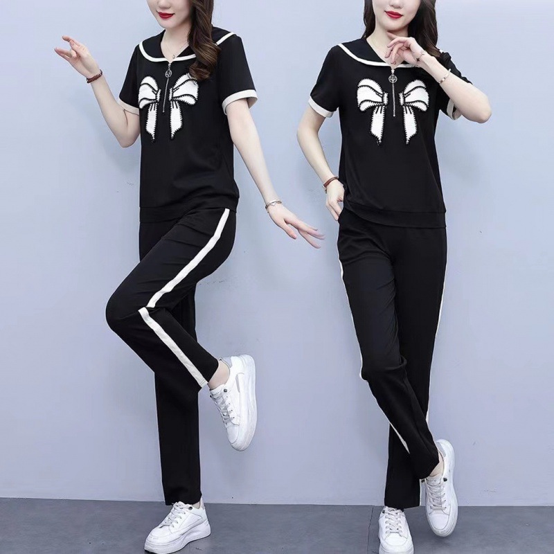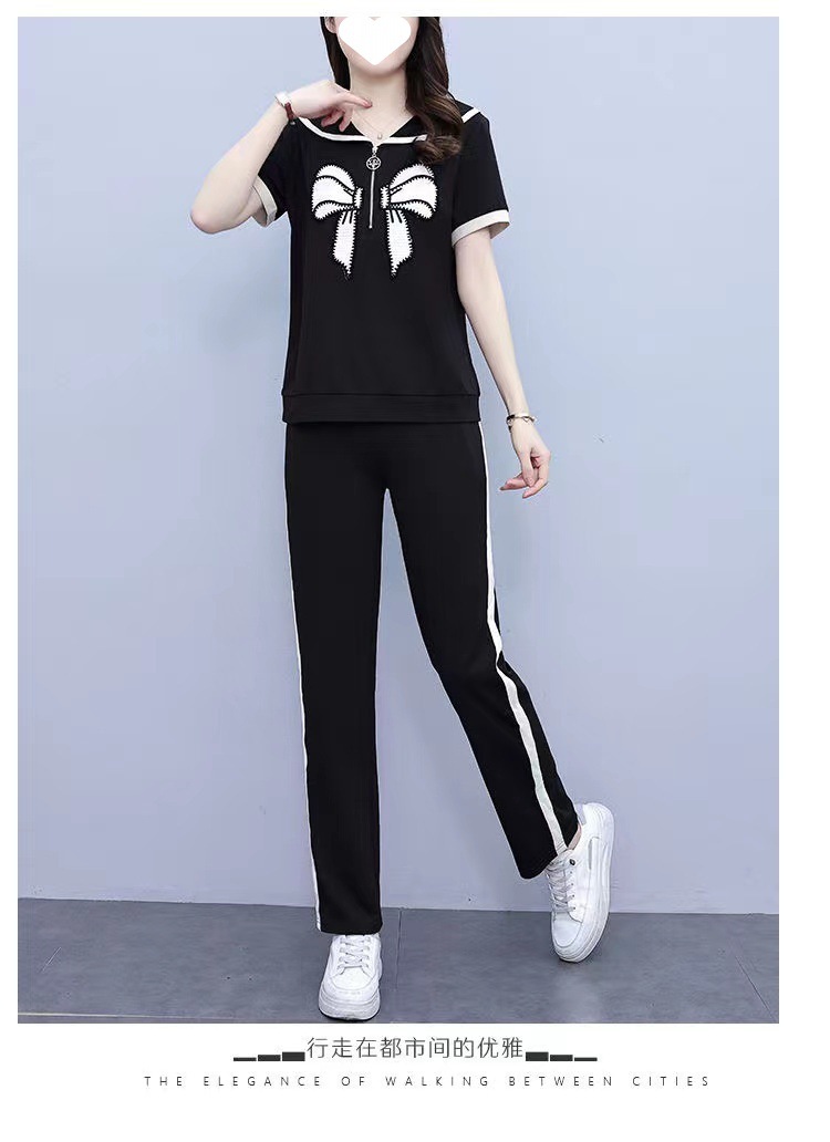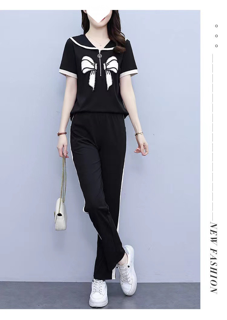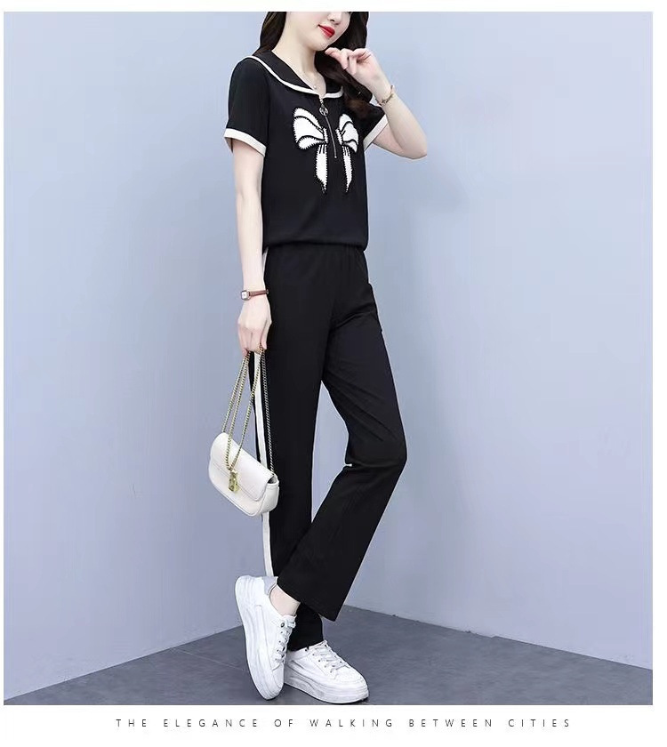 Летний повседневный костюм с бантом интернет-знаменитостей, новый свободный пояс для живота, уменьшающий возраст, комплект из двух предметов