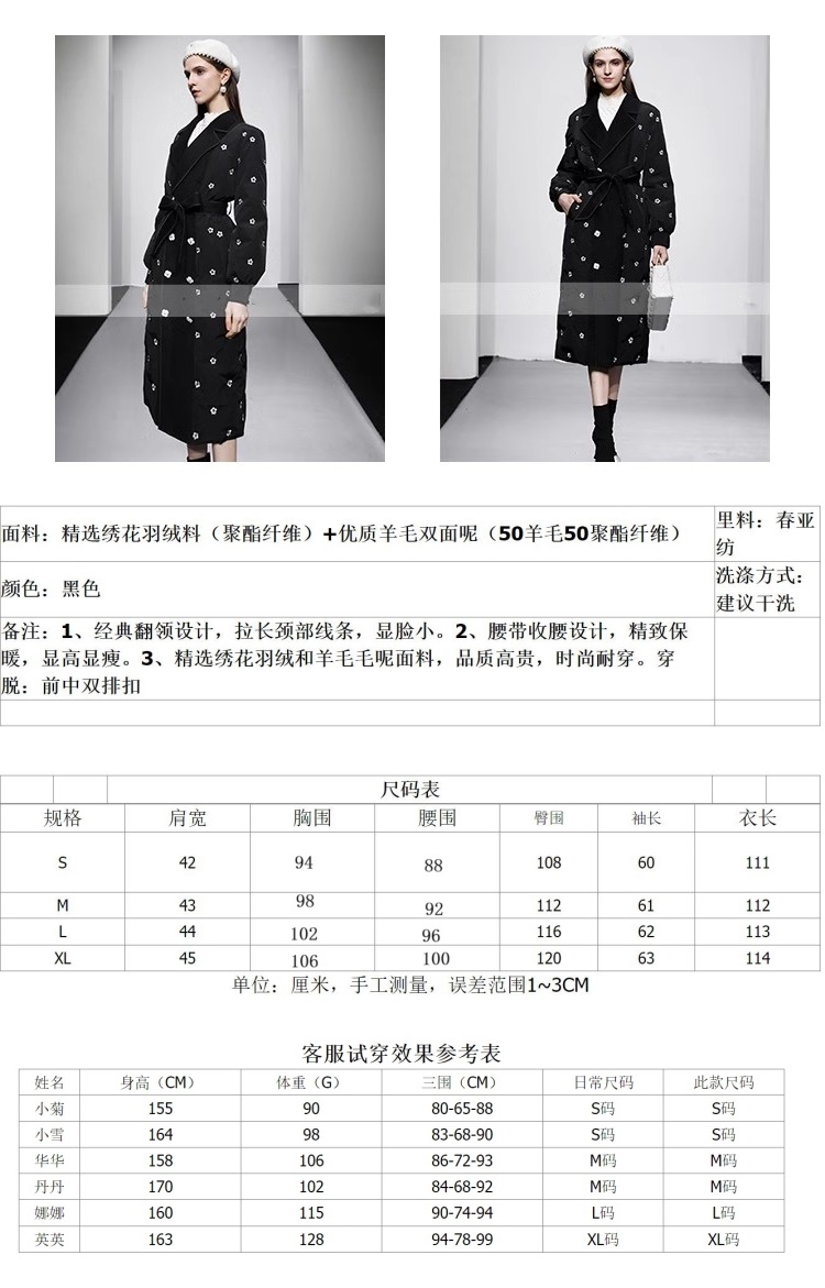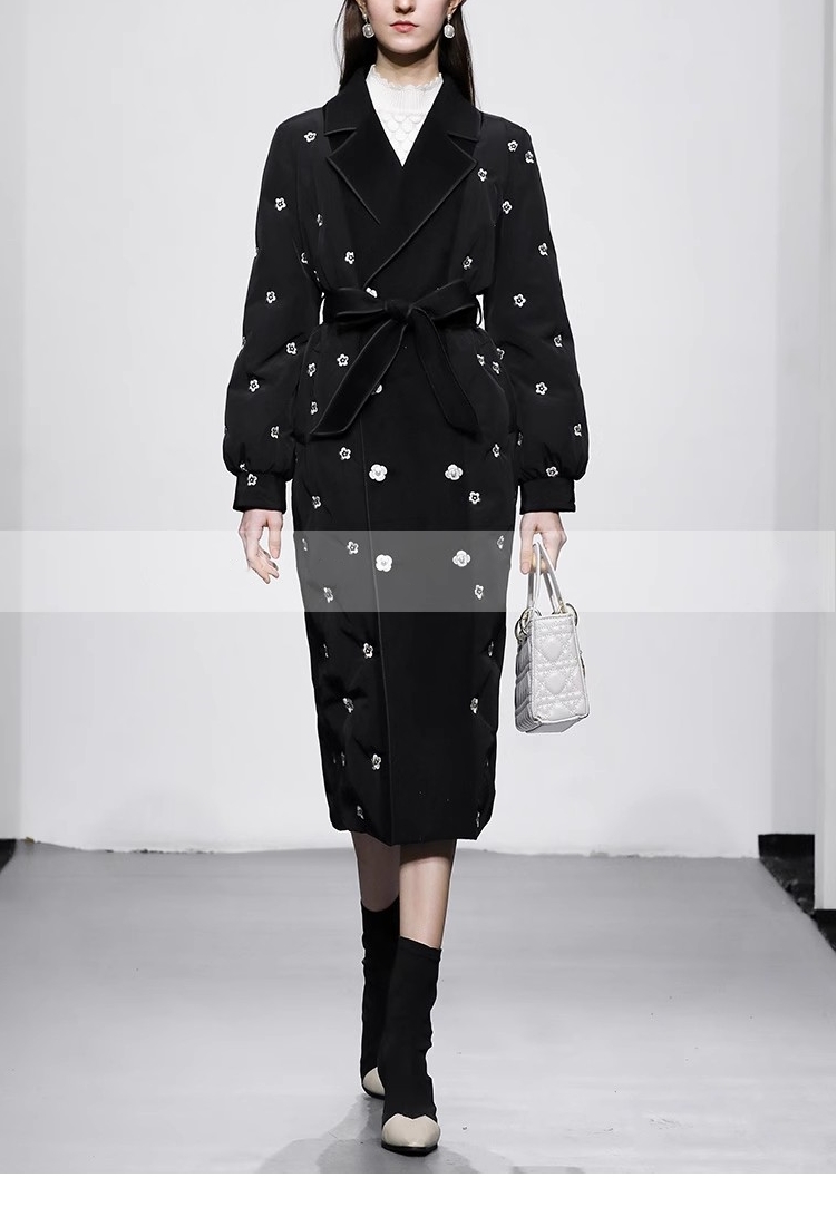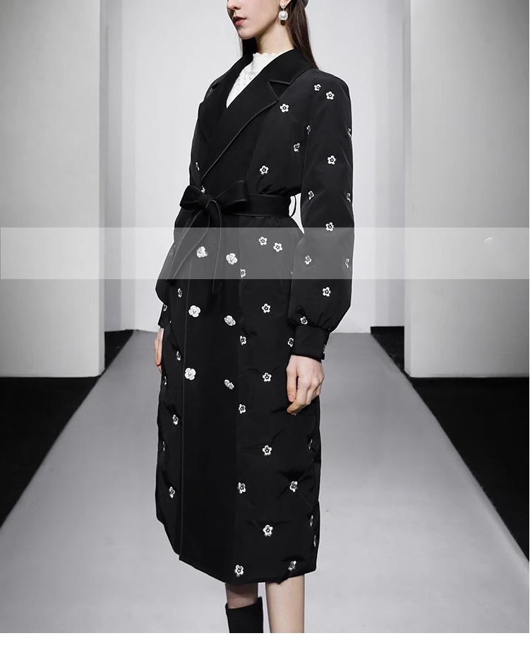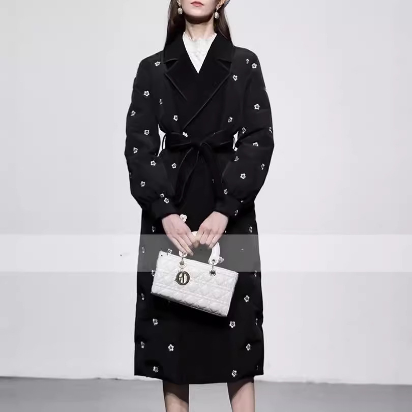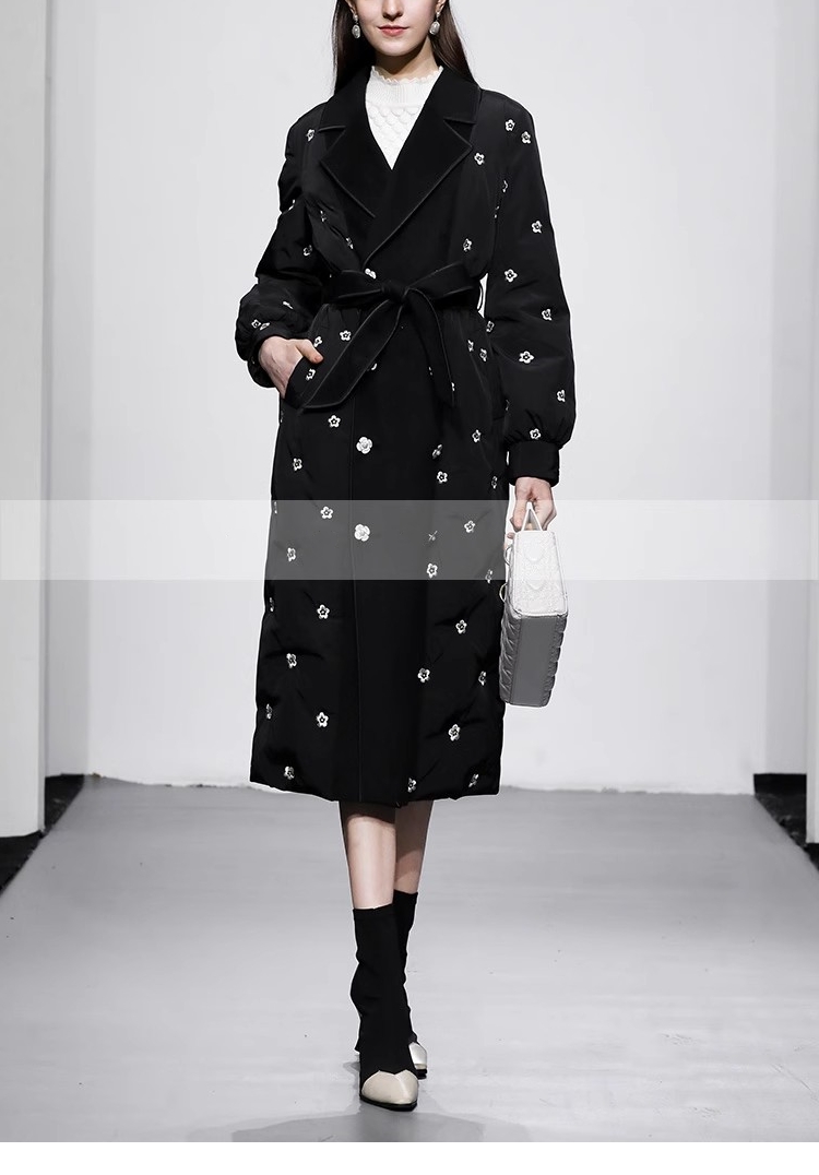 Зимний новый темперамент модный двухсторонний шитый средний длинный черный вышитый белый утка пуховик куртка женский