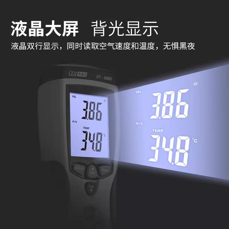 Huasheng Chang CEM Ручной термочувствительный анемометр DT-8880 высокоточный вентилятор для измерения температуры ветра