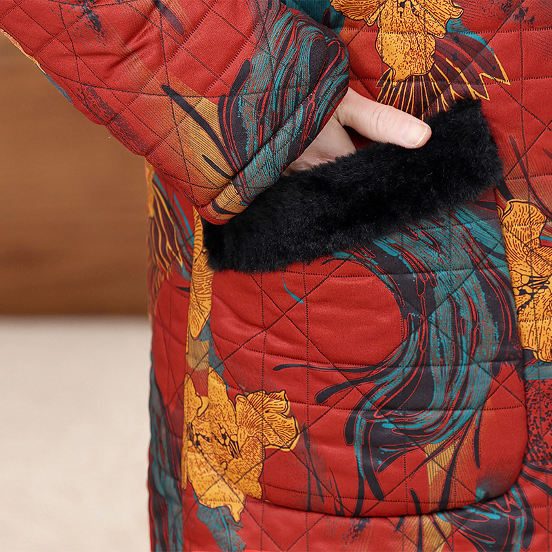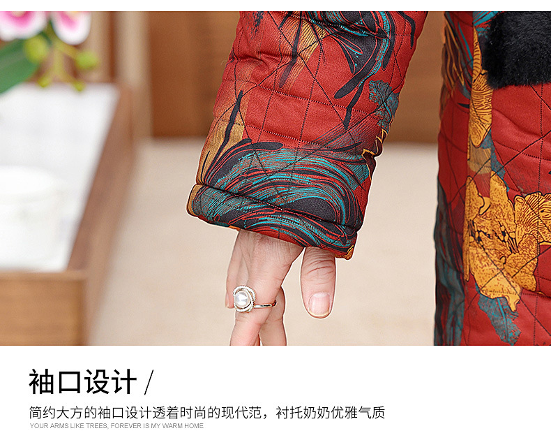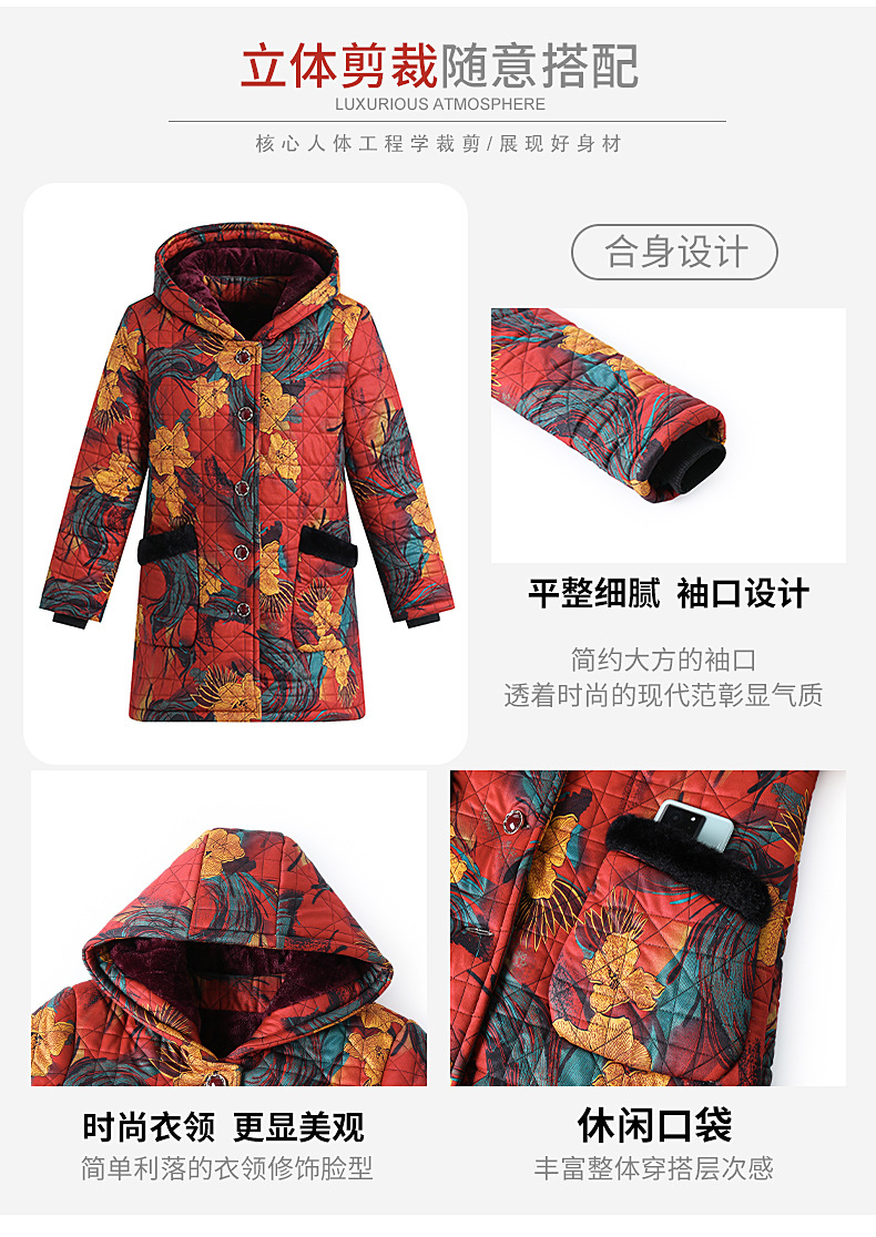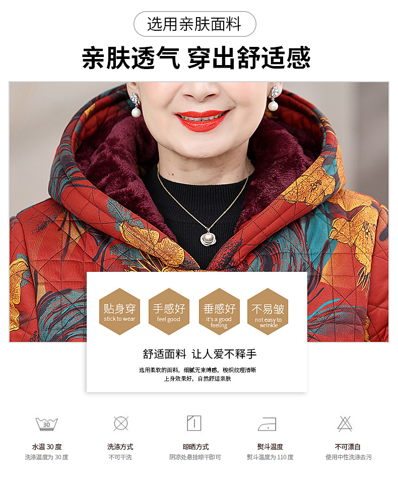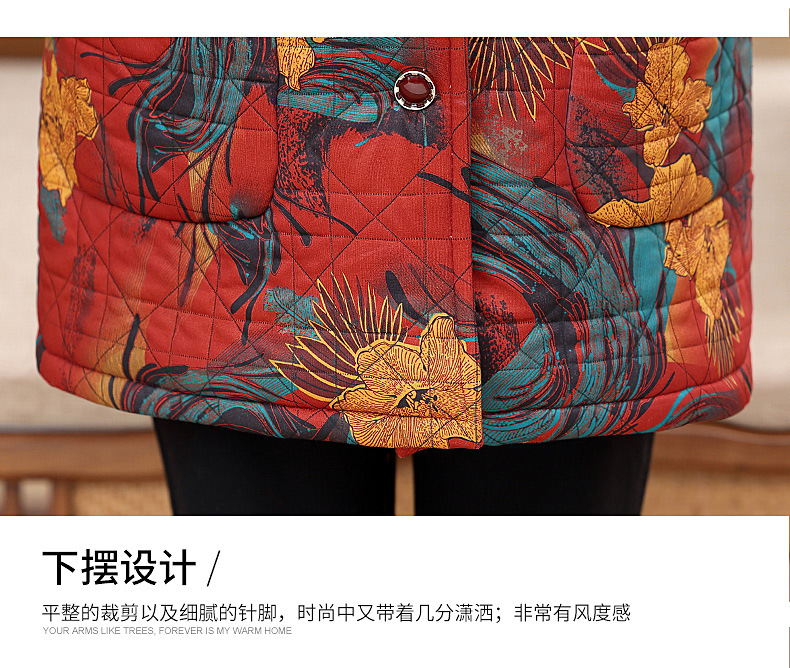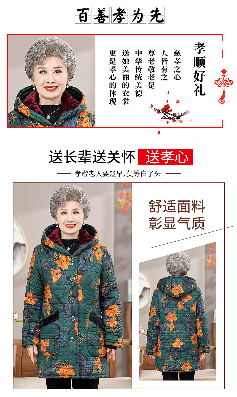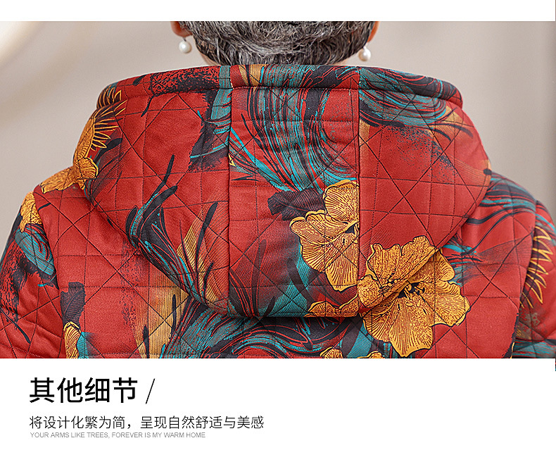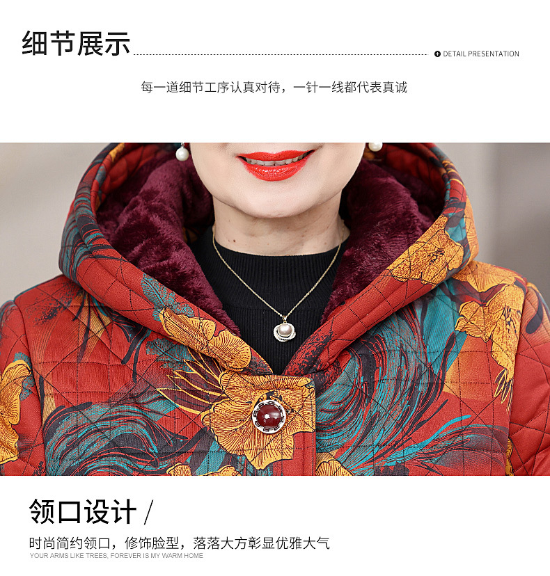 Зимняя одежда для бабушек на флисовой подкладке, пальто с хлопковой подкладкой и капюшоном, Однорядная пуговица, для женщин среднего и пожилого возраста, теща, куртка с хлопковой подкладкой, большой цветок, оптовая продажа, средней длины