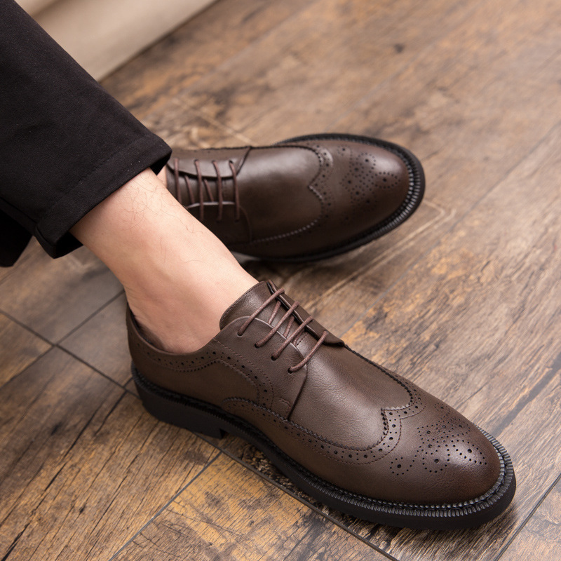 Кожаная обувь, Мужские броги, деловая официальная одежда, обувь большого размера, увеличивающая внутренний рост, мужская обувь