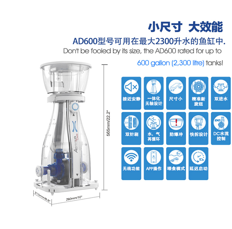 Maxspect AD600 Сепаратор белка пузырькового дракона Морской резервуар Взрывозащищенный полицейский контроллер Умный сепаратор яиц