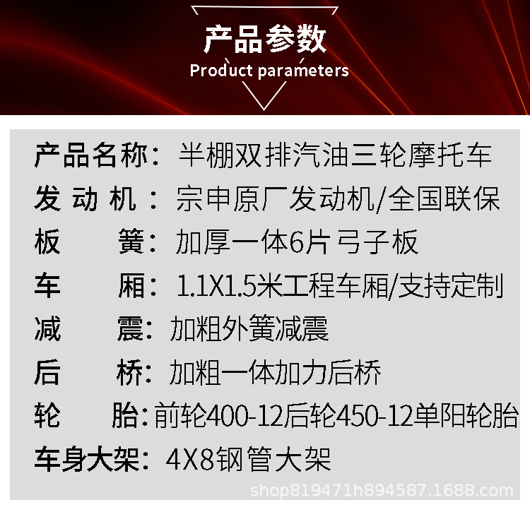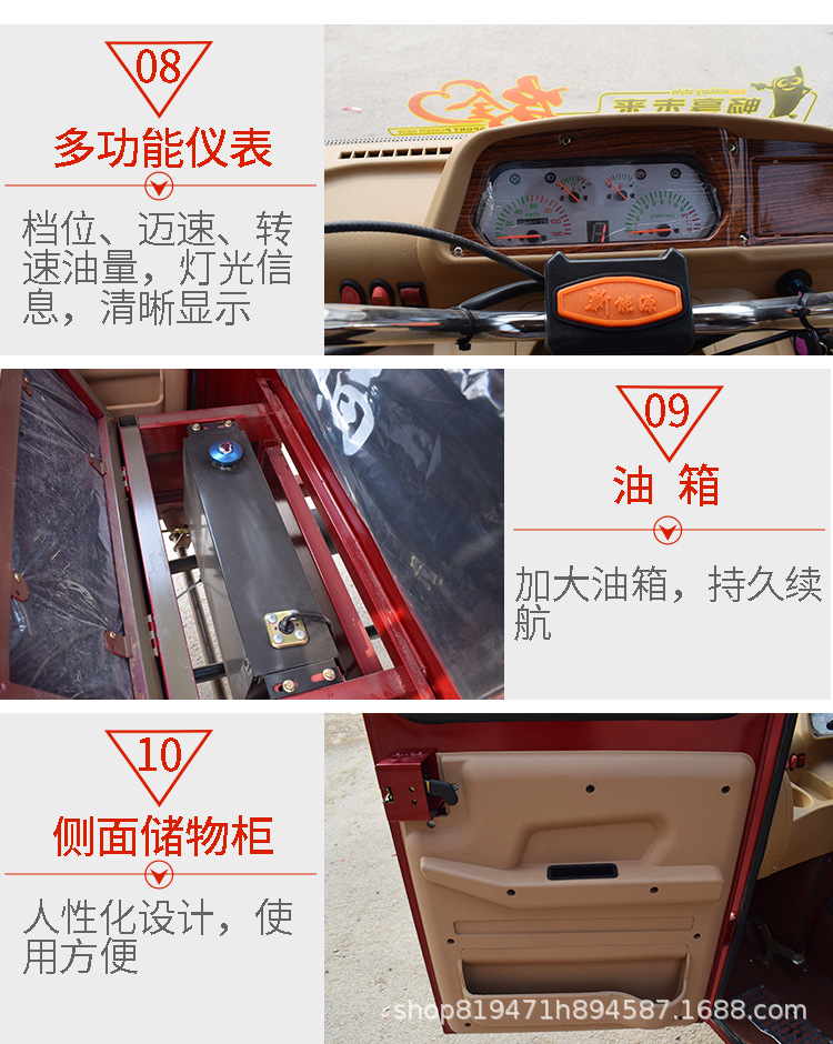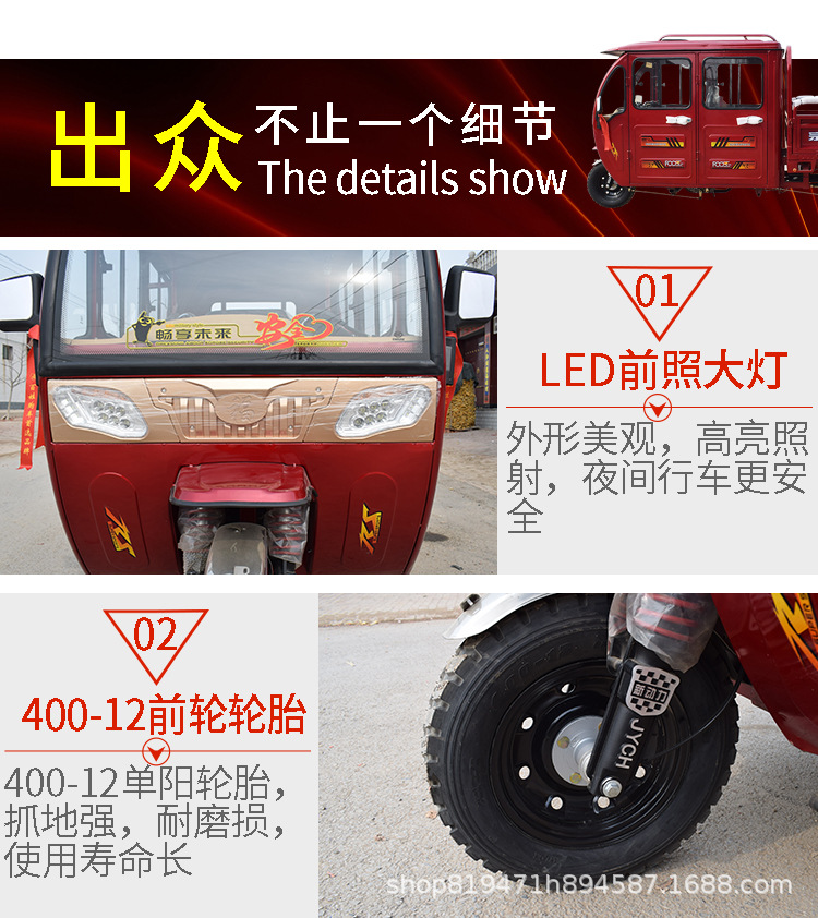 Полузакрытый двухрядный трехколесный мотоцикл, топливный бензиновый двигатель Golden Lion