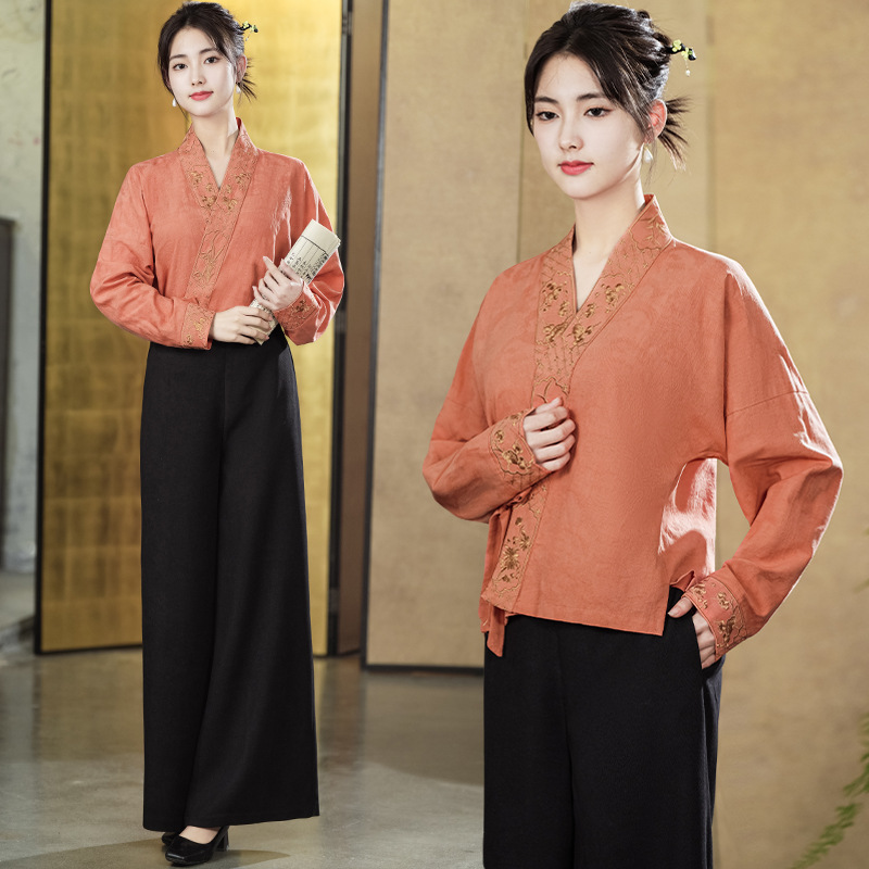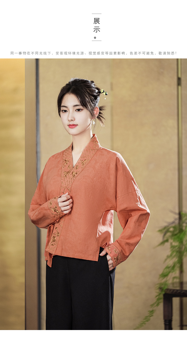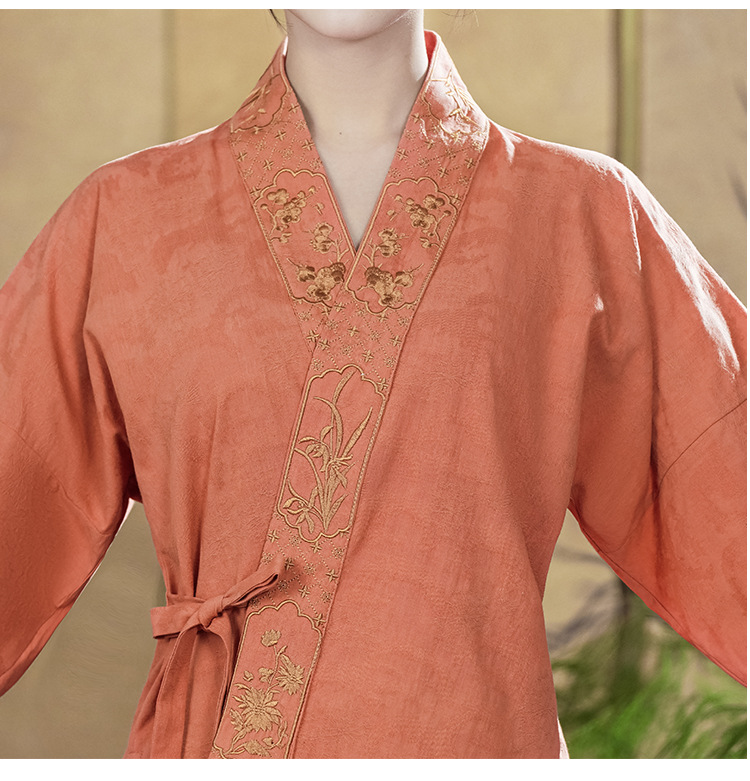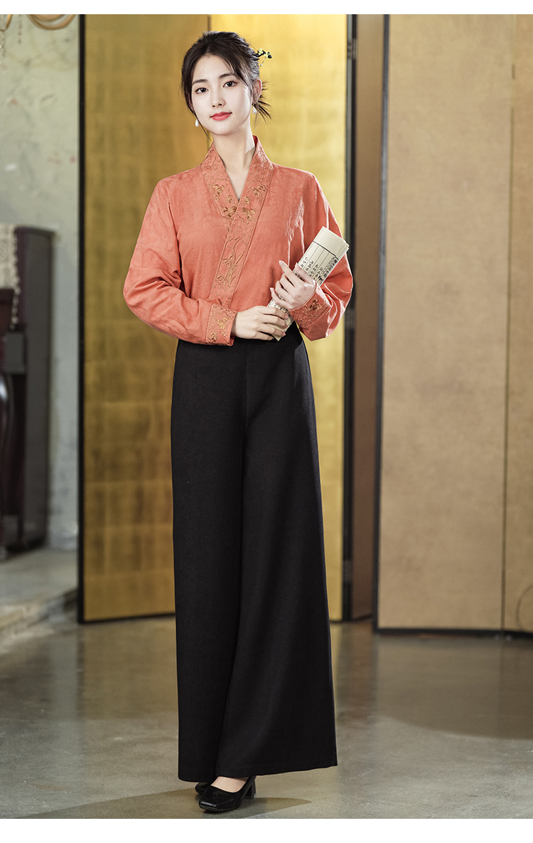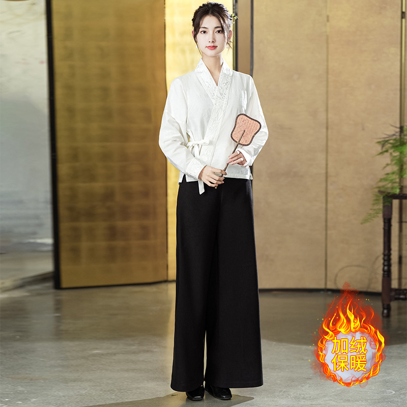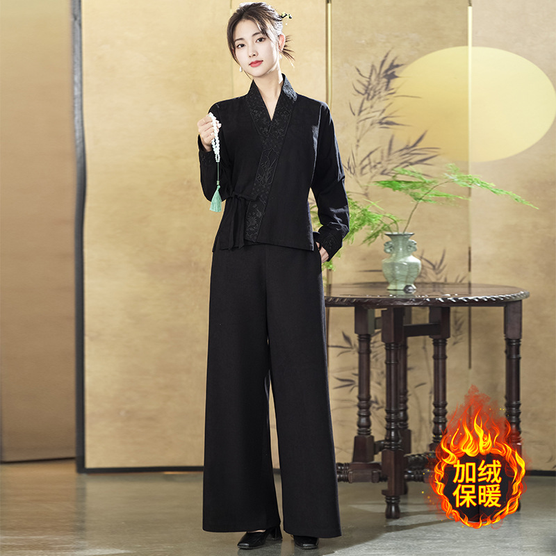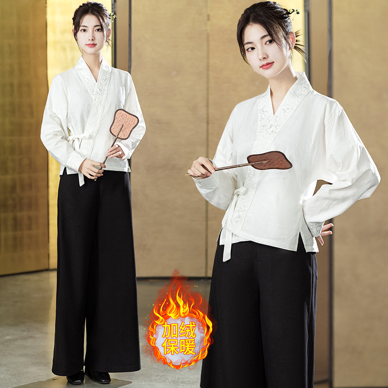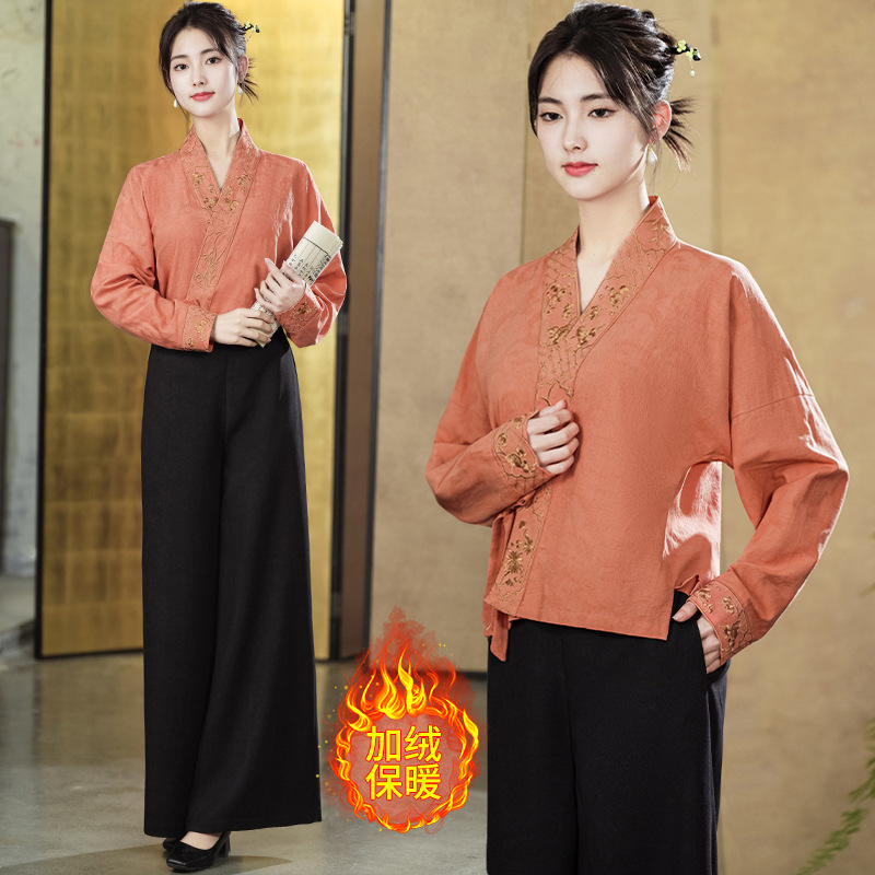 9673 реальный выстрел в наличии 2023 жаккард изысканная вышивка осень и зима Han элемент с перекрестным воротником на флисовой подкладке для женщин универсальное