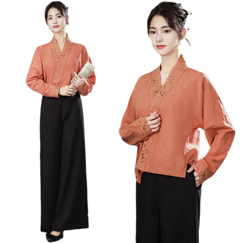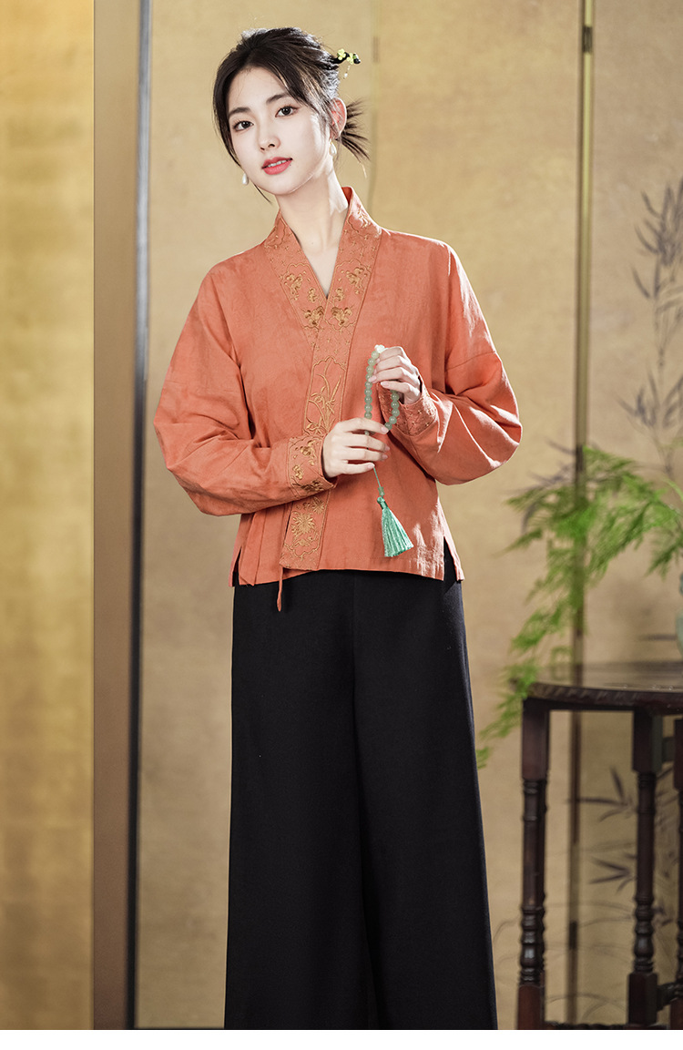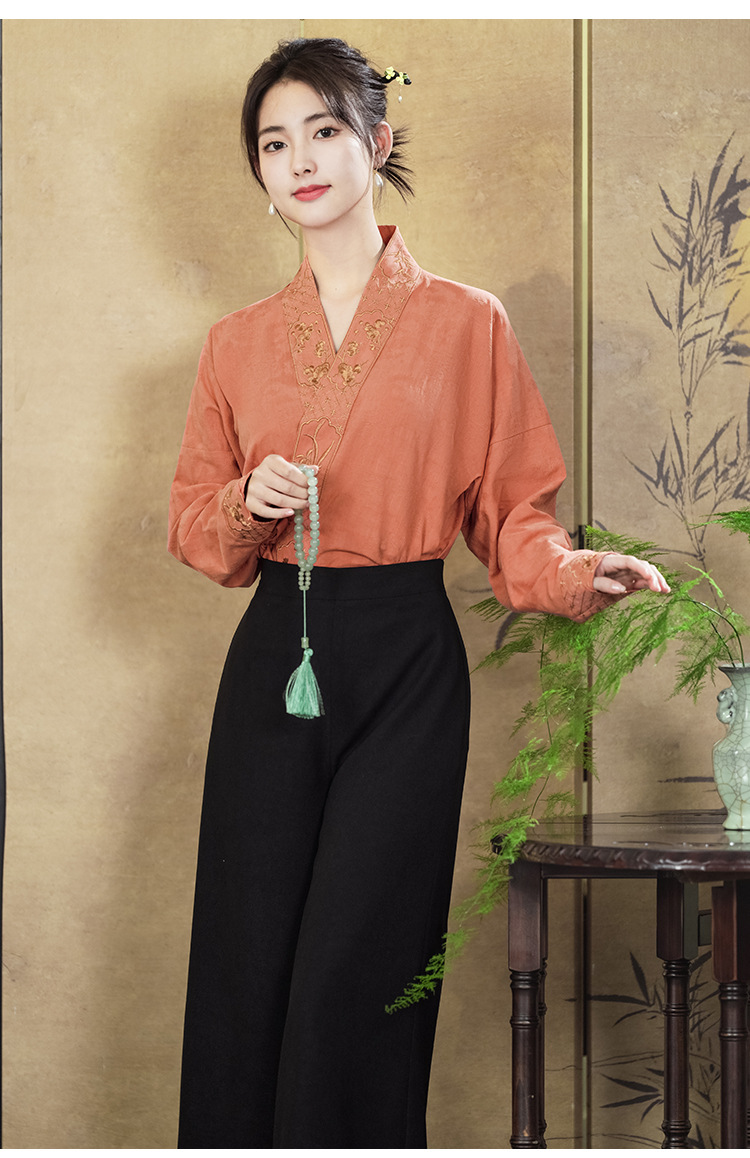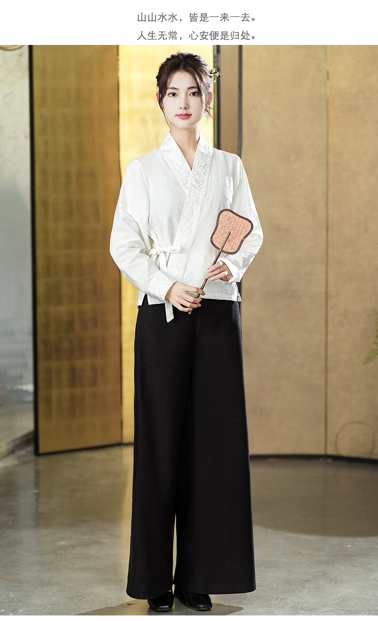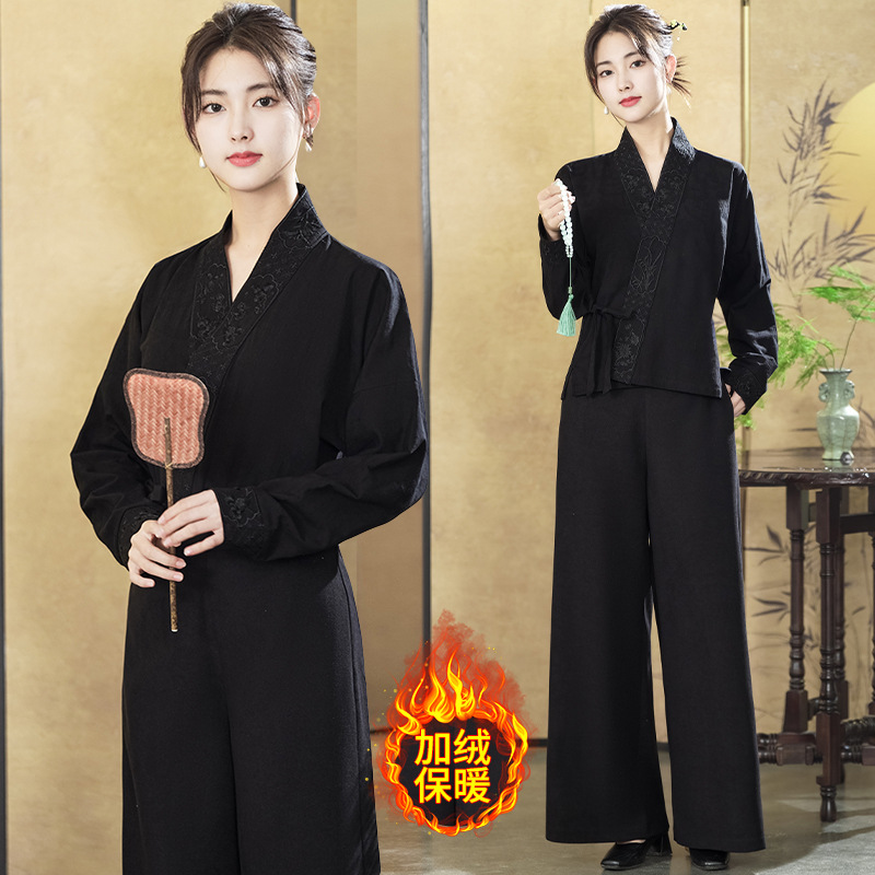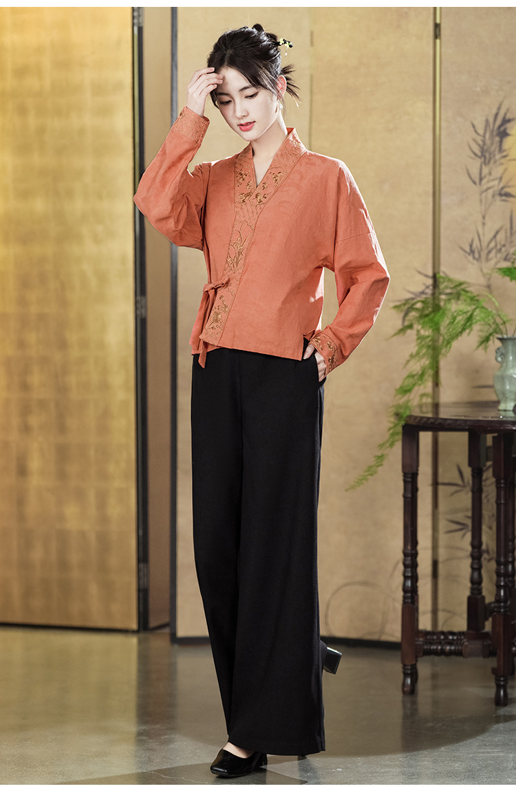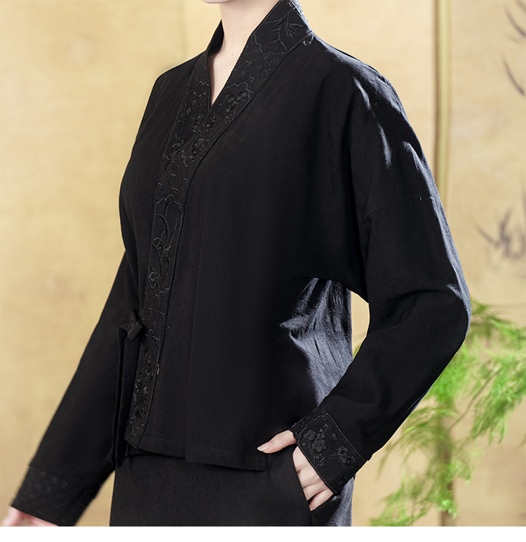 9673 реальный выстрел в наличии 2023 жаккард изысканная вышивка осень и зима Han элемент с перекрестным воротником на флисовой подкладке для женщин универсальное