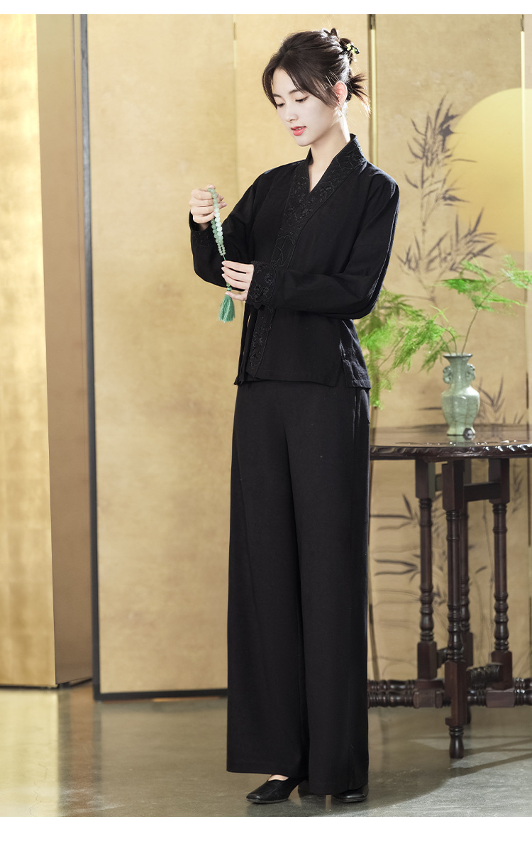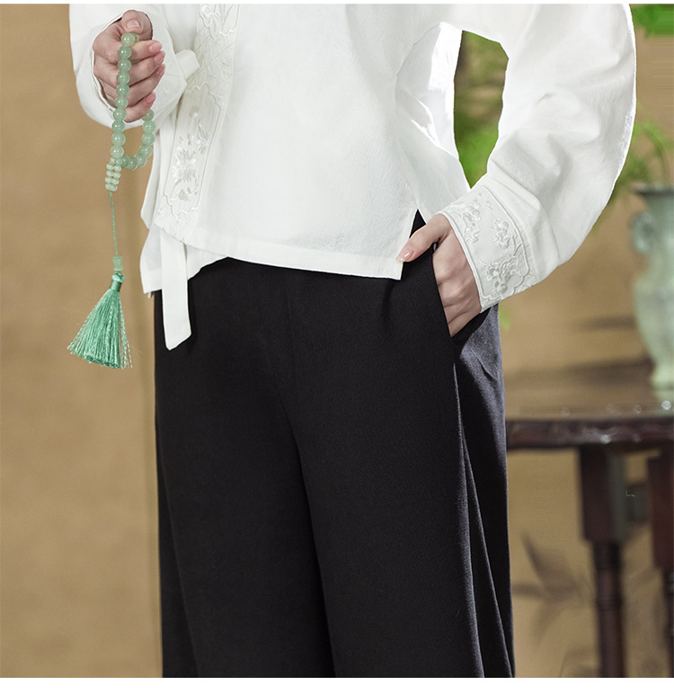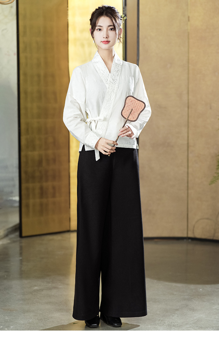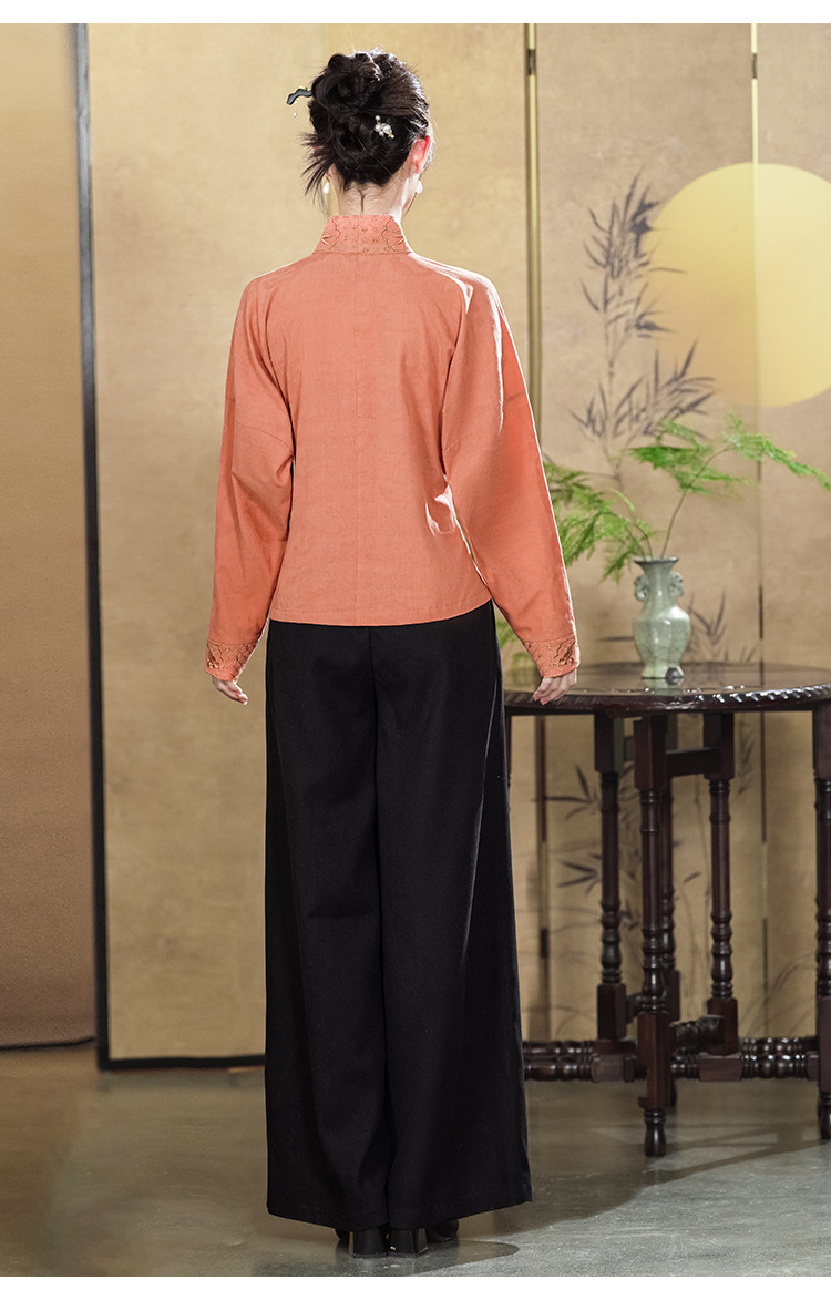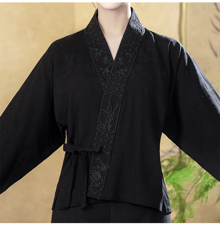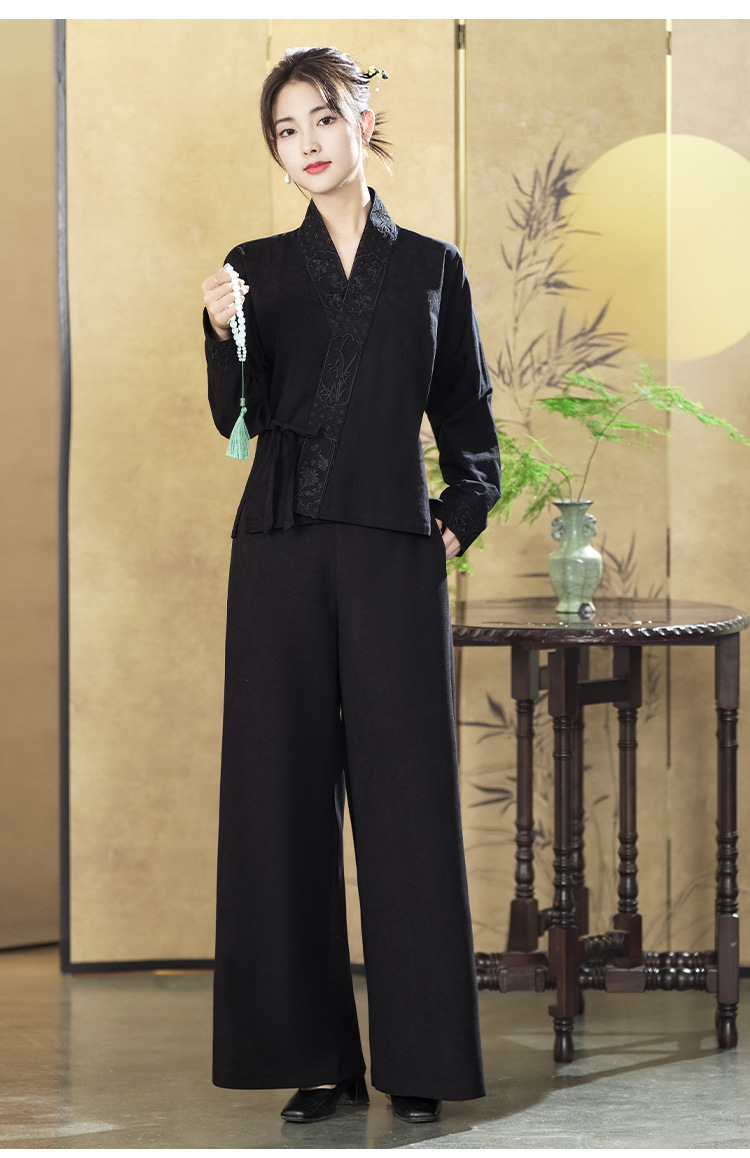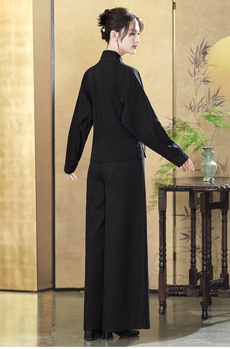 9673 реальный выстрел в наличии 2023 жаккард изысканная вышивка осень и зима Han элемент с перекрестным воротником на флисовой подкладке для женщин универсальное