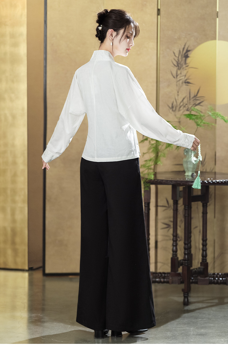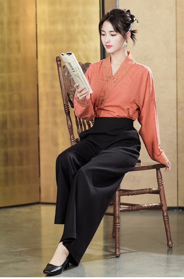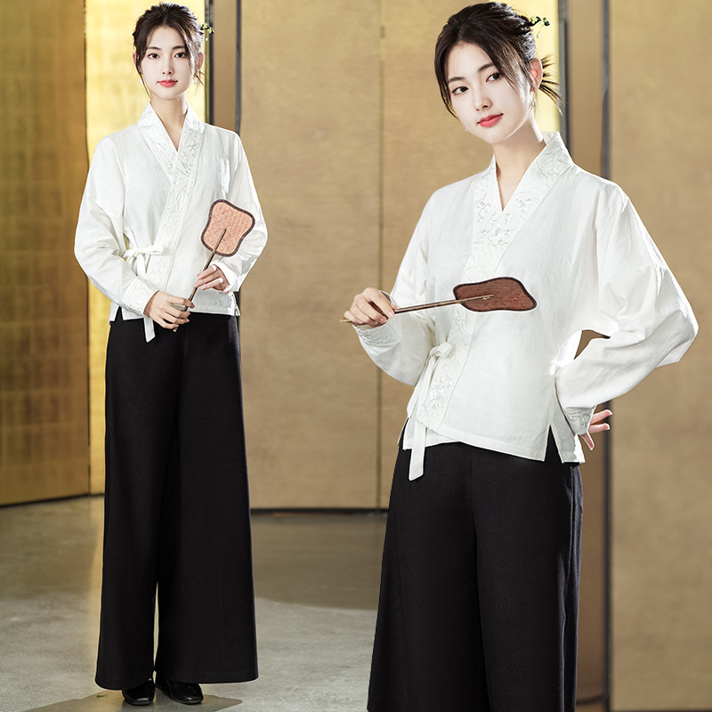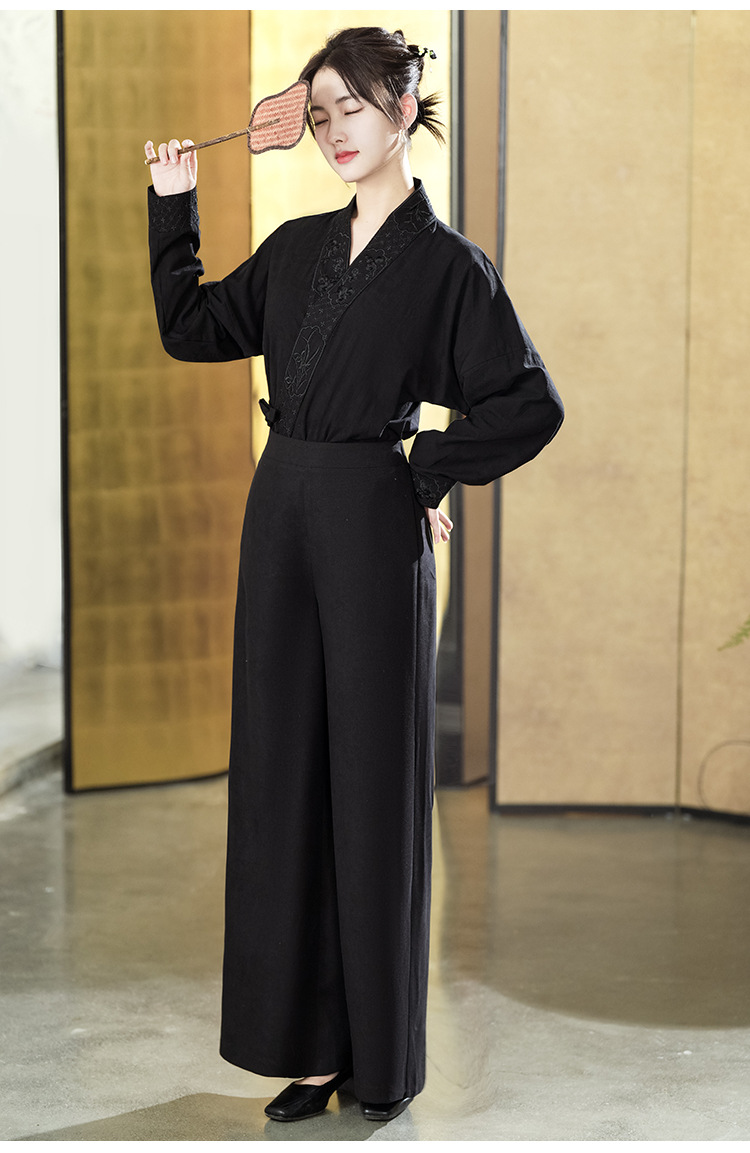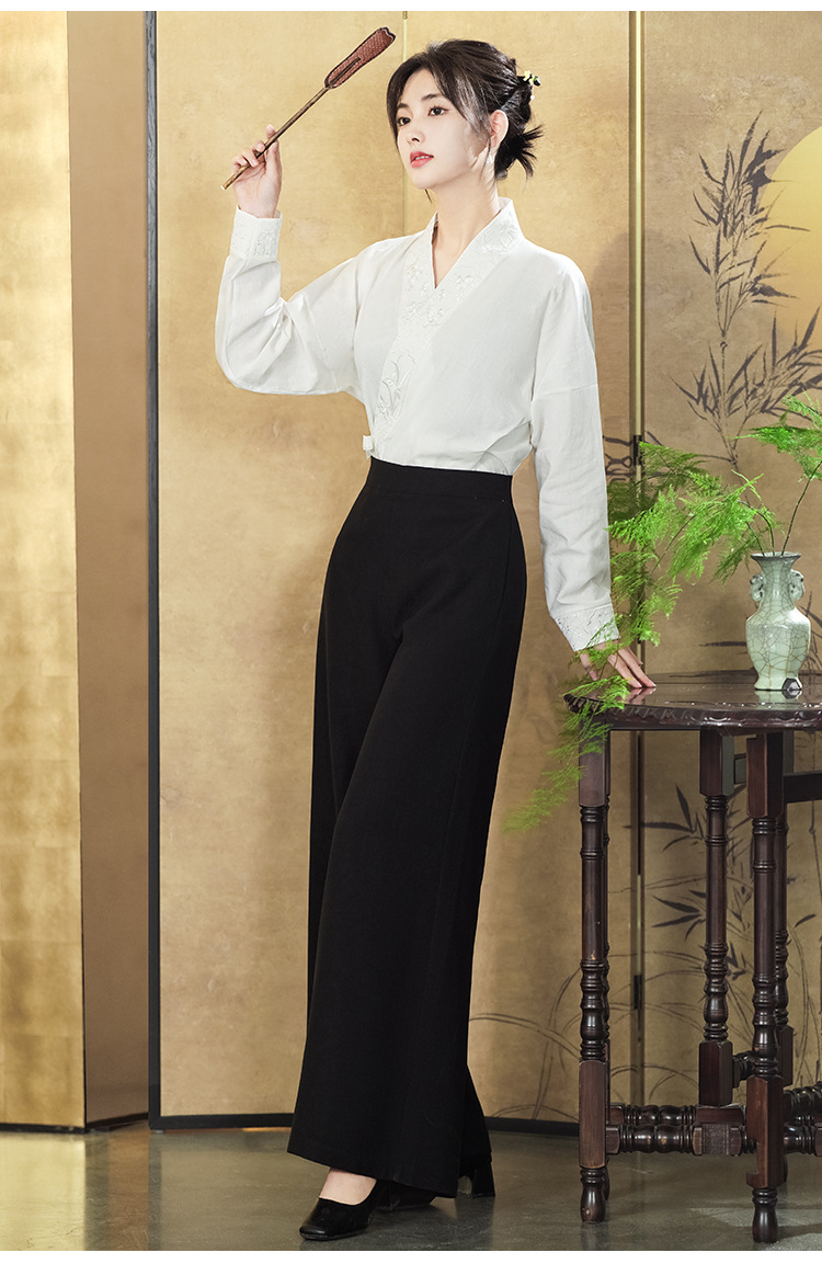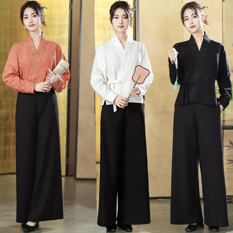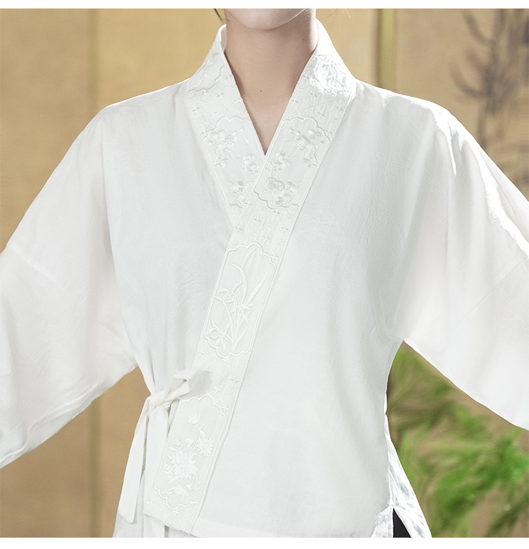 9673 реальный выстрел в наличии 2023 жаккард изысканная вышивка осень и зима Han элемент с перекрестным воротником на флисовой подкладке для женщин универсальное