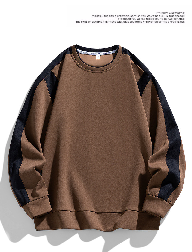 Футболка с длинным рукавом, мужской свитер, весна-осень, новый контрастный цвет, с круглым вырезом, мужская повседневная свободная нижняя рубашка в Корейском стиле