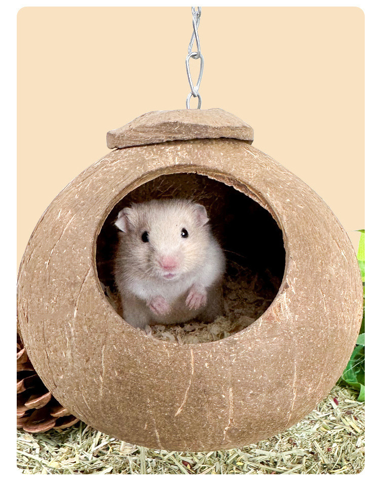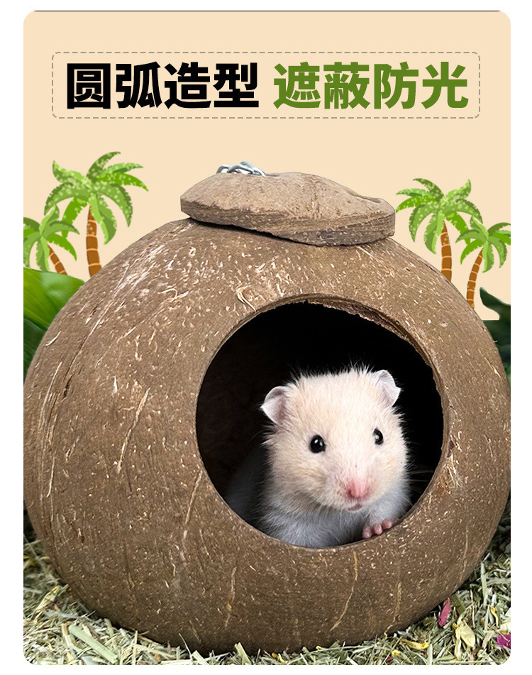 Гнездо из скорлупы кокосового ореха хомяк летний охлаждающий кокосовый пейзаж поставки Золотой медведь дом Вилла Цветочная ветка мышиное гнездо