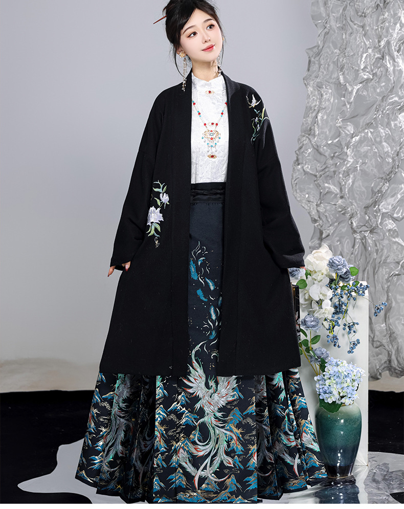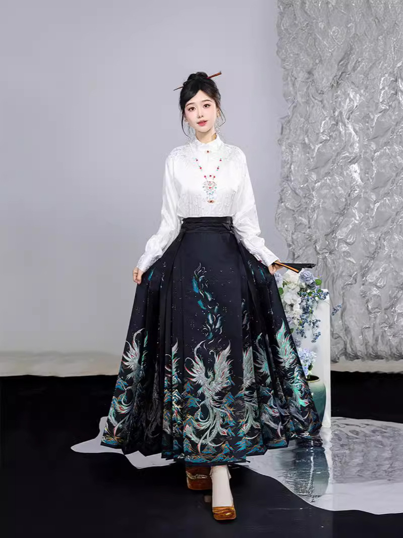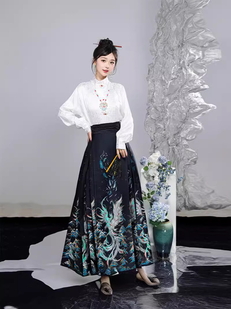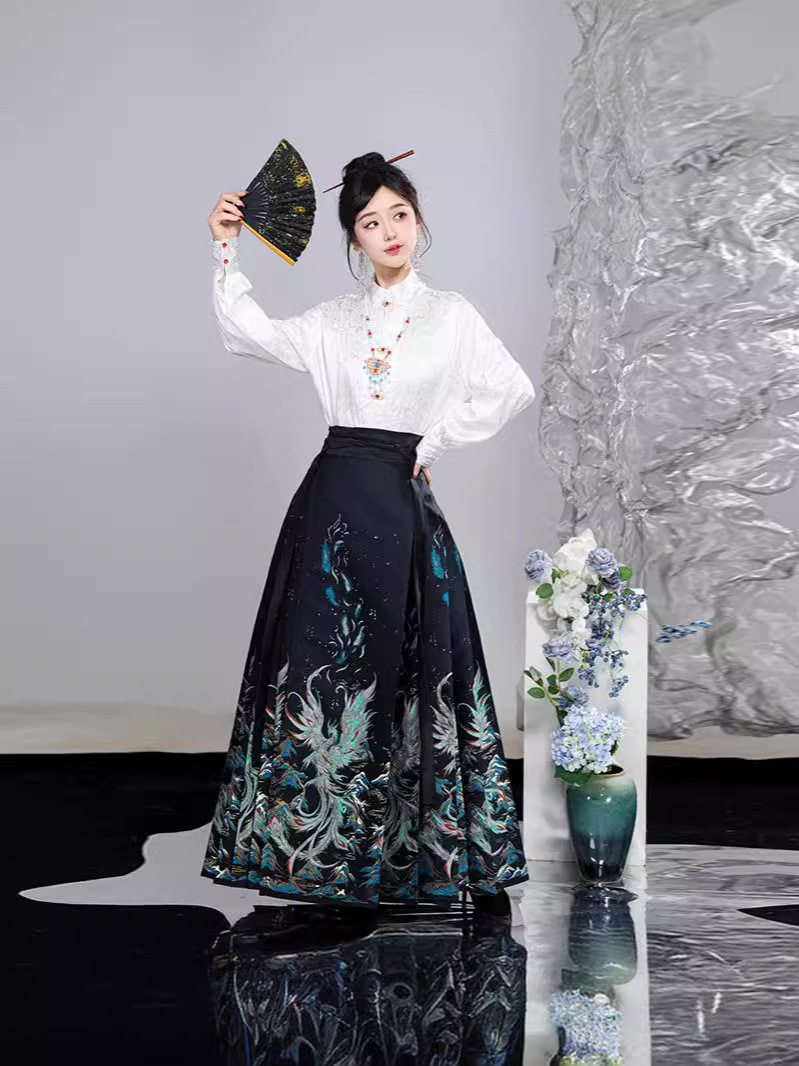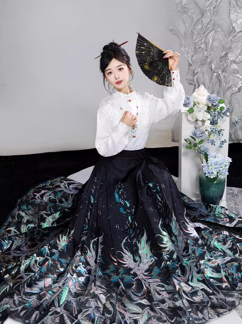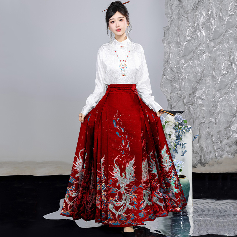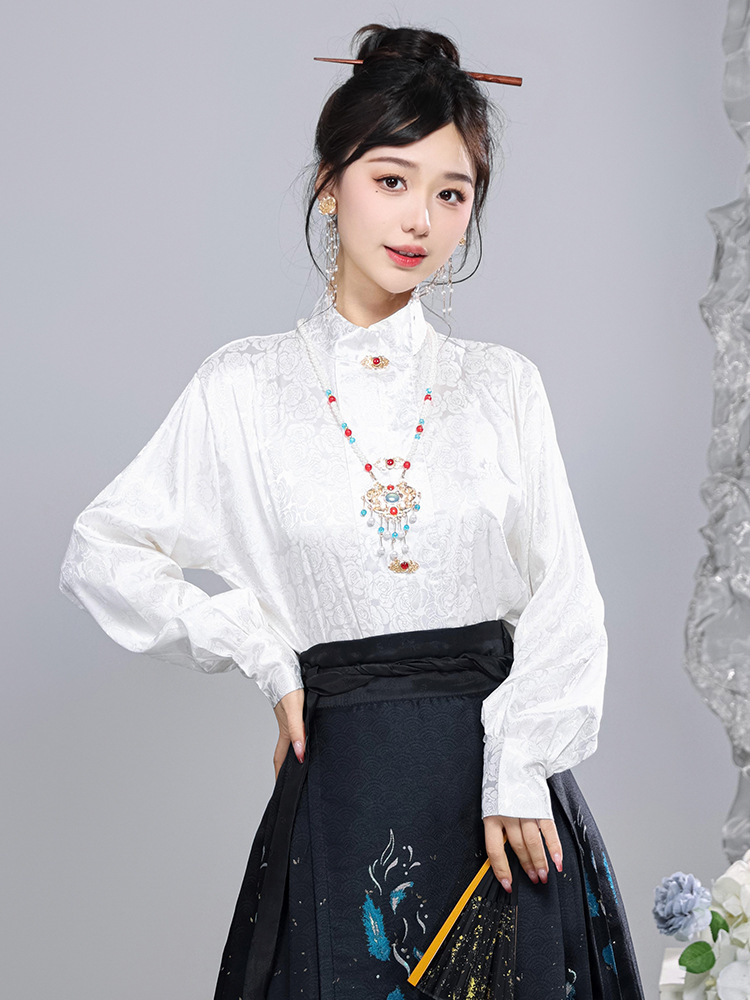 Оригинальная рубашка с полуводолазкой династии Мин династии Хань, топ, имитация макияжа, цветок, юбка с лицом лошади, костюм 2023, новый стиль
