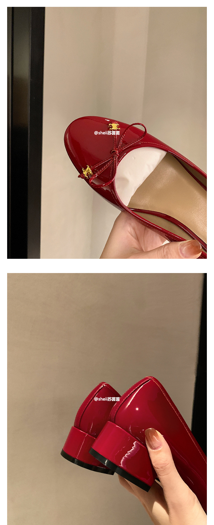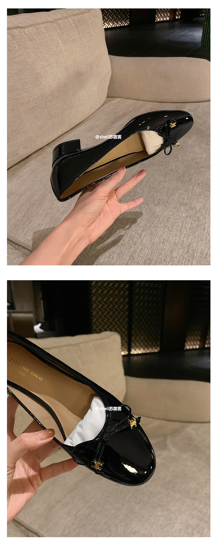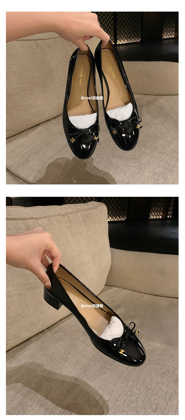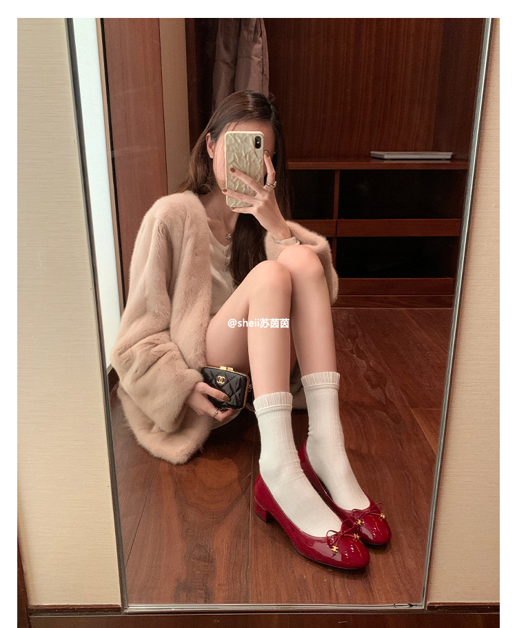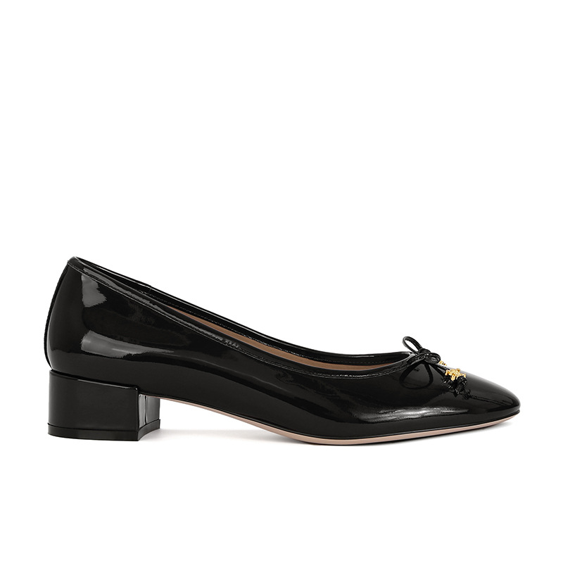[Sheii Su Yinyin] Полуночная Коктейльная Вечеринка ~ Триумфальная Арка с маленькой золотой пряжкой и бантом, однослойная обувь на массивном каблуке, Женская пригородная обувь
