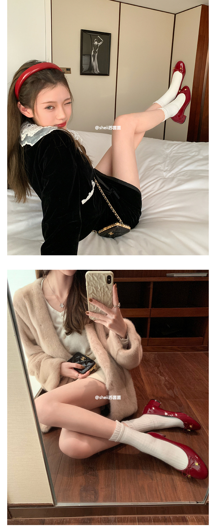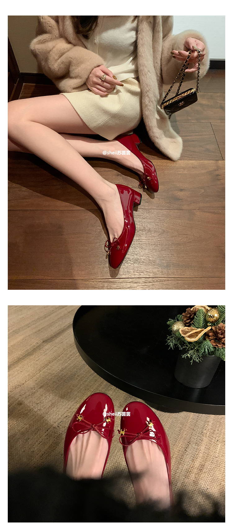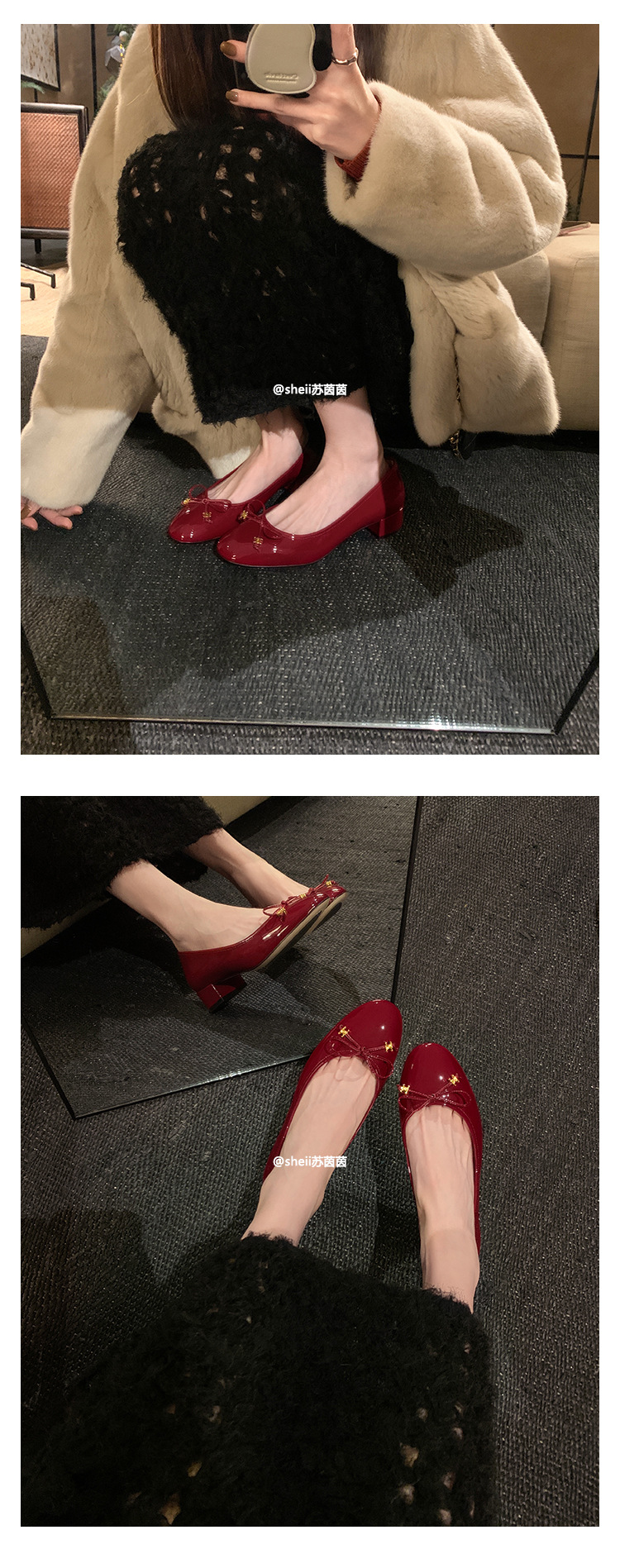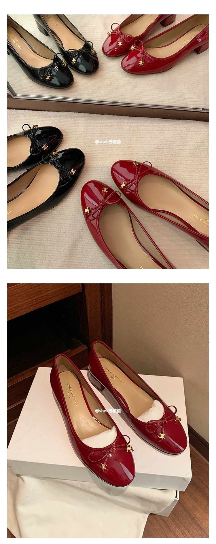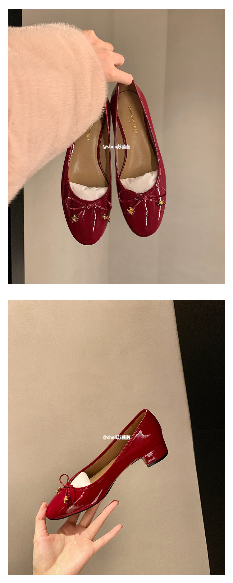 [Sheii Su Yinyin] Полуночная Коктейльная Вечеринка ~ Триумфальная Арка с маленькой золотой пряжкой и бантом, однослойная обувь на массивном каблуке, Женская пригородная обувь