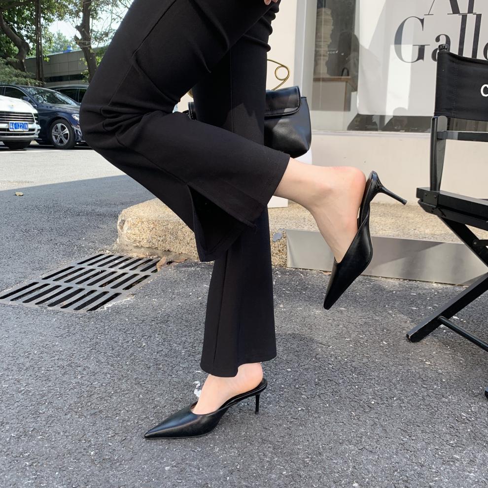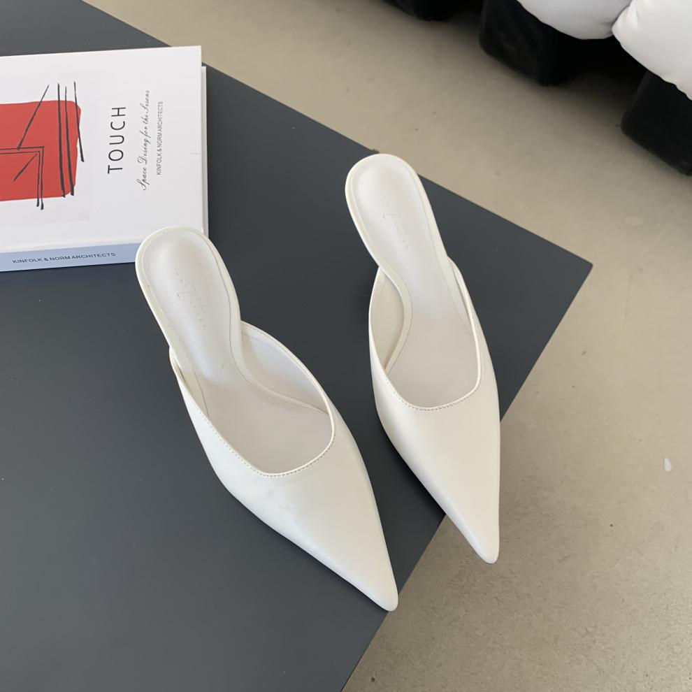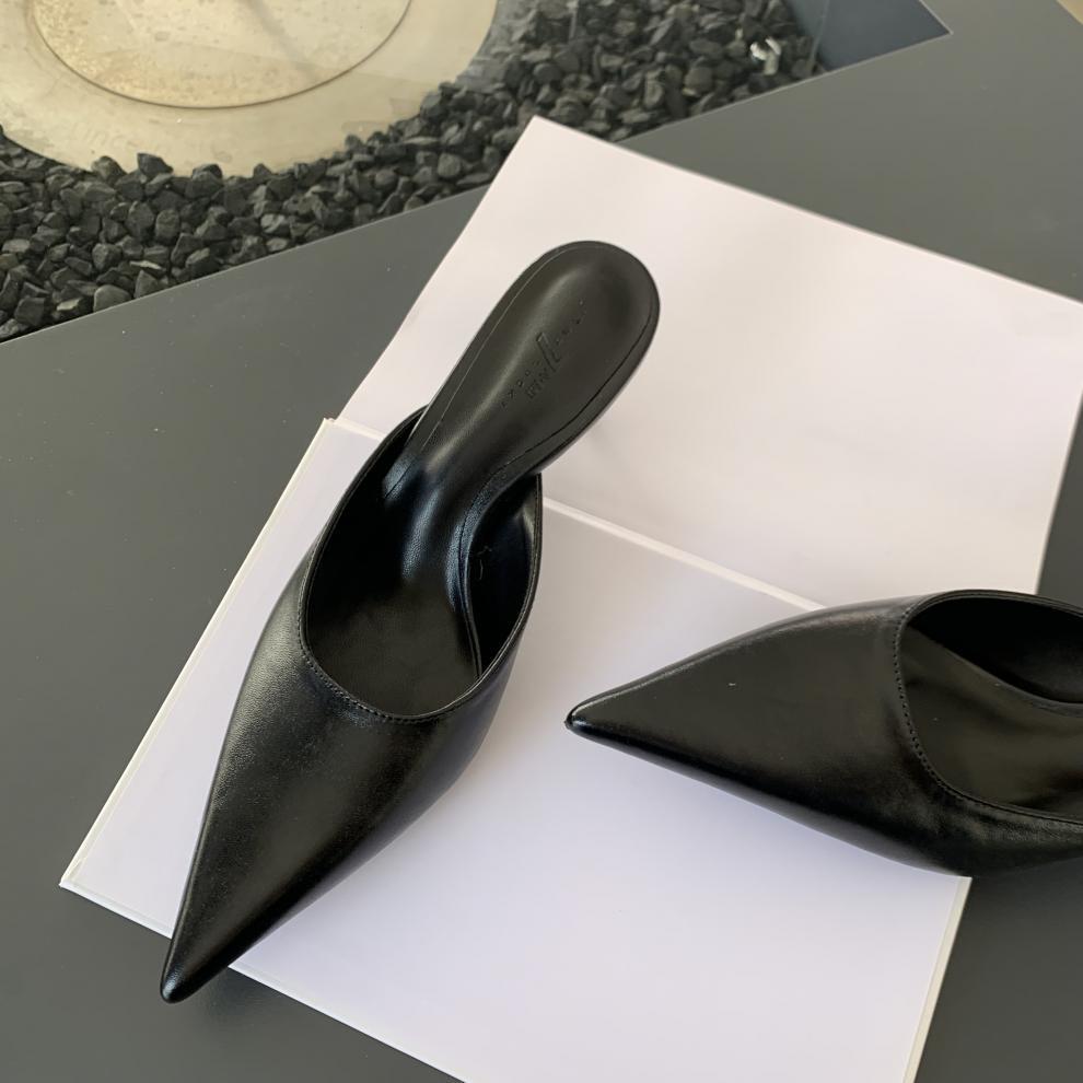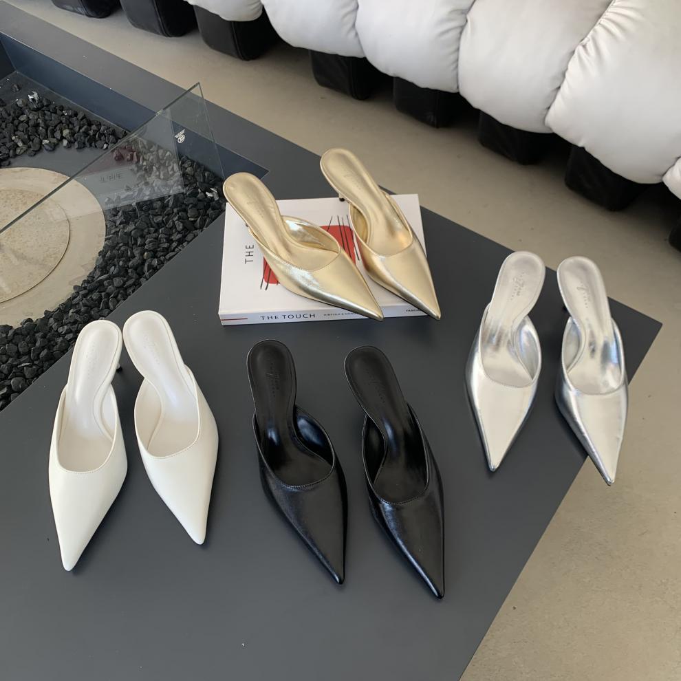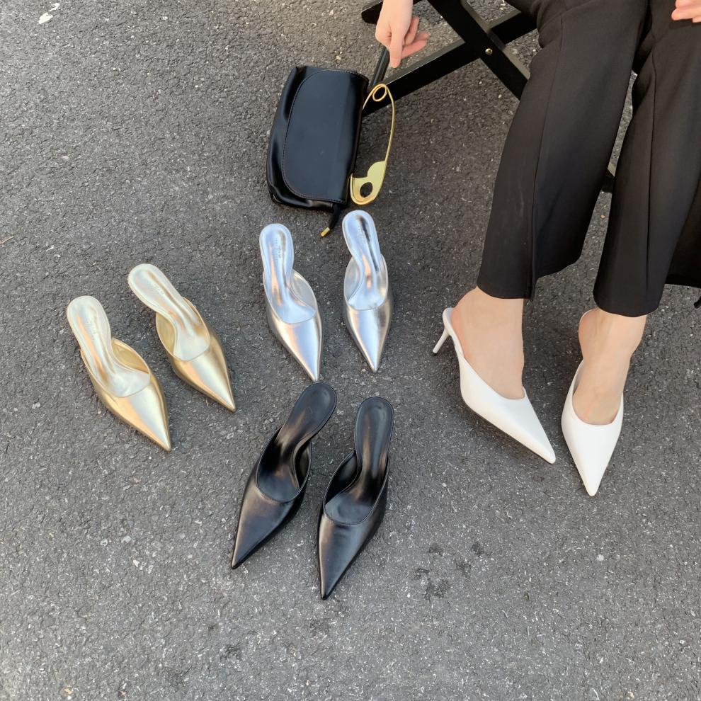 2023 весна и лето, новый стиль, модная европейская и американская обувь на шпильке с острым носком, босоножки Baotou с полыми спинками, полутапочки на шпильке для женщин