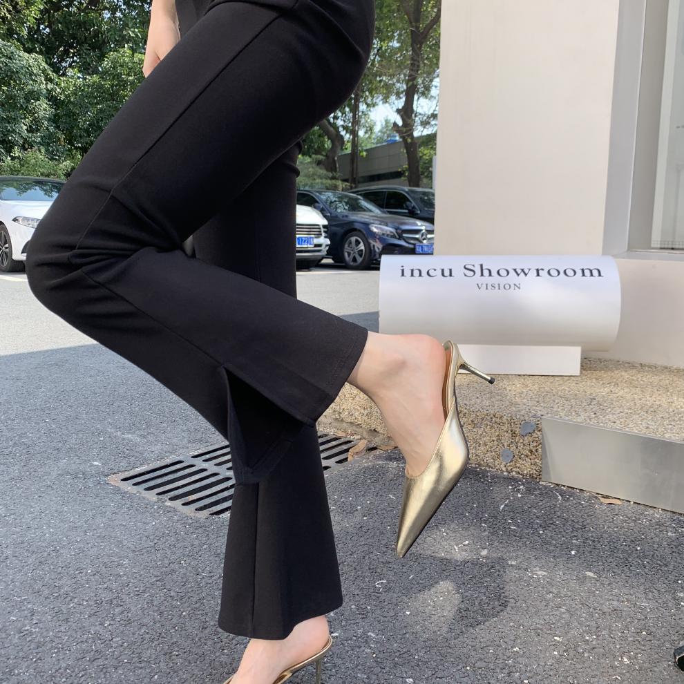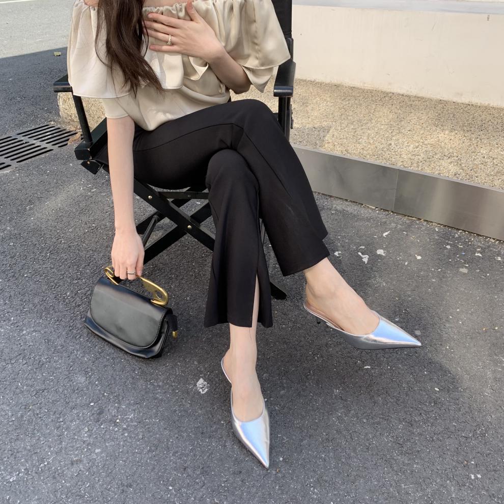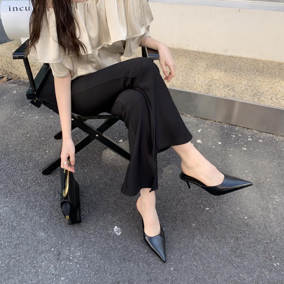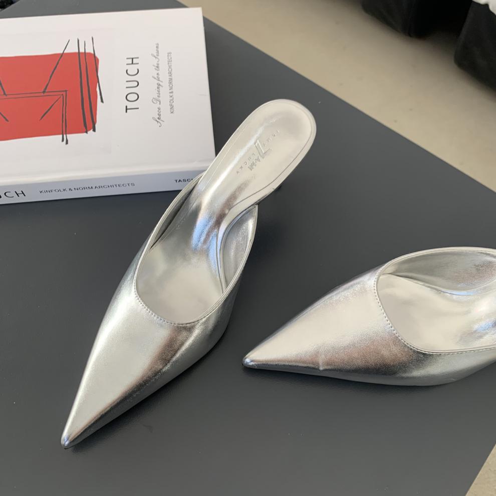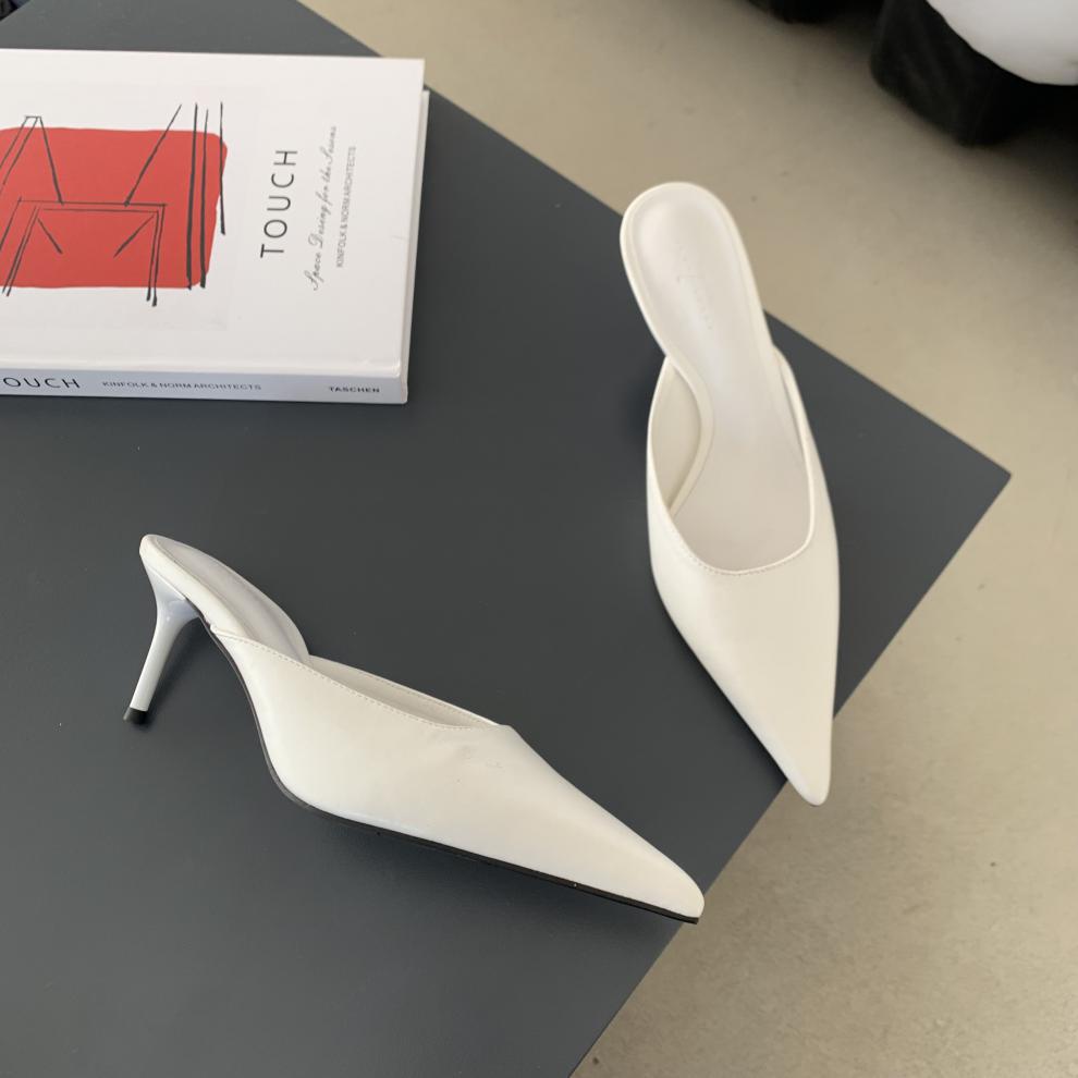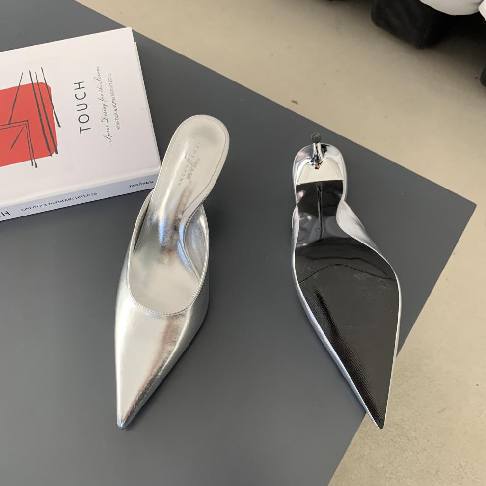 2023 весна и лето, новый стиль, модная европейская и американская обувь на шпильке с острым носком, босоножки Baotou с полыми спинками, полутапочки на шпильке для женщин