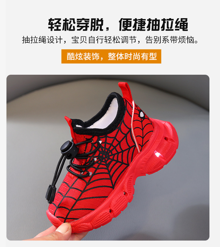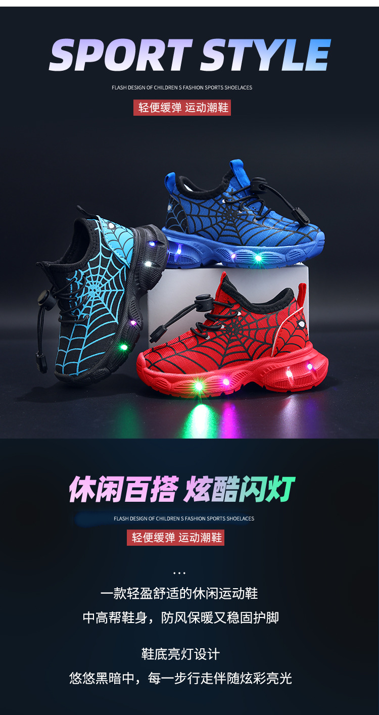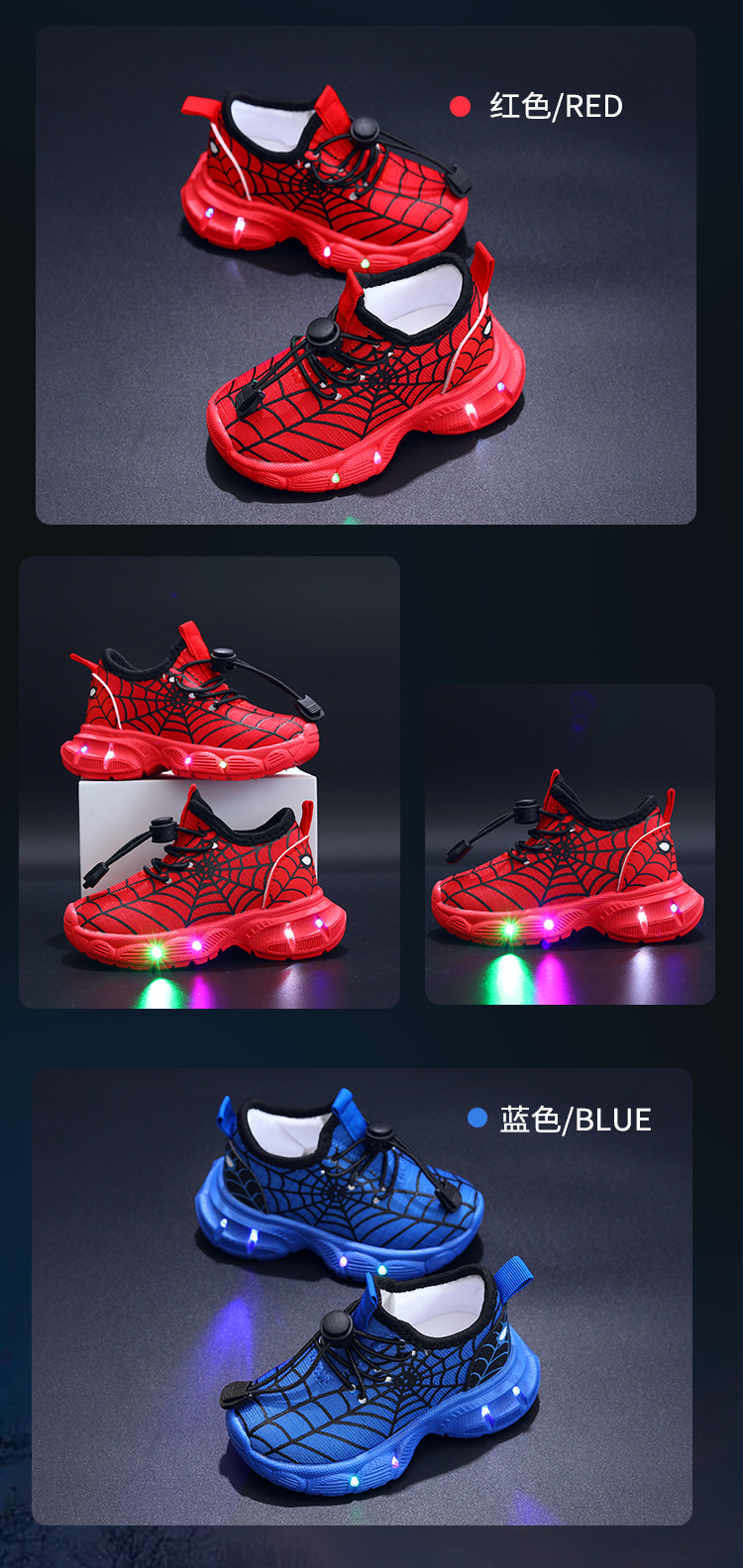 Весной и осенью новые детские кроссовки Spider-Man LED светящаяся детская обувь От 1 до 6 лет Спортивная повседневная обувь для мальчиков