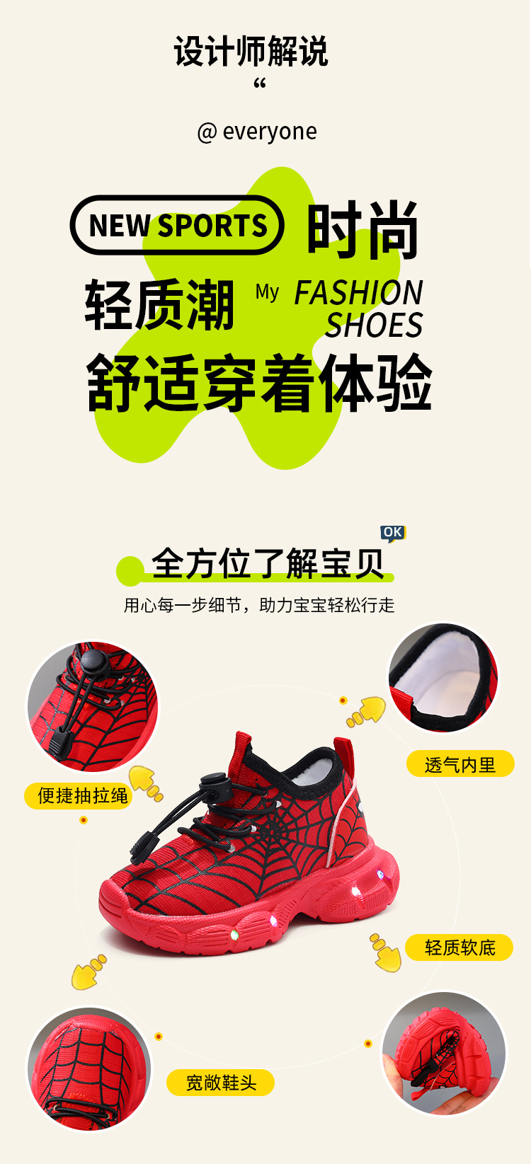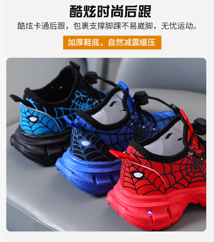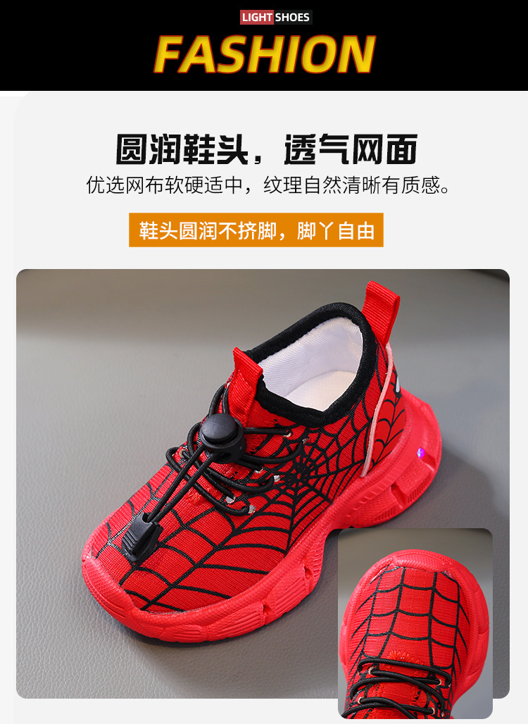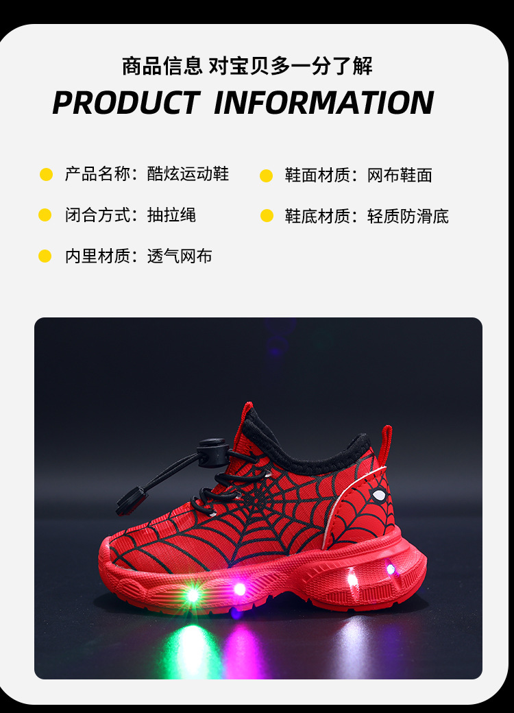 Весной и осенью новые детские кроссовки Spider-Man LED светящаяся детская обувь От 1 до 6 лет Спортивная повседневная обувь для мальчиков