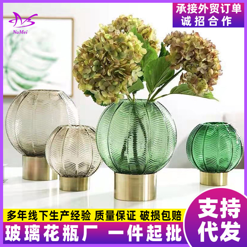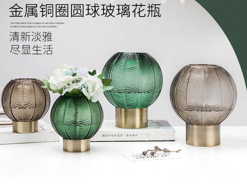 Внешняя торговля медное кольцо в европейском стиле стеклянная ваза круглое сферическое украшение креативная гостиная Цветочная композиция текстура модель украшения комнаты оптом