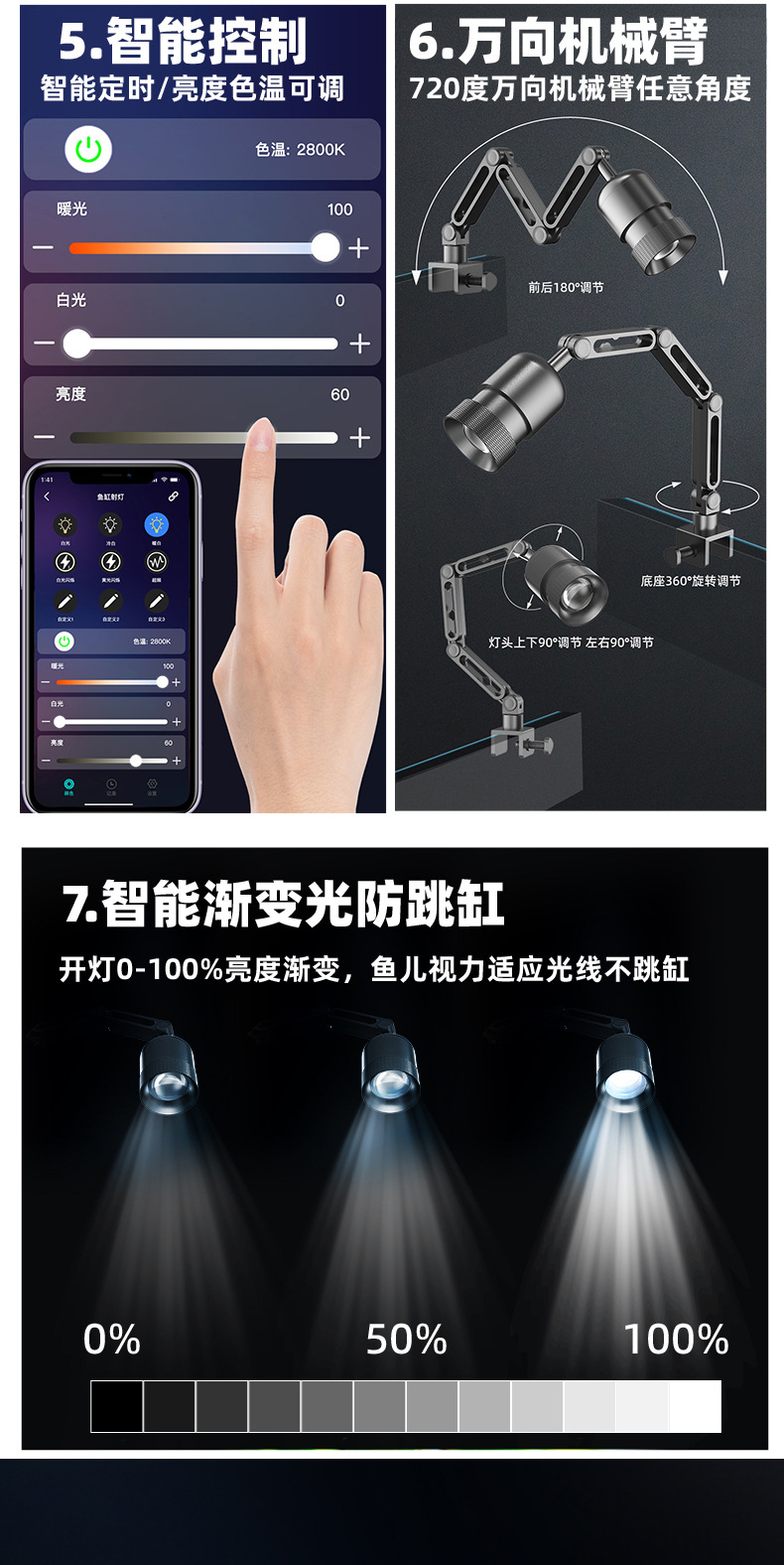 Умный южноамериканский аквариум прожекторы светодиодные светильники затемненные зум водяной травяной светильник мобильный телефон время освещения декоративный маленький прожекторы