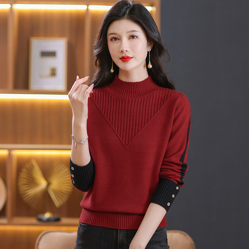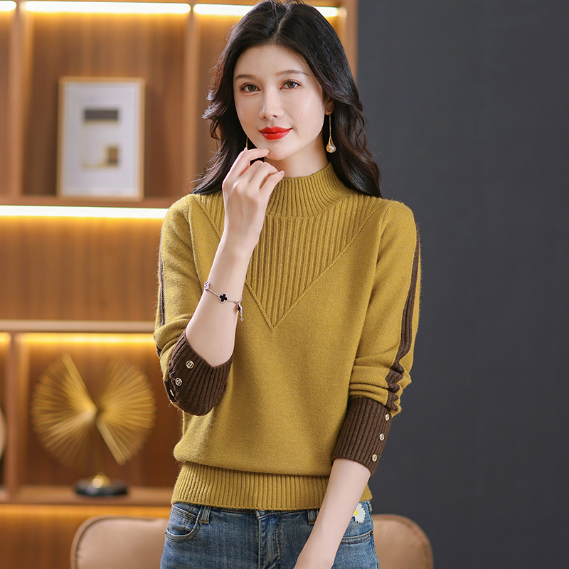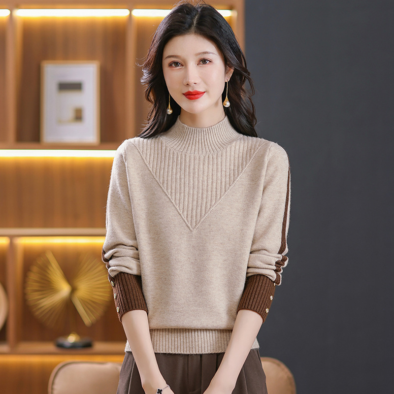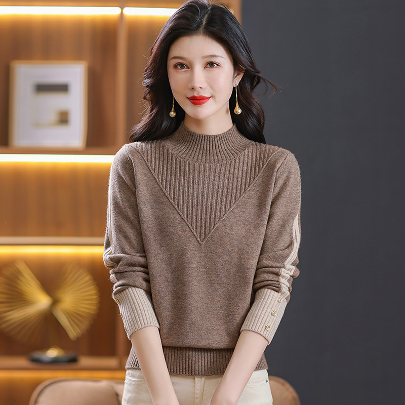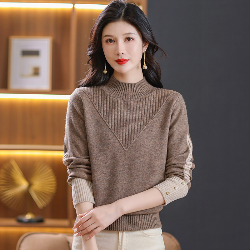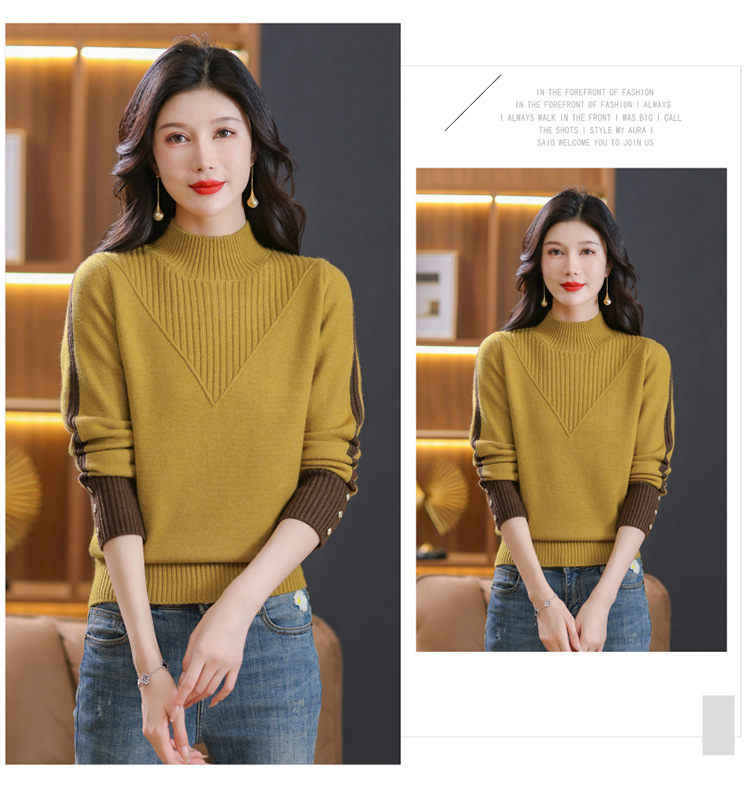 Осенне-Зимний новый жаккардовый свитер, Женская водолазка, утолщенная шерстяная нижняя рубашка, Свободный пуловер, свитер с длинным рукавом