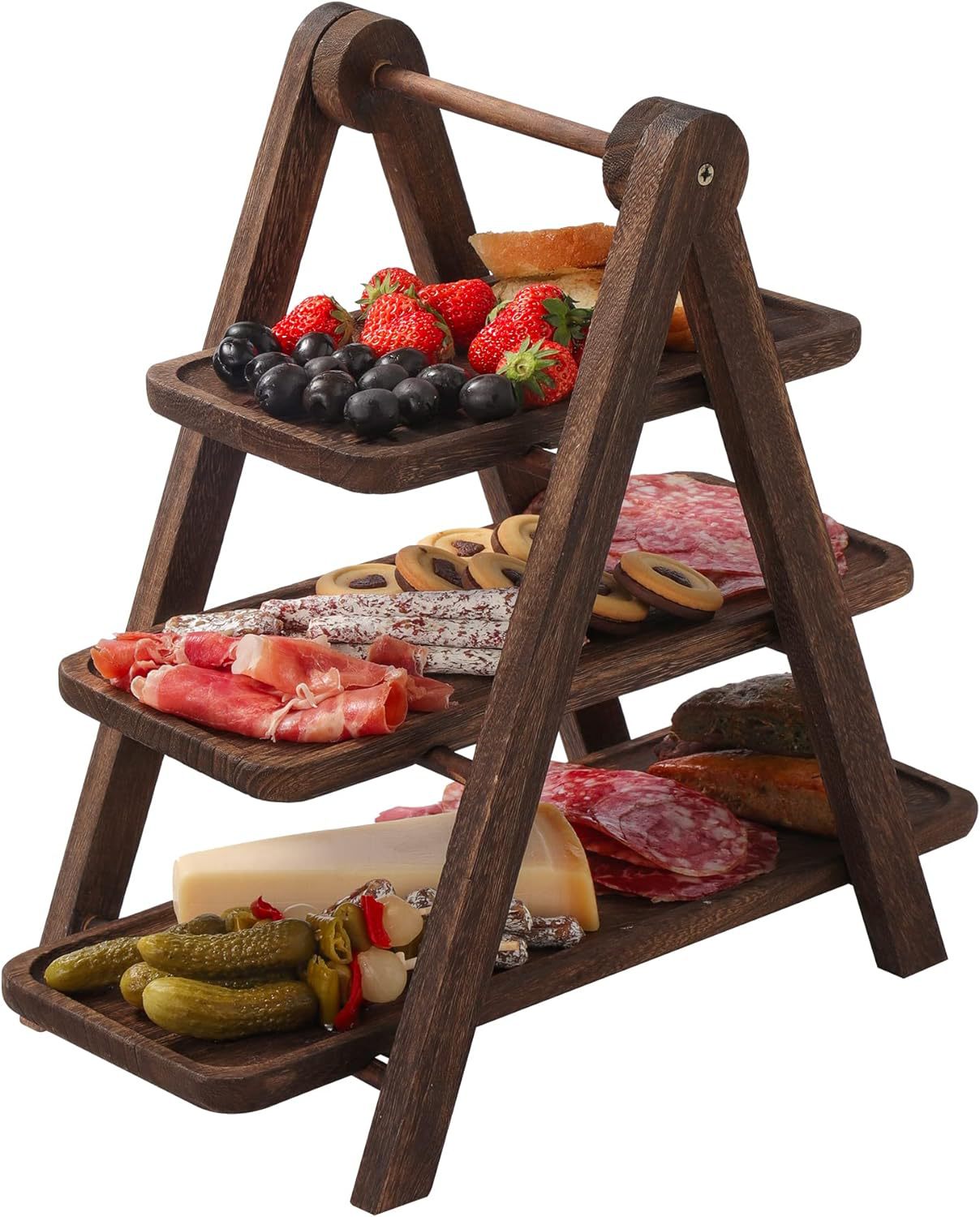 Поднос Paulownia трехслойная кухонная полка для еды горячий горшок ресторан отель стеллаж для хранения десерта трехслойный поднос