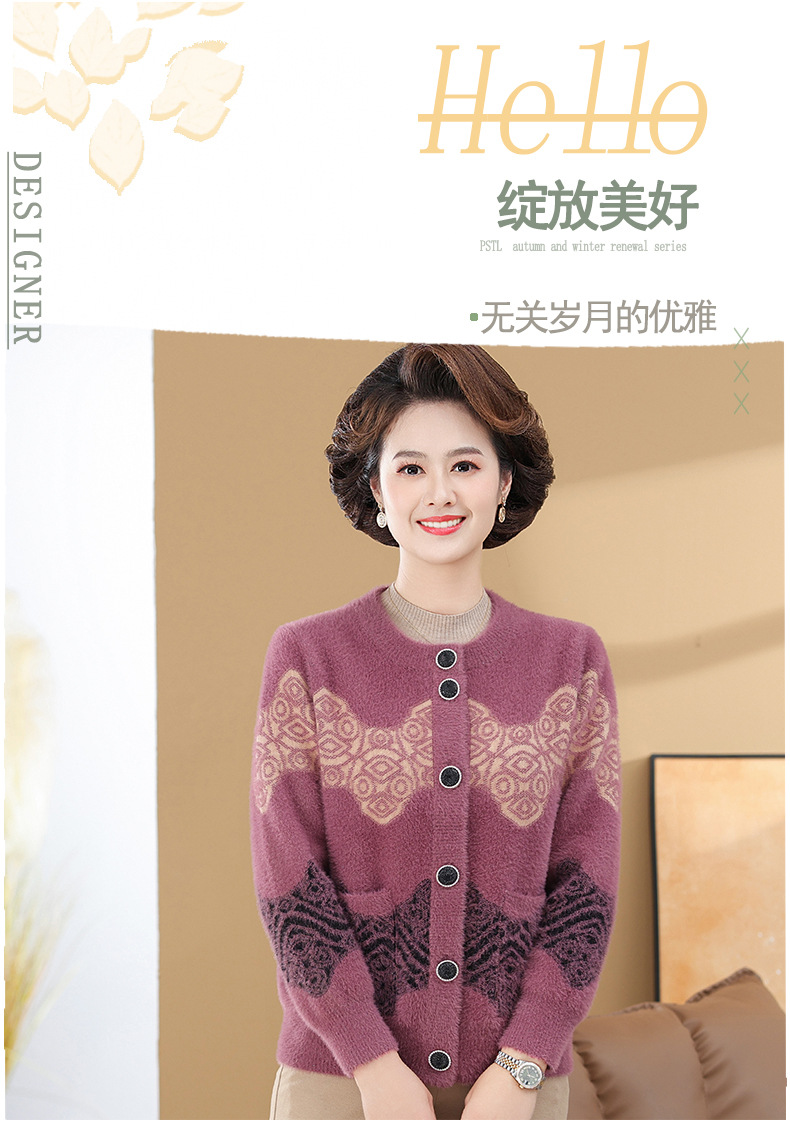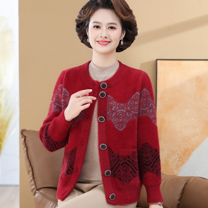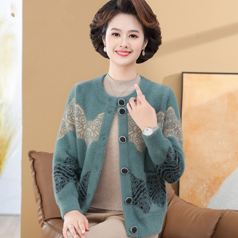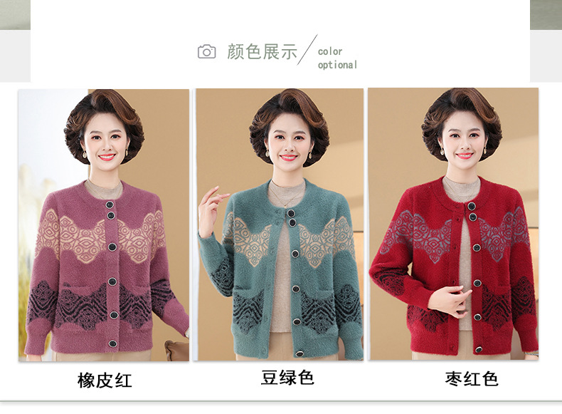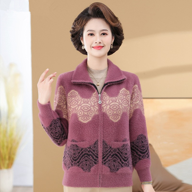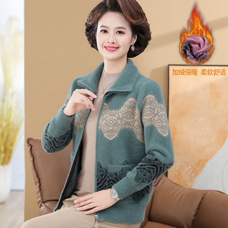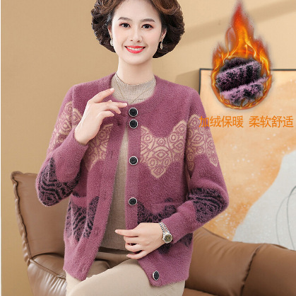Осенне-зимнее Норковое флисовое пальто для женщин среднего и пожилого возраста, утолщенный вязаный кардиган с лацканами для мамы для бабушки