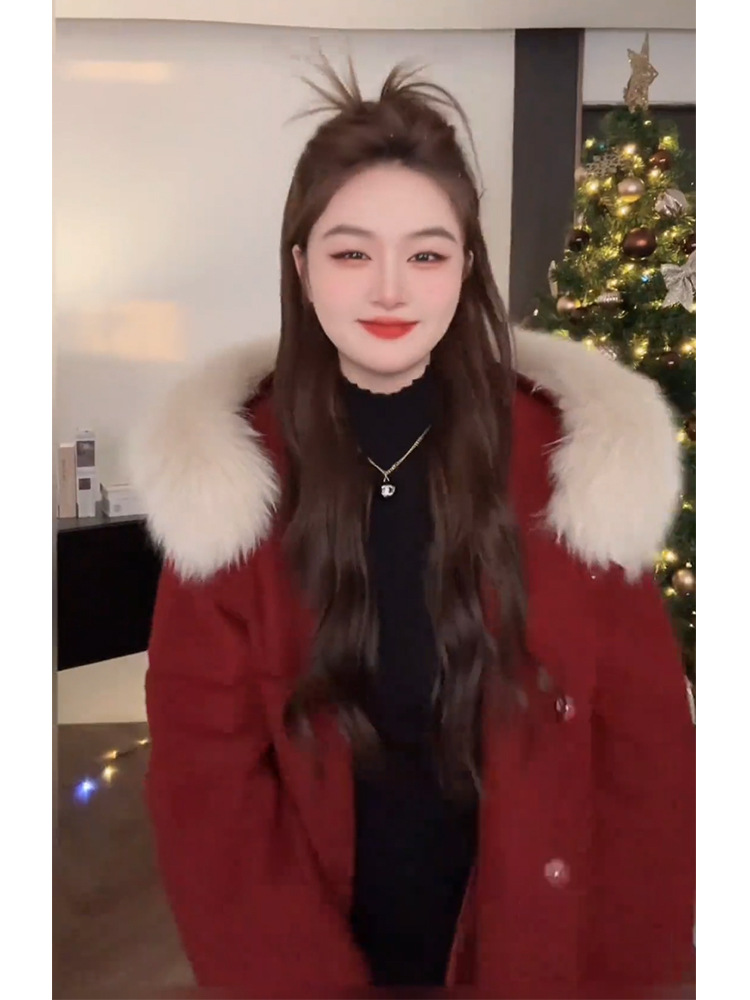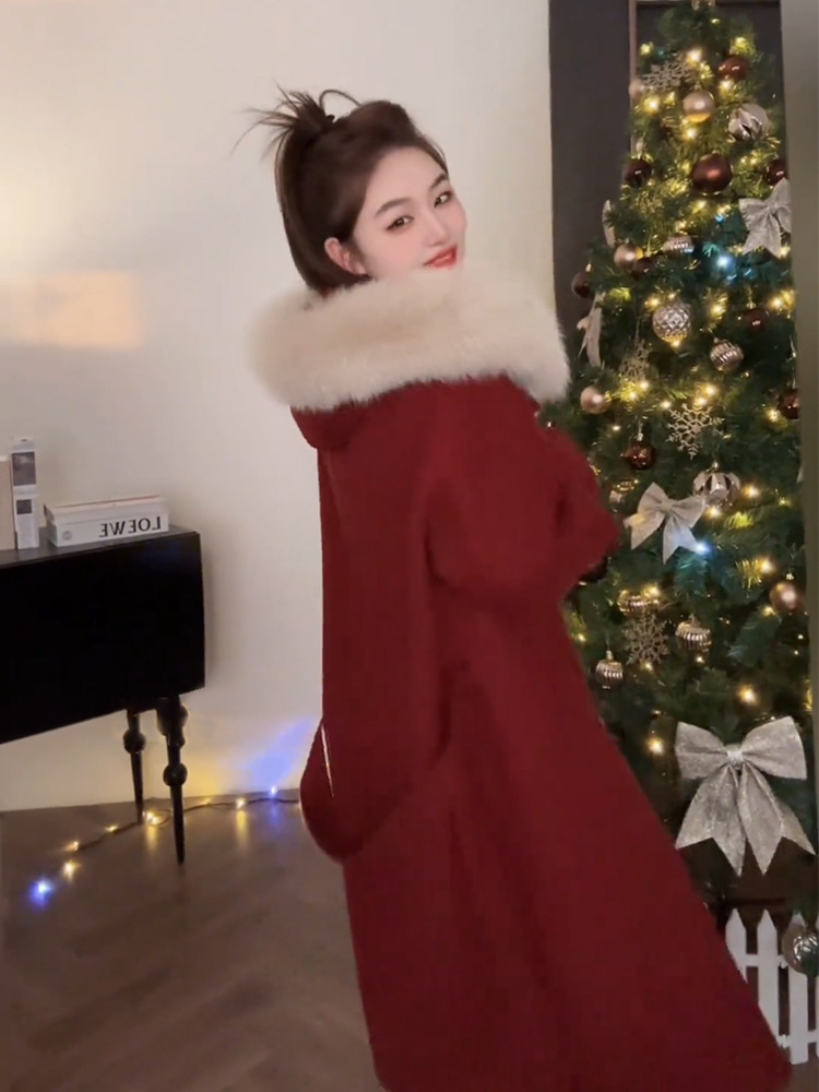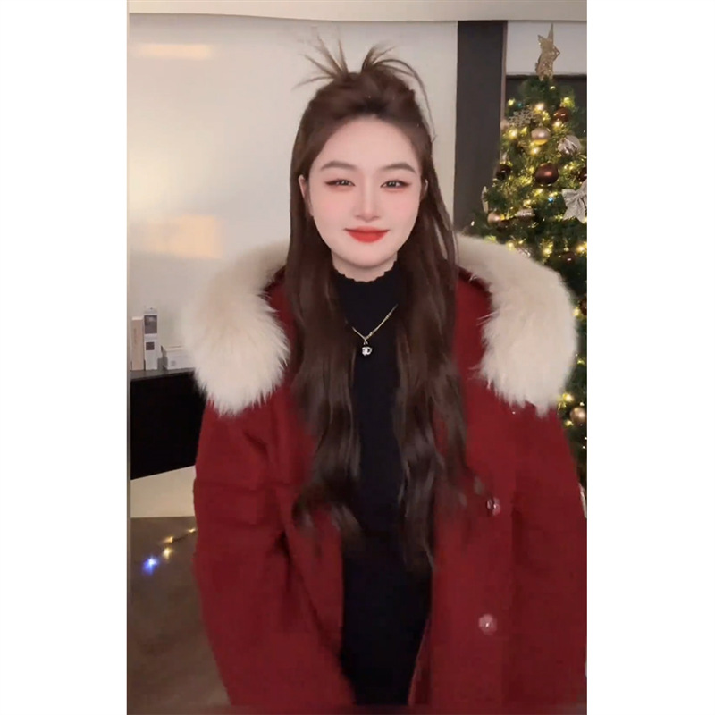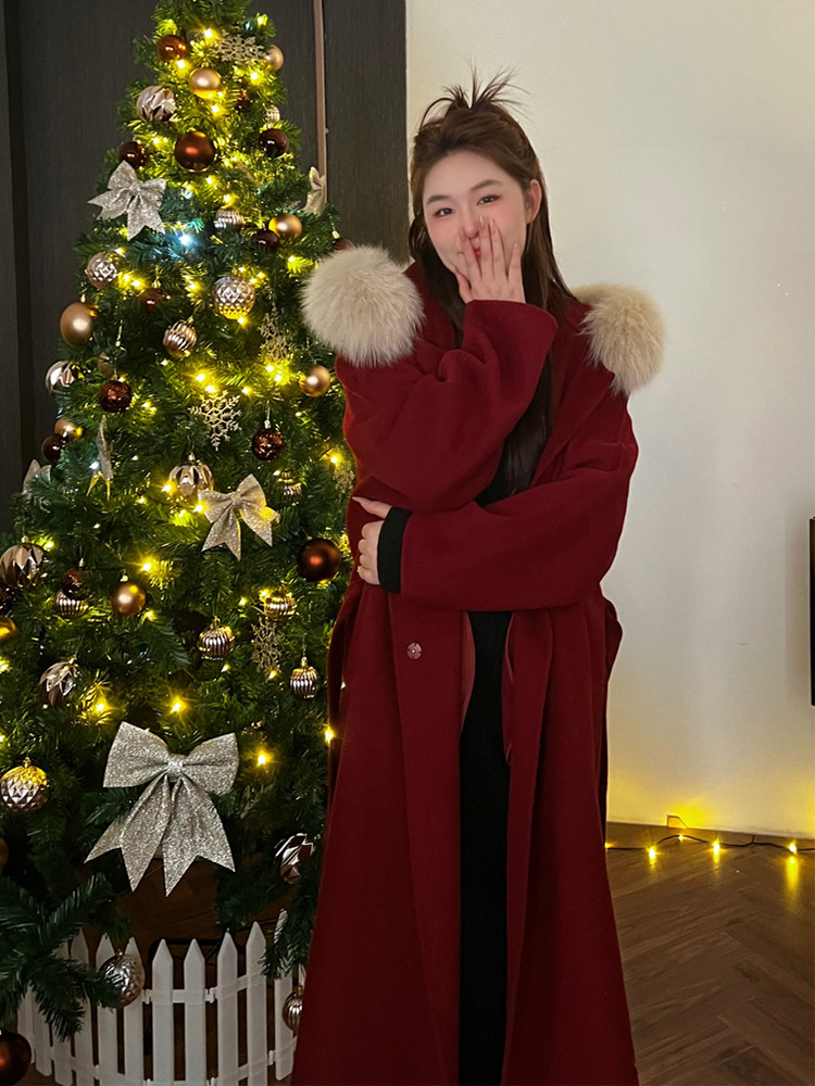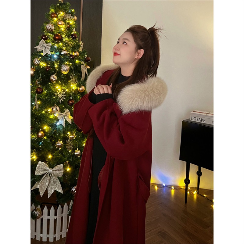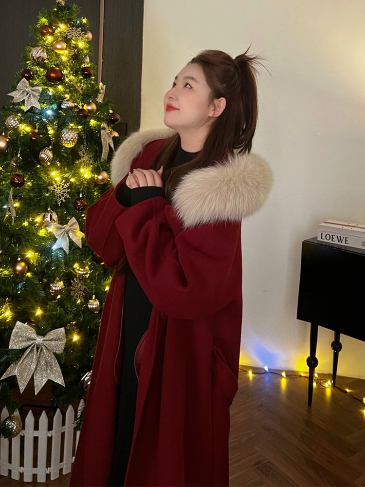 YT273438 высококачественное супер хорошее красное двустороннее кашемировое шерстяное пальто для женщин осень и зима Новый год