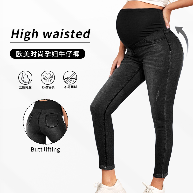 Европейские и американские джинсы для беременных на осень и зиму, с высокой талией, подтягивающие бедра, эластичные, популярные брюки для беременных с Amazon, одежда для беременных.