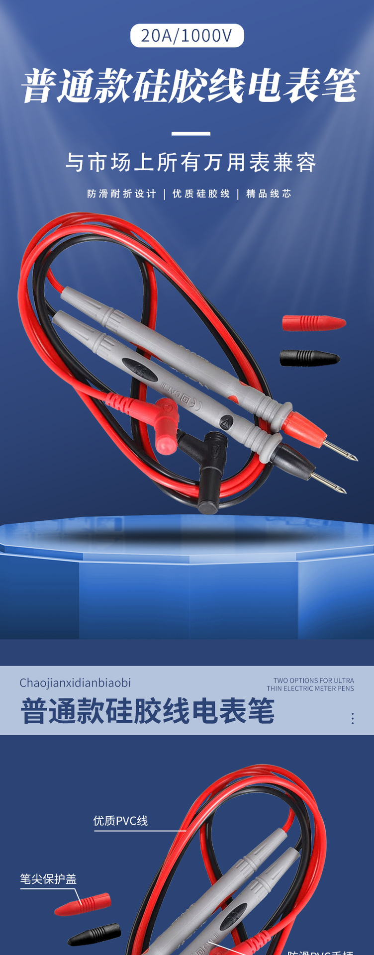 Силиконовые измерительные провода 20А 1000В, универсальные, с заостренным концом, для цифрового мультиметра, высококачественные силиконовые тестеры, кабель для тестирования