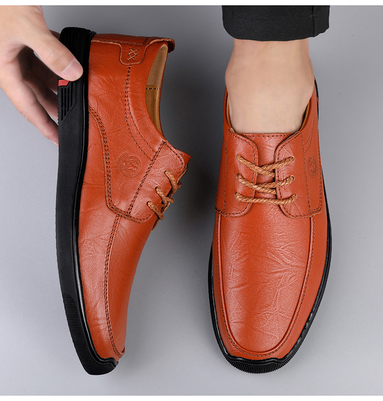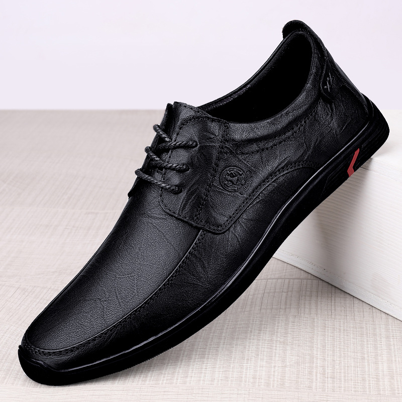Классические популярные повседневные туфли из воловьей кожи, новые мужские лоферы с мягкой подошвой из мягкой кожи на шнуровке, мужские кожаные туфли на толстой подошве