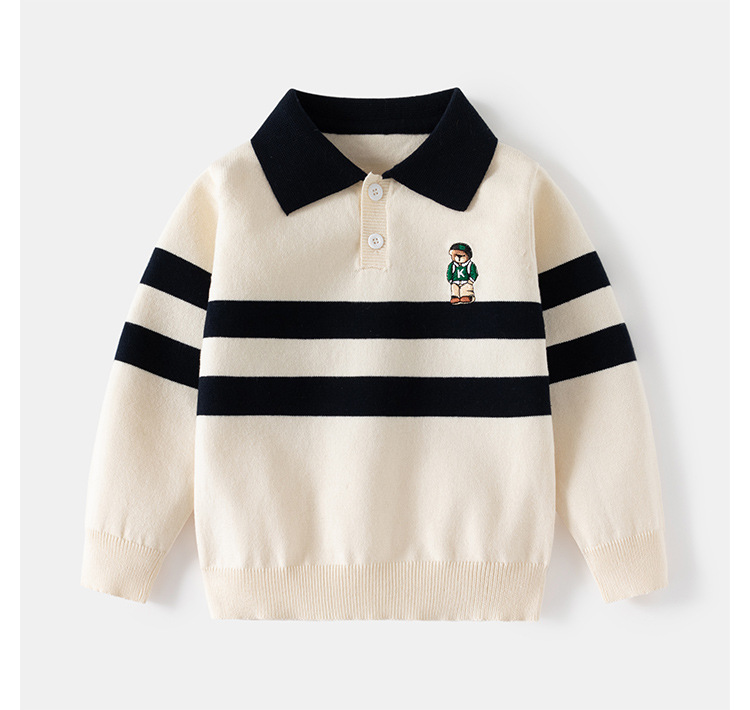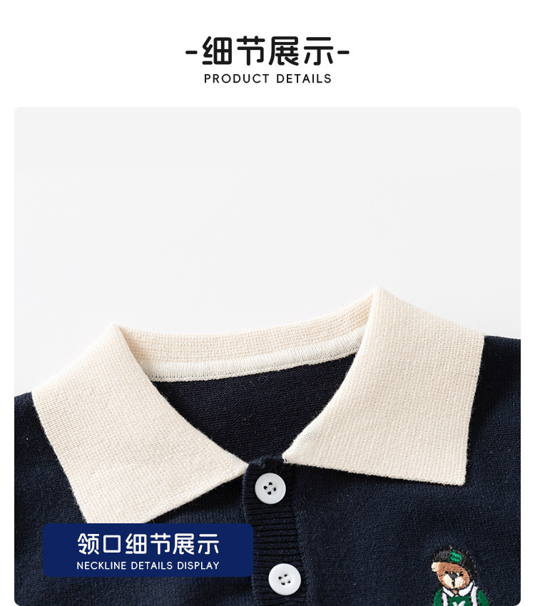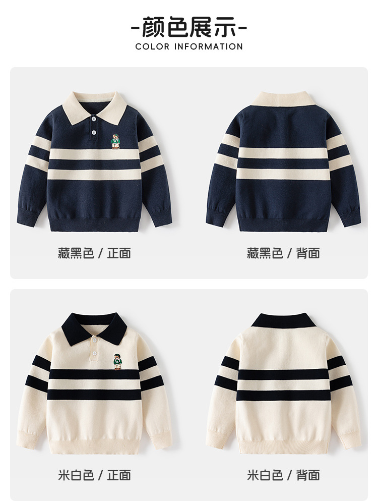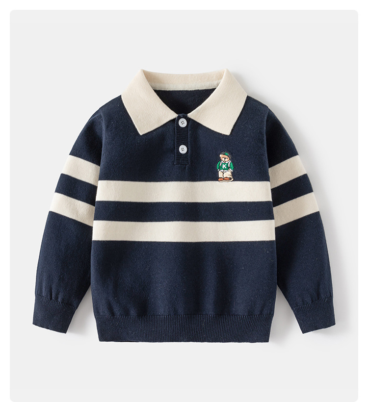 Детская одежда оптом свитер для мальчиков с лацканами 2024 Новый Детский свитер в Корейском стиле с мультяшной вышивкой, цельная доставка