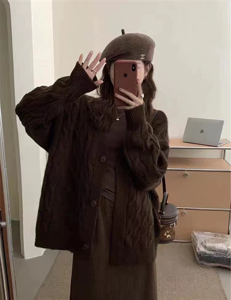 Осенне-Зимний новый уличный мягкий клейкий модный вязаный кардиган 2023 осенне-зимний Универсальный свитер в ленивом стиле Женское пальто