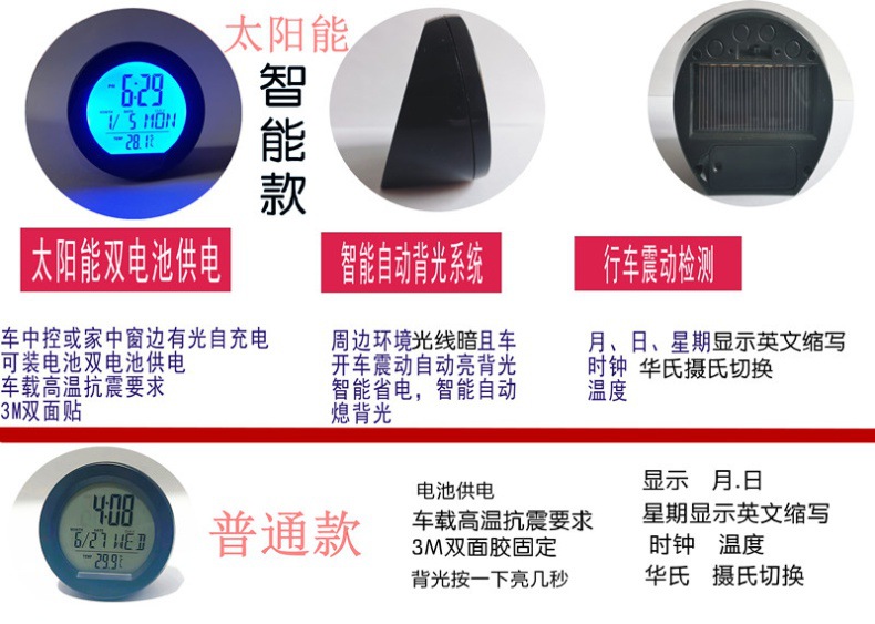 Солнечные светодиодные автомобильные часы на присоске, автомобильные высокоточные цифровые часы, автомобильные цифровые часы, температура автомобиля