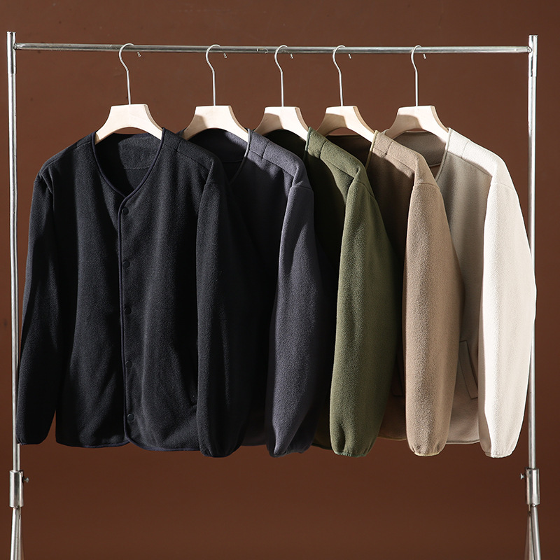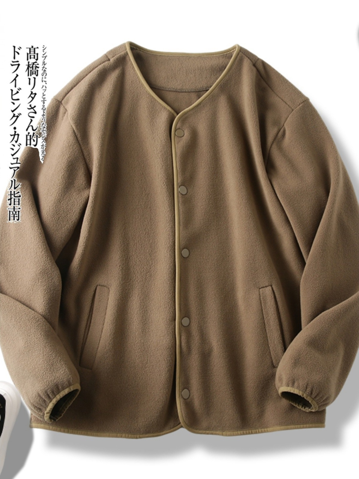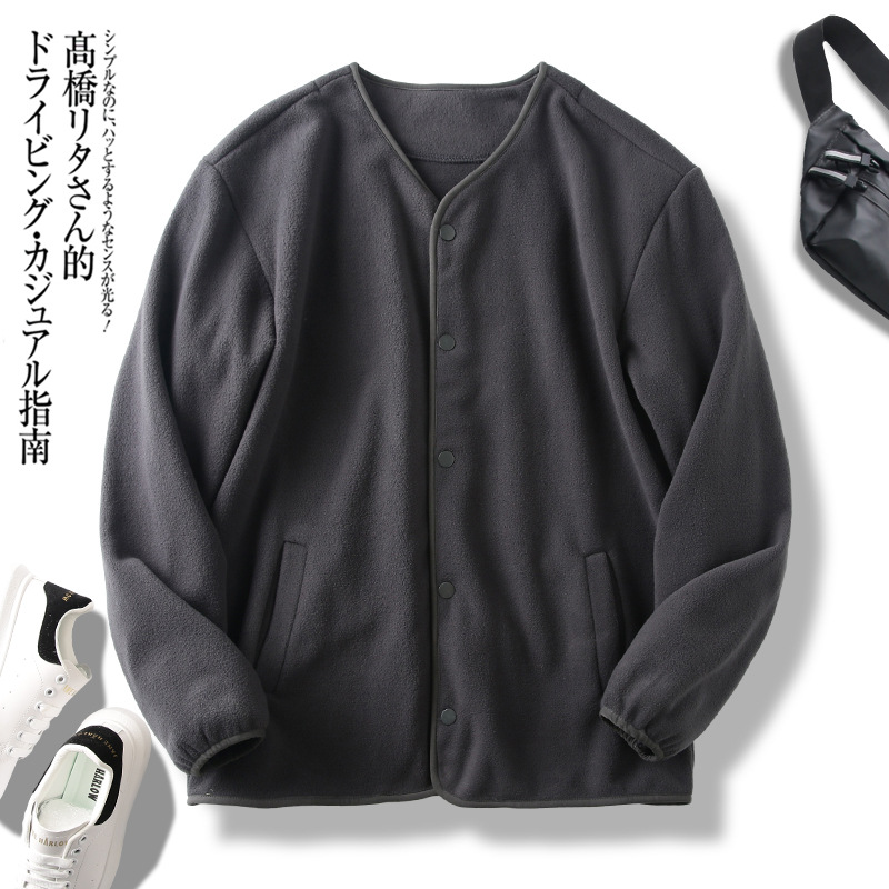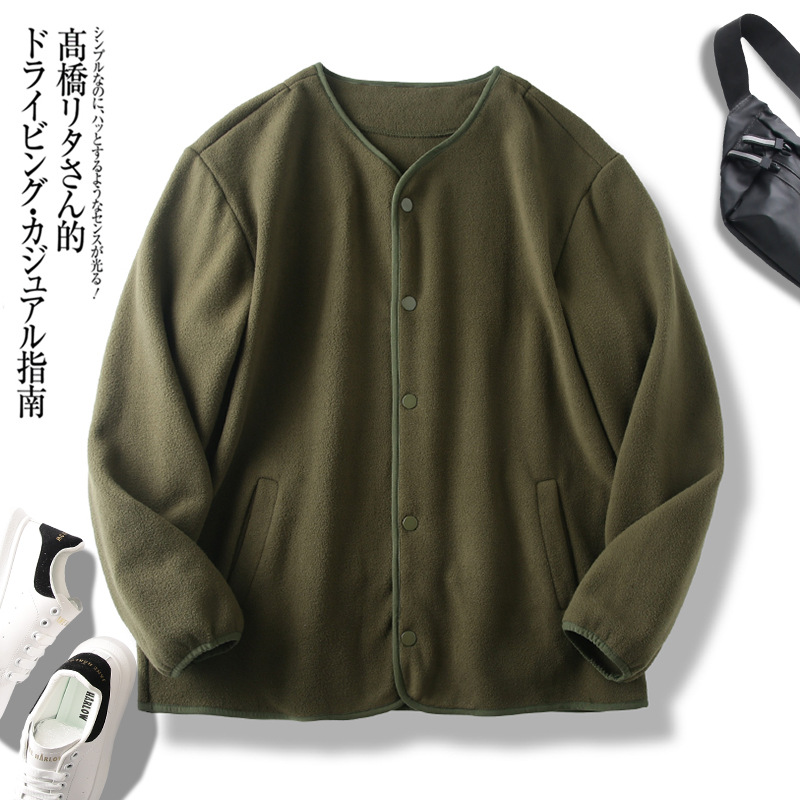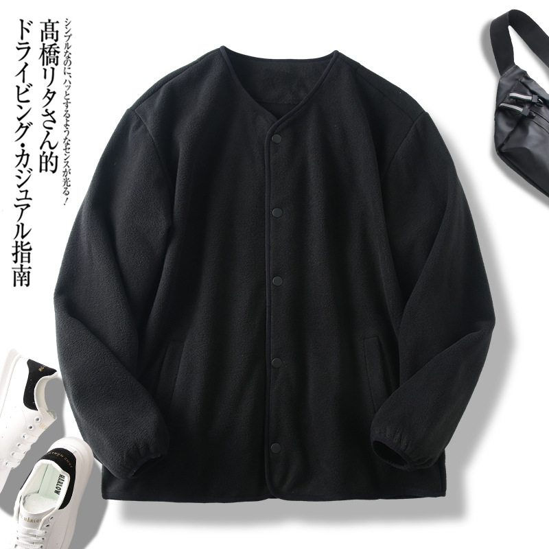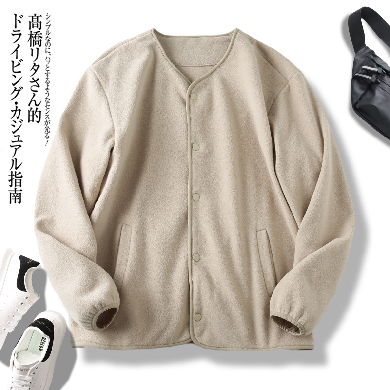 Двусторонний полярный флис Японская осенне-зимняя мужская и женская Пара Ретро без воротника флисовый ветрозащитный Теплый кардиган куртка