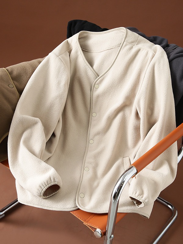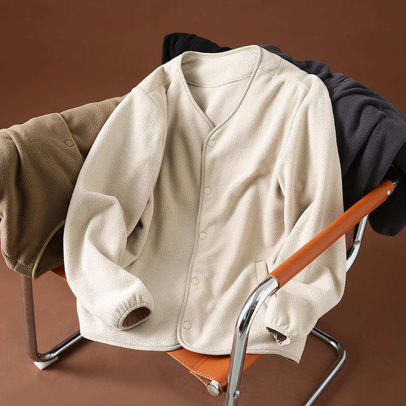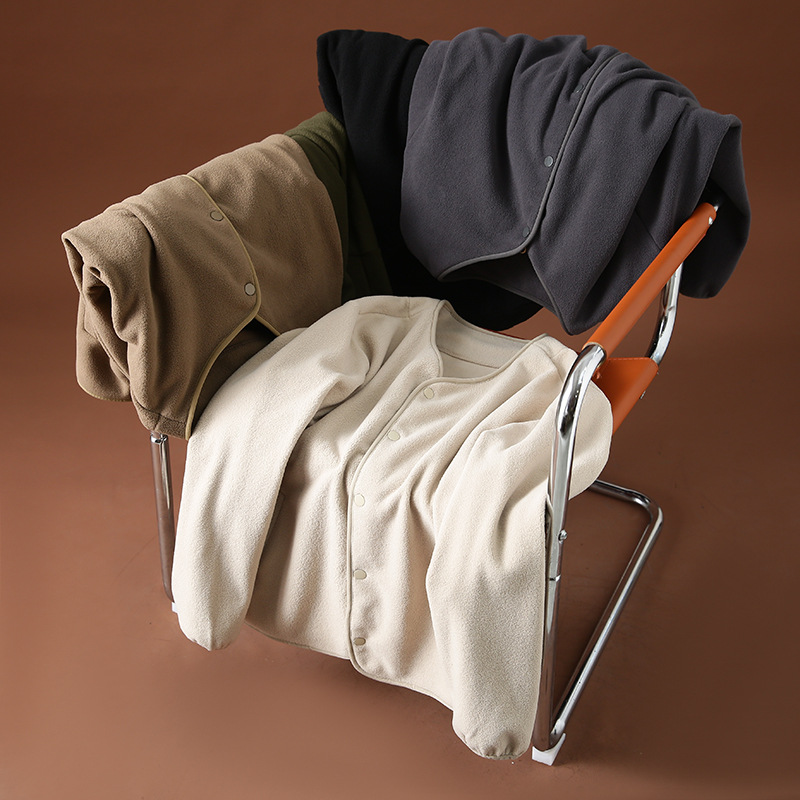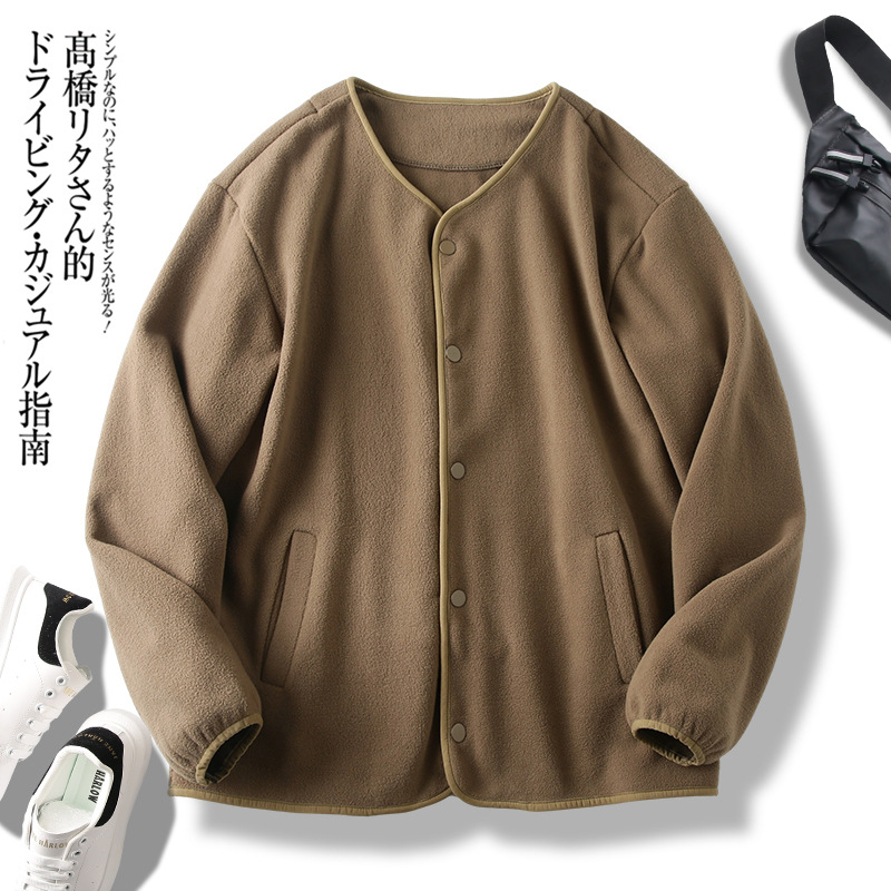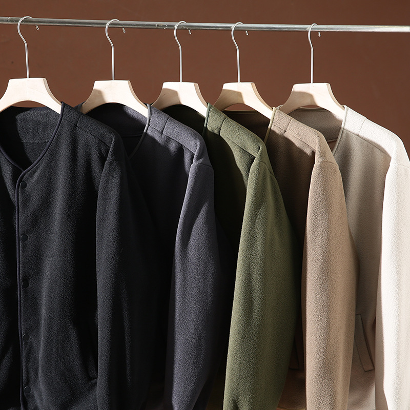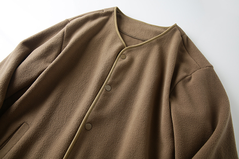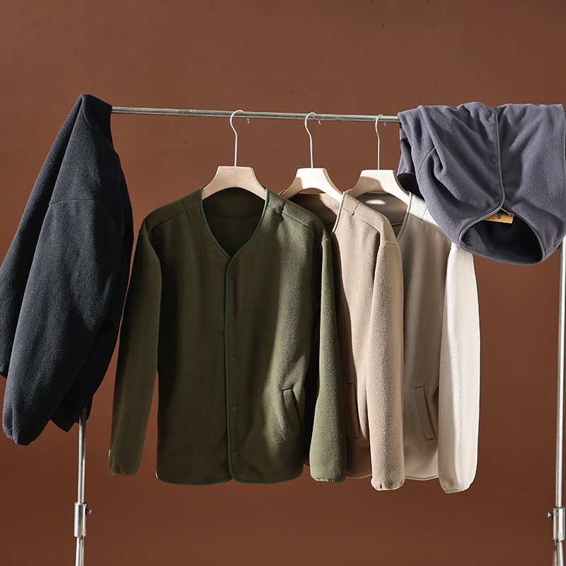 Двусторонний полярный флис Японская осенне-зимняя мужская и женская Пара Ретро без воротника флисовый ветрозащитный Теплый кардиган куртка
