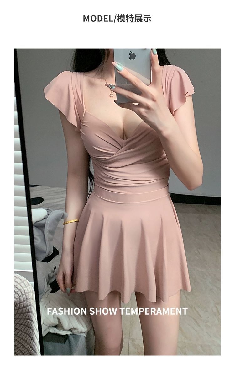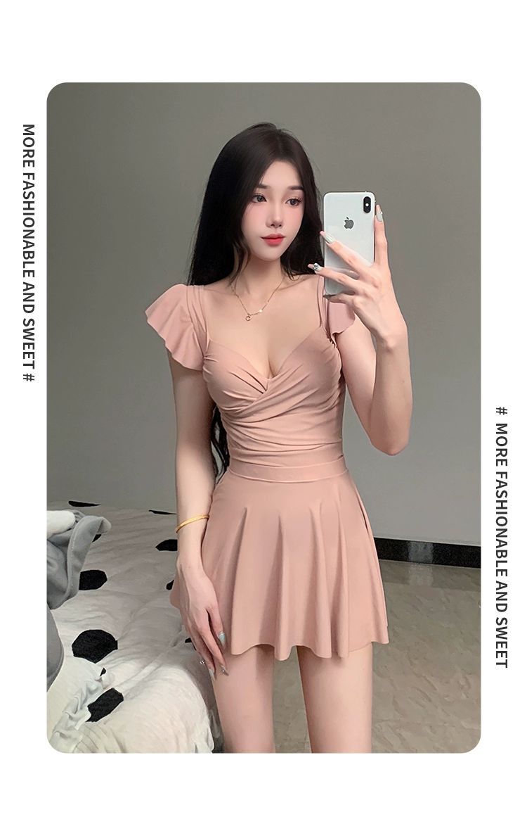 Женский купальник, летний, элитный, новинка 2025, цельная юбка, консервативный, закрывающий живот, для похудения, купальник на косточках, пуш-ап, горячий источник